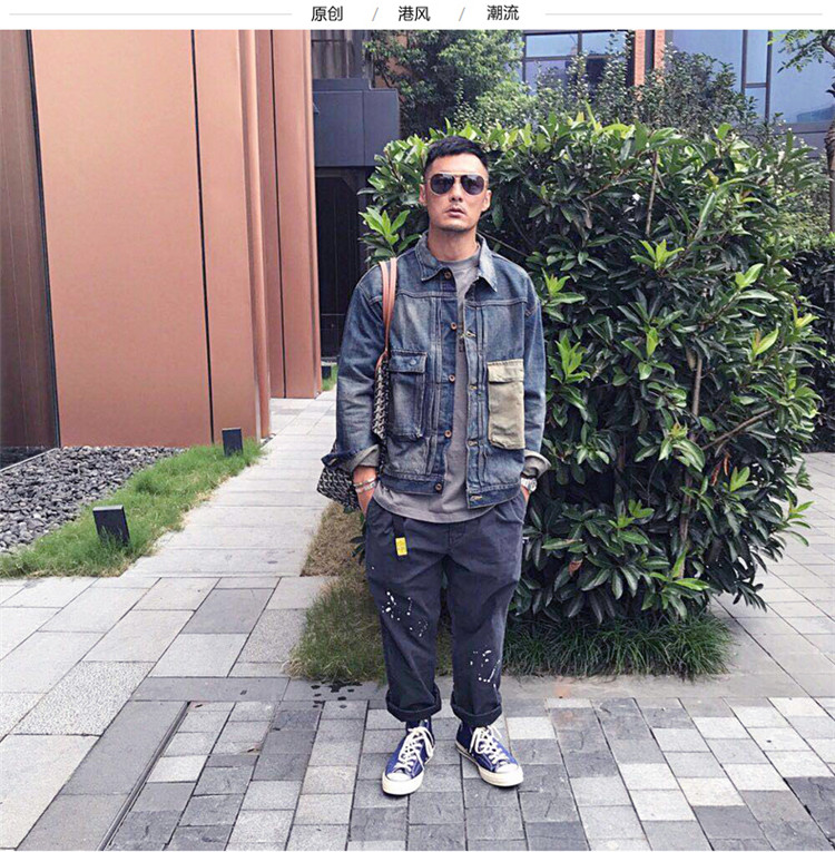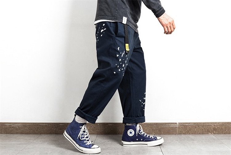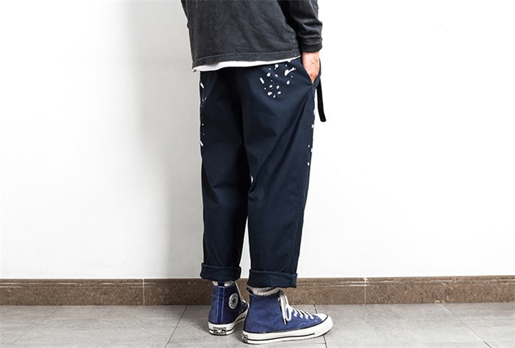 潮牌餘文樂同款日系型男潑墨點休閒褲青年男士寬鬆簡約學生工裝褲