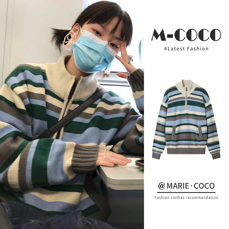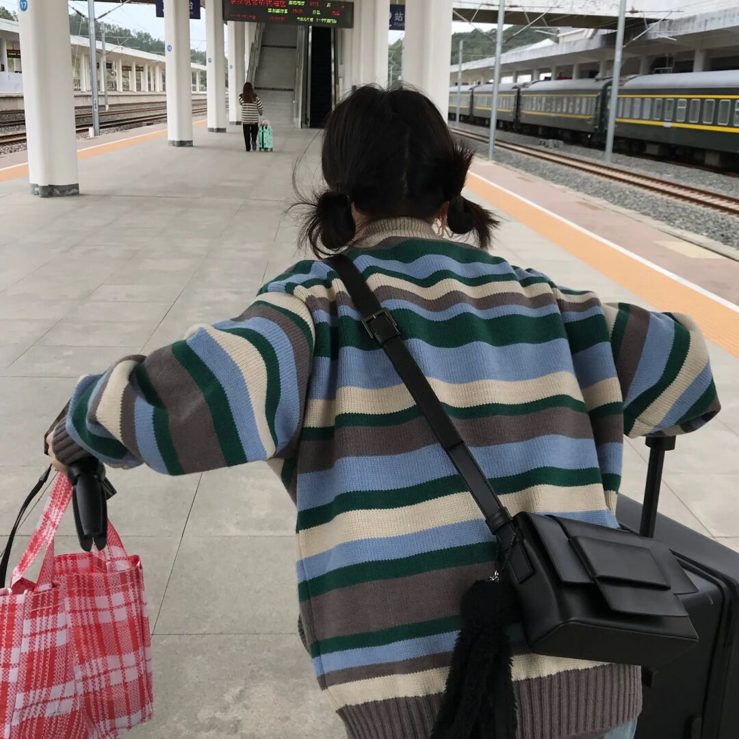 顏色分類 藍綠條紋毛衣【藝術感/韓系溫柔系/軟糯/高級感/韓式慵懶風/氛圍感/小個子/奶糯風/港味復古chic/法式氣質/鹽系/古著感/森系/別致漂亮】