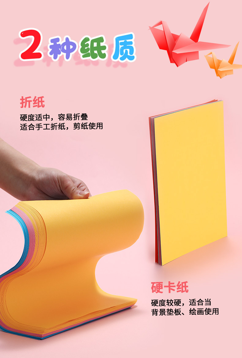 克重 A4 230克硬卡纸10色带黑白20张,A4软彩纸10色50张,正方形手工折纸14cm*14cm混10色50张
