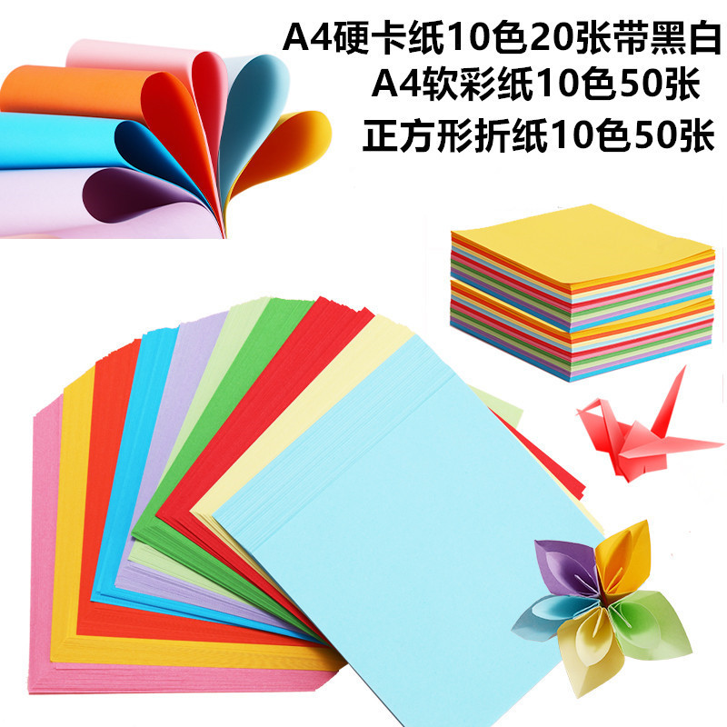 儿童手工彩纸套装A4硬卡纸10色20张A4软彩纸10色50张手工折纸50张