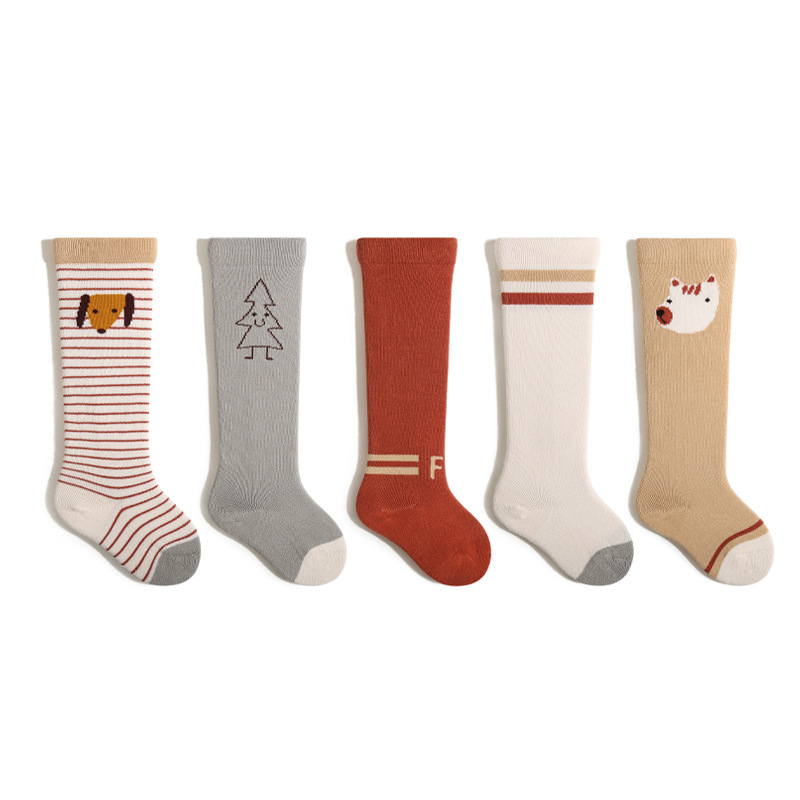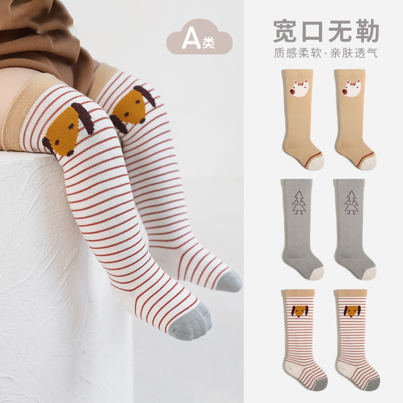 新生儿宝宝高筒棉袜松口无骨婴儿袜子可爱卡通条纹男女童长筒袜子