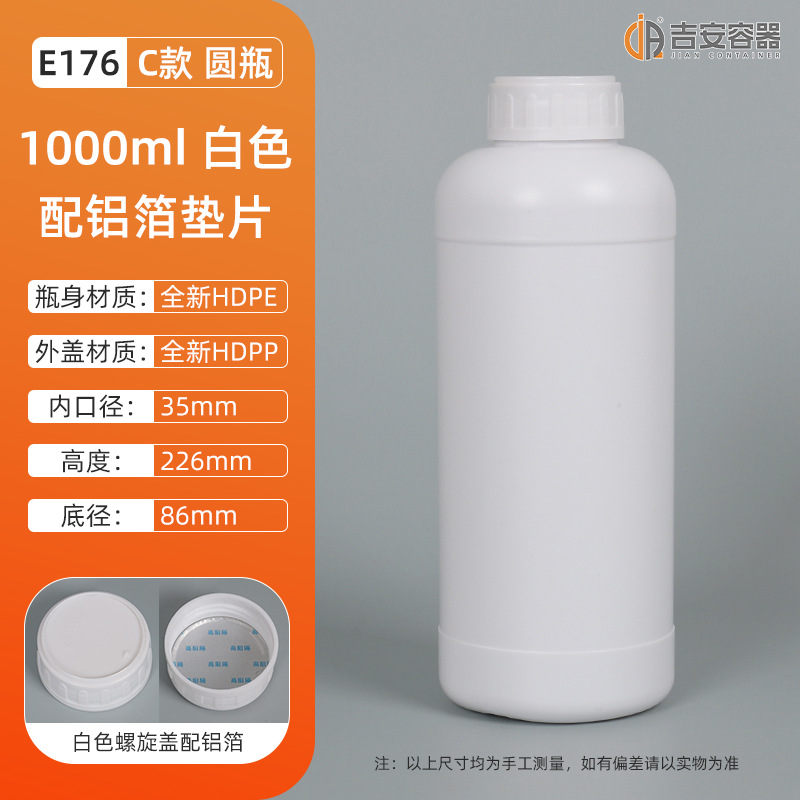 100/150/250/500ml塑料圆瓶1升香精瓶 1L化工瓶 液体包装瓶试剂瓶
