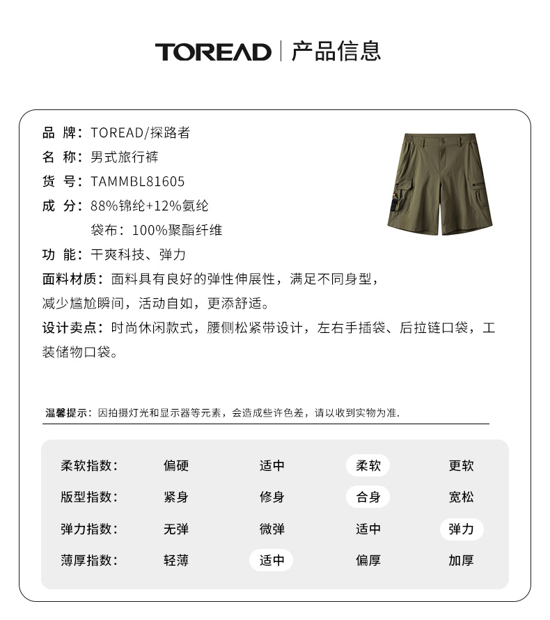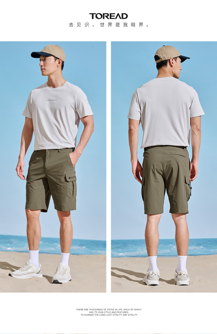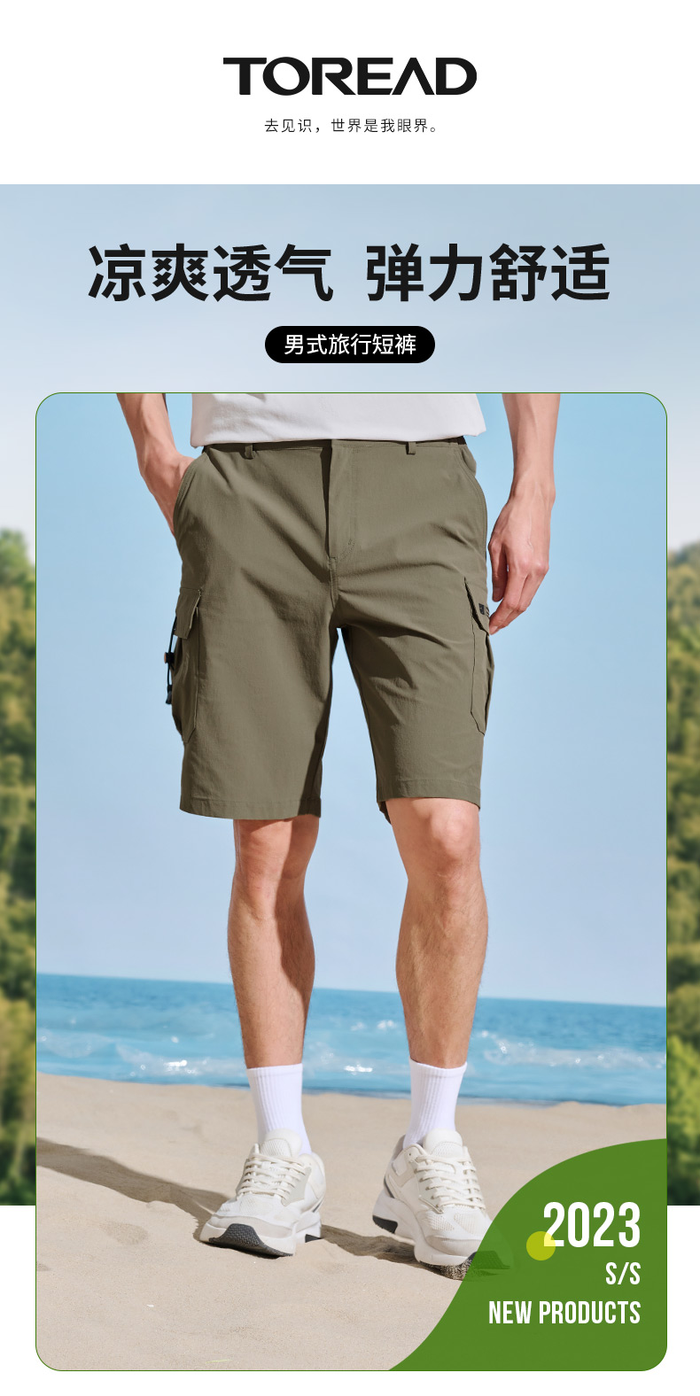探路者短褲男23春夏新品戶外彈力透氣親膚舒適速乾褲TAMMBL81605