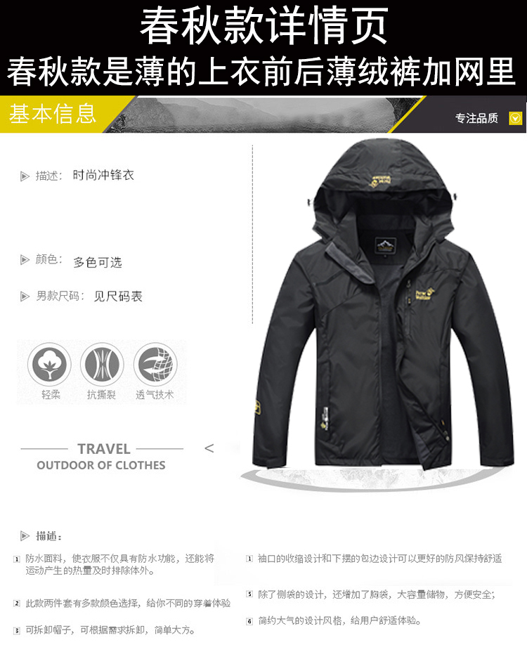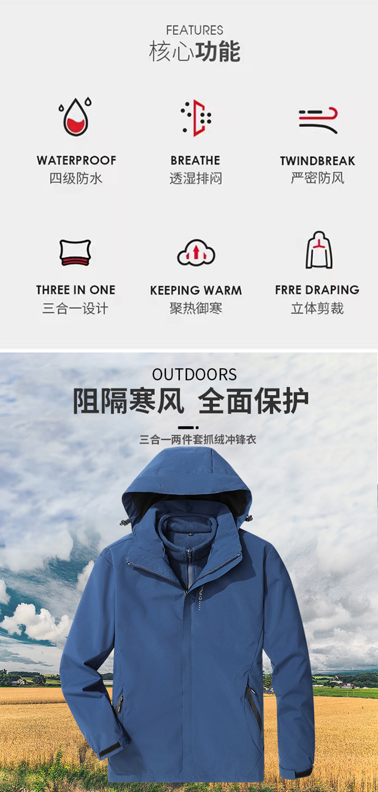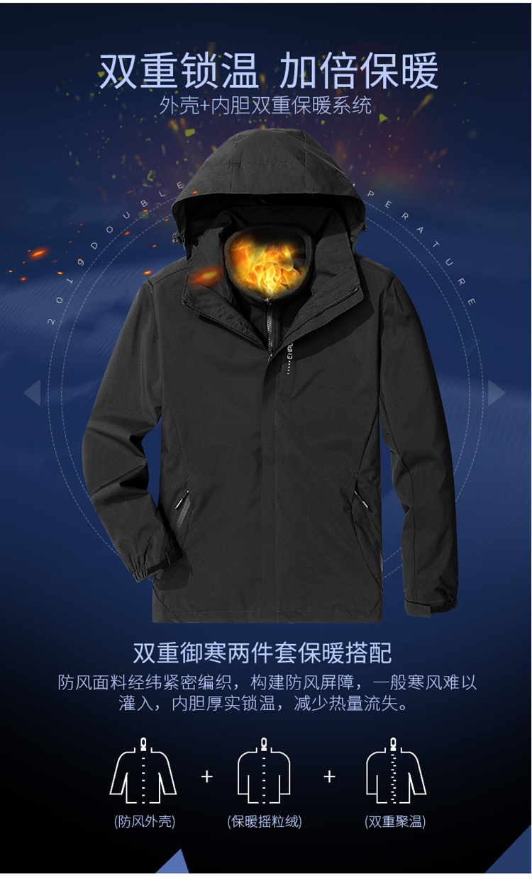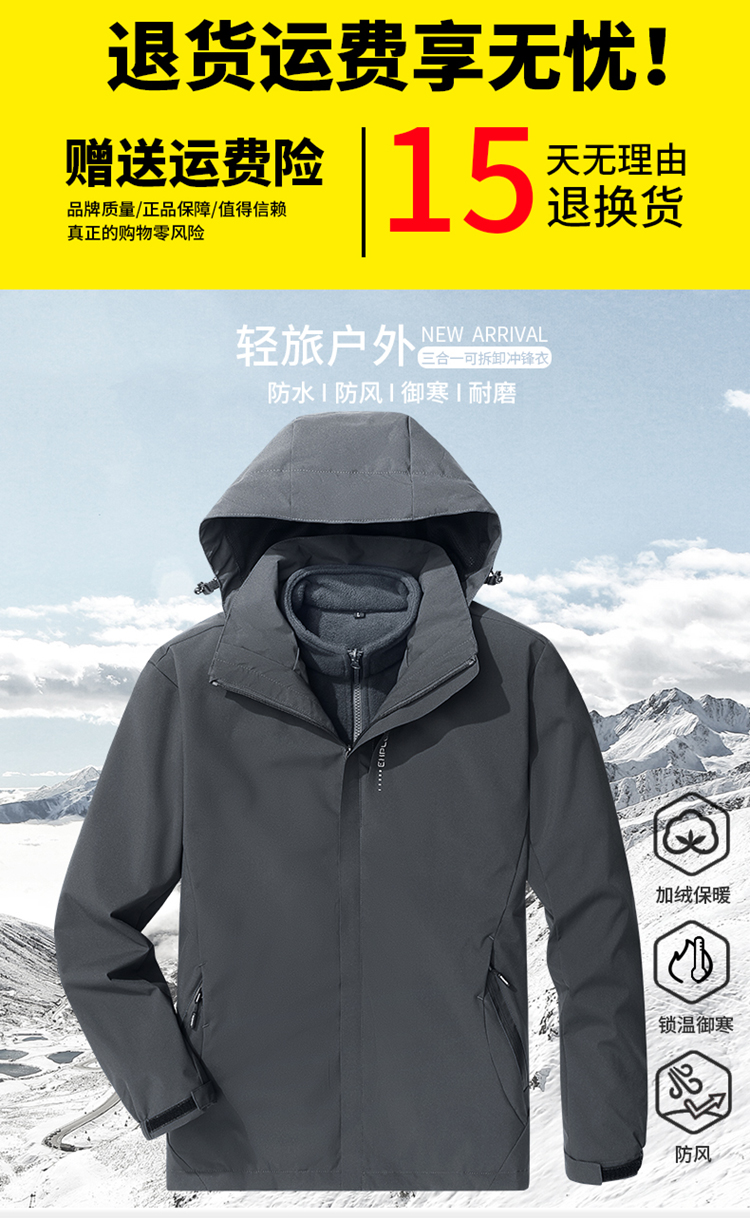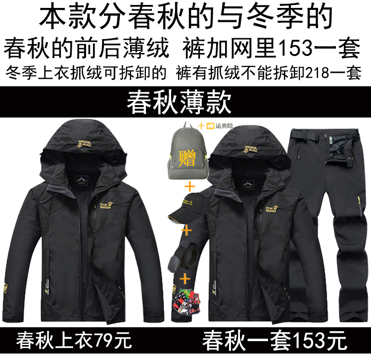 戶外衝鋒衣男三合一可拆卸秋冬季防風防水運動登山服衣褲套裝潮牌