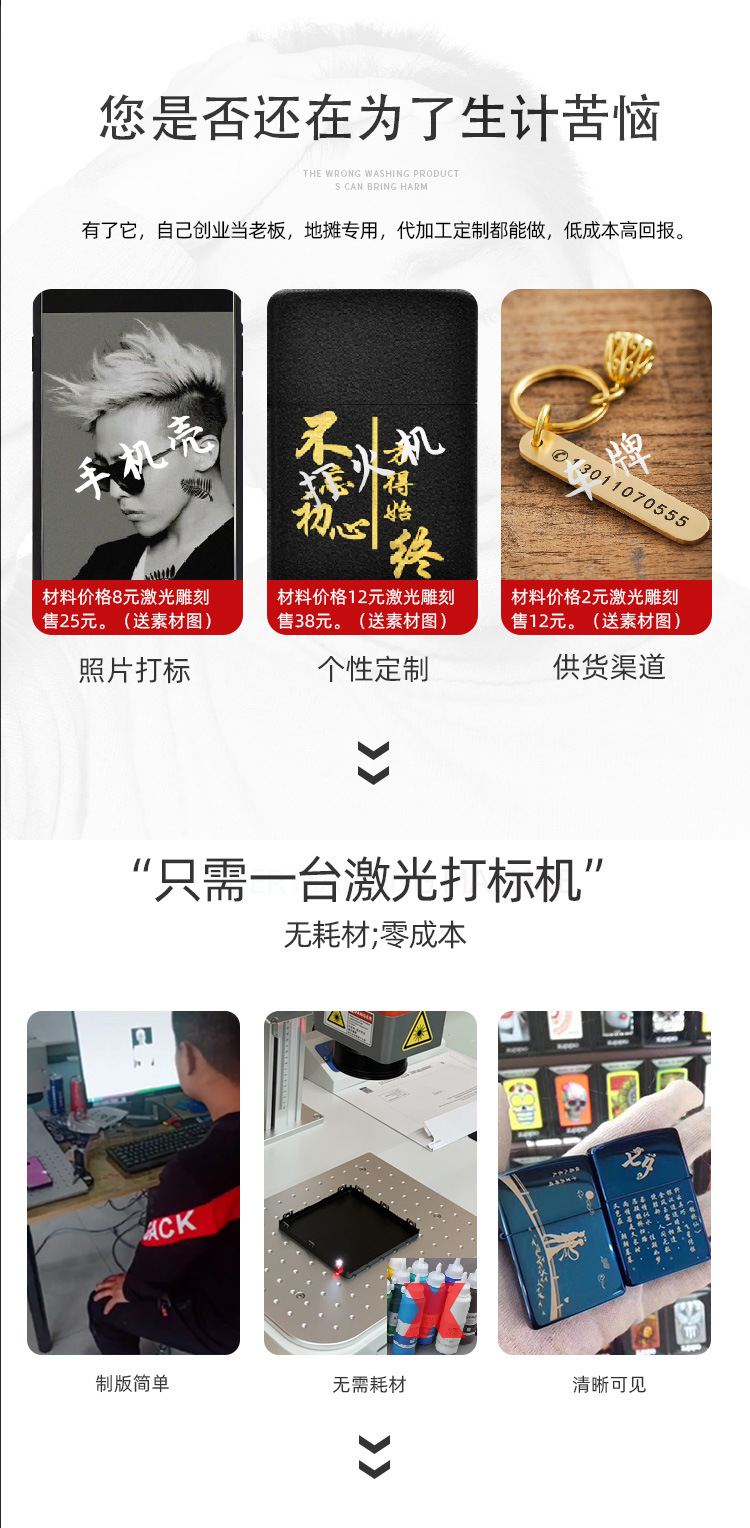 分体式打标机金属铭牌雕刻摆摊创业工艺饰品激光刻字机小型便携式