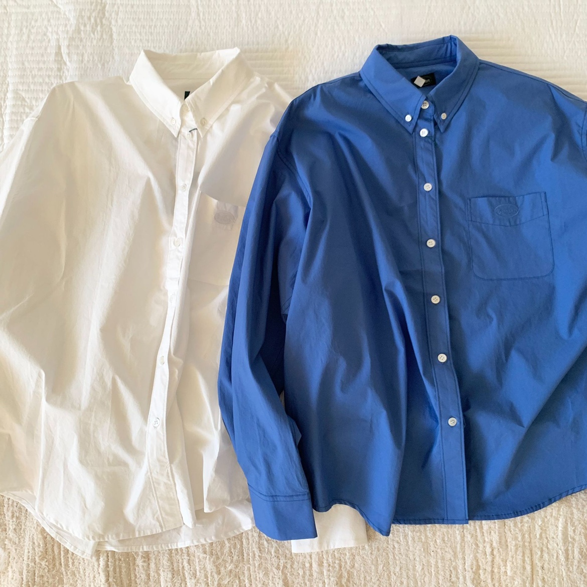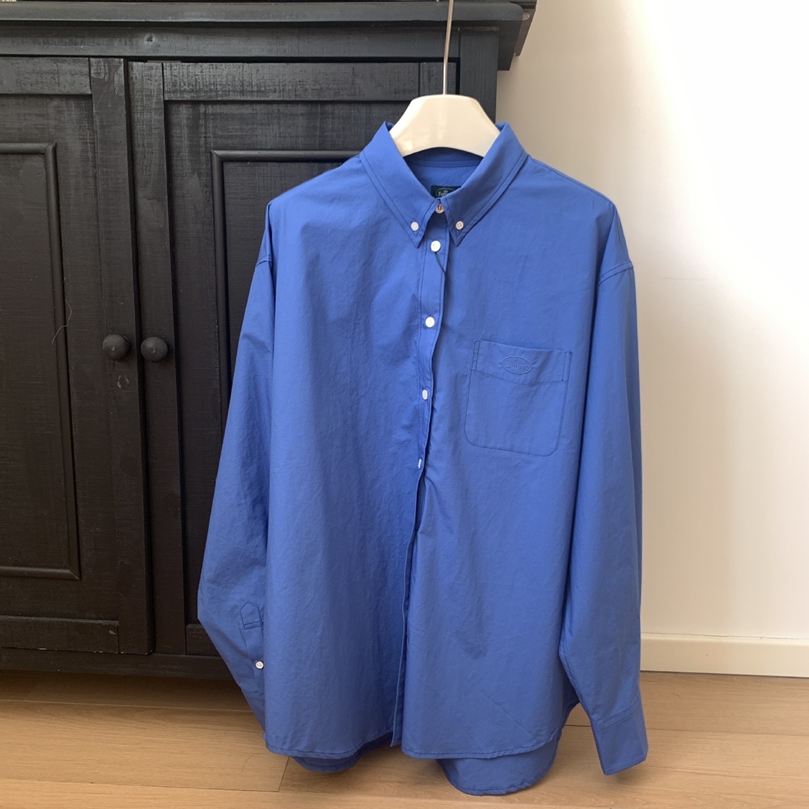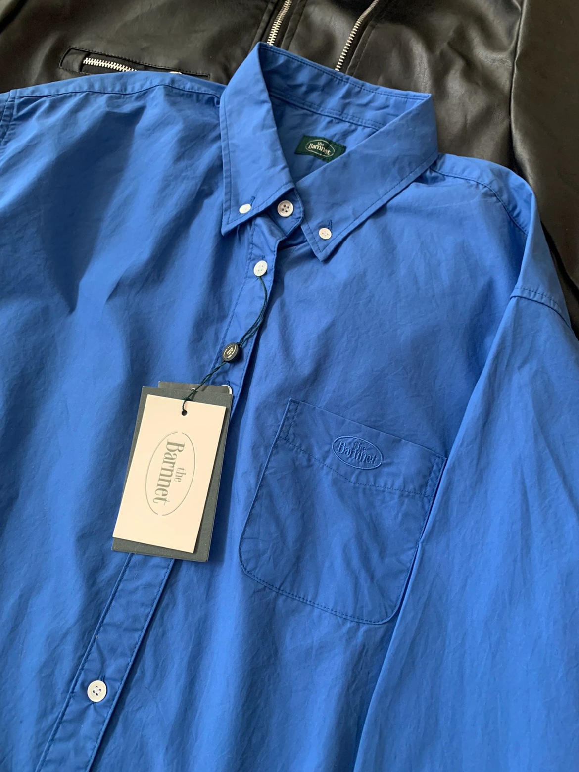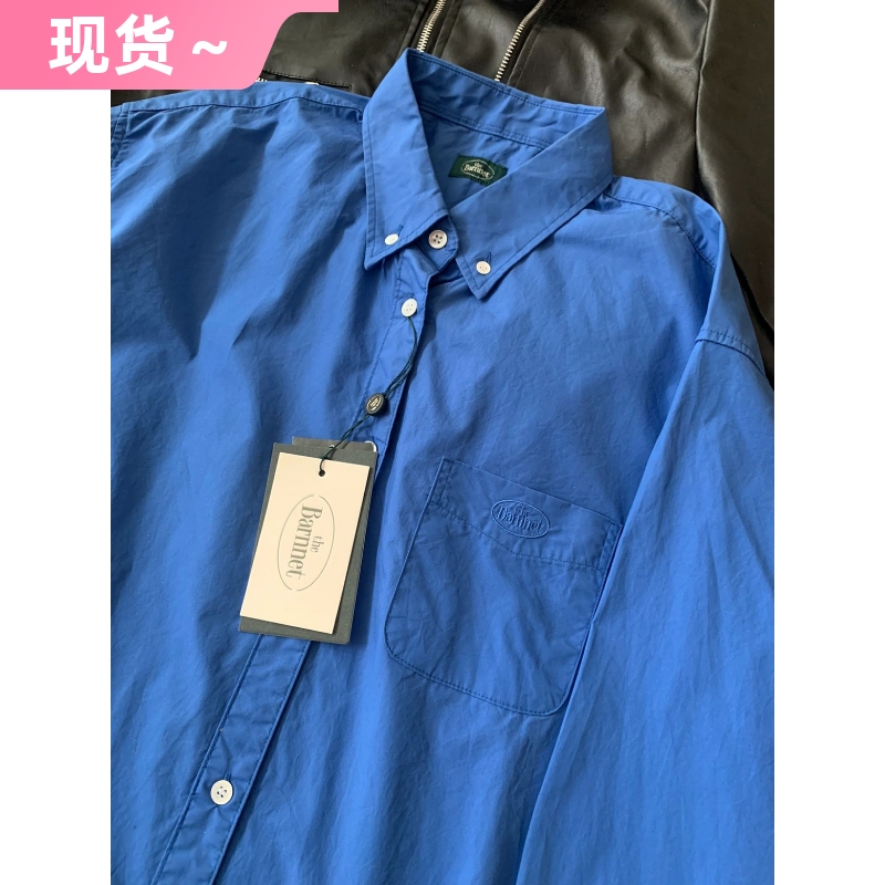 深藍色!秋季韓國thebarnnet寬鬆休閒克萊因藍翻領純色八奶襯衫