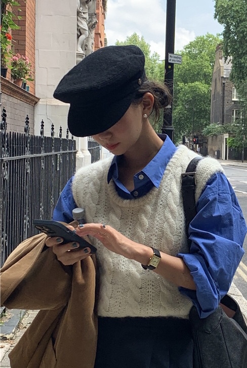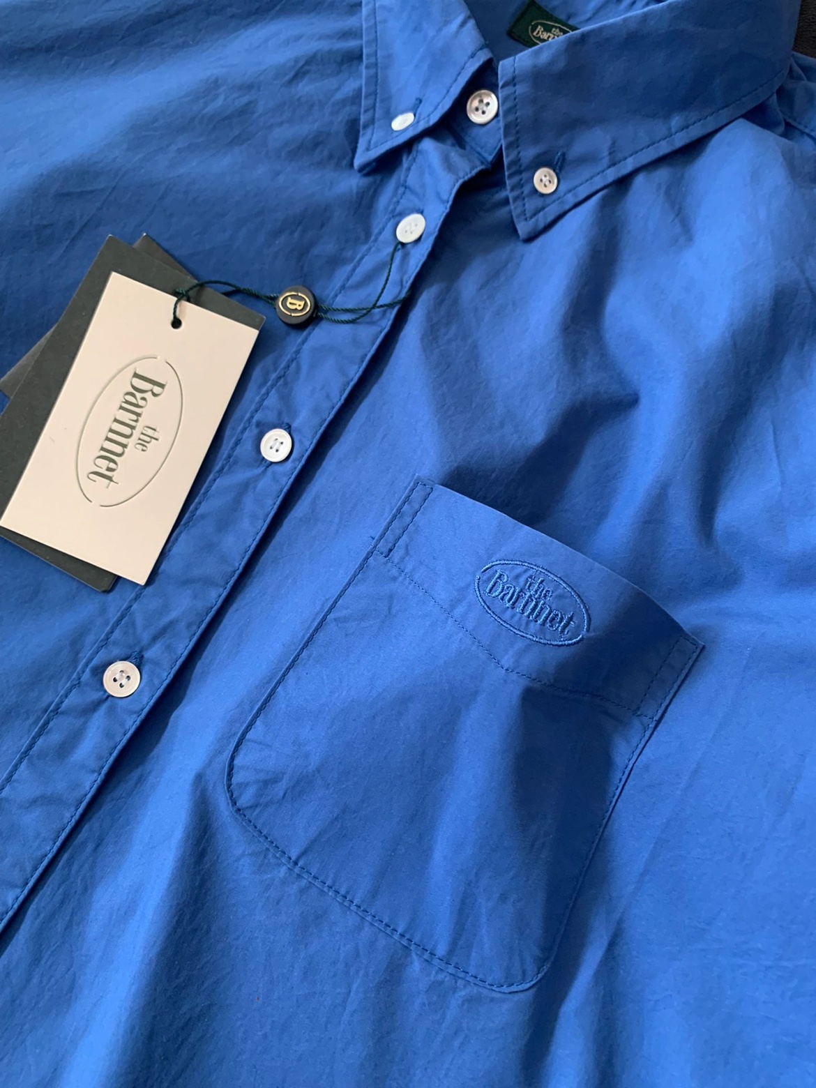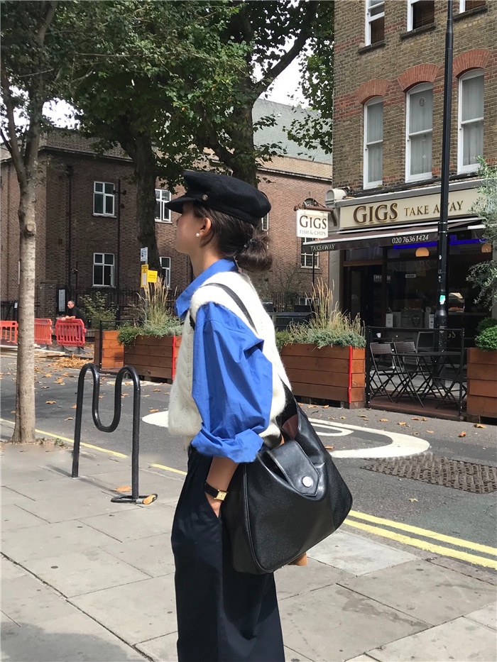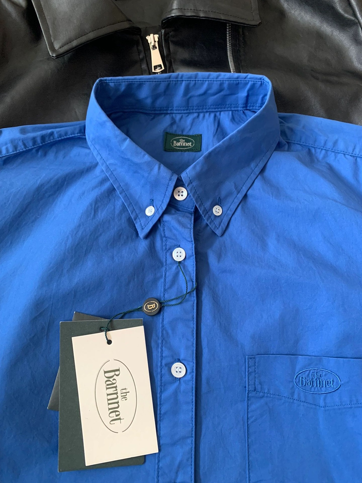 深藍色!秋季韓國thebarnnet寬鬆休閒克萊因藍翻領純色八奶襯衫