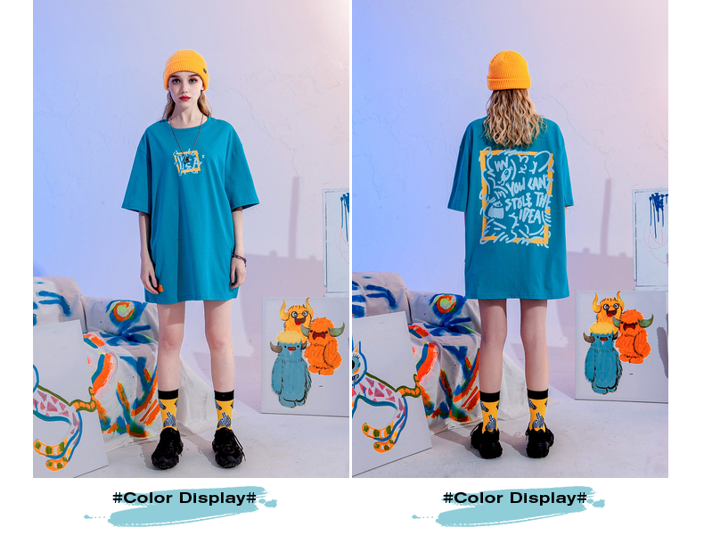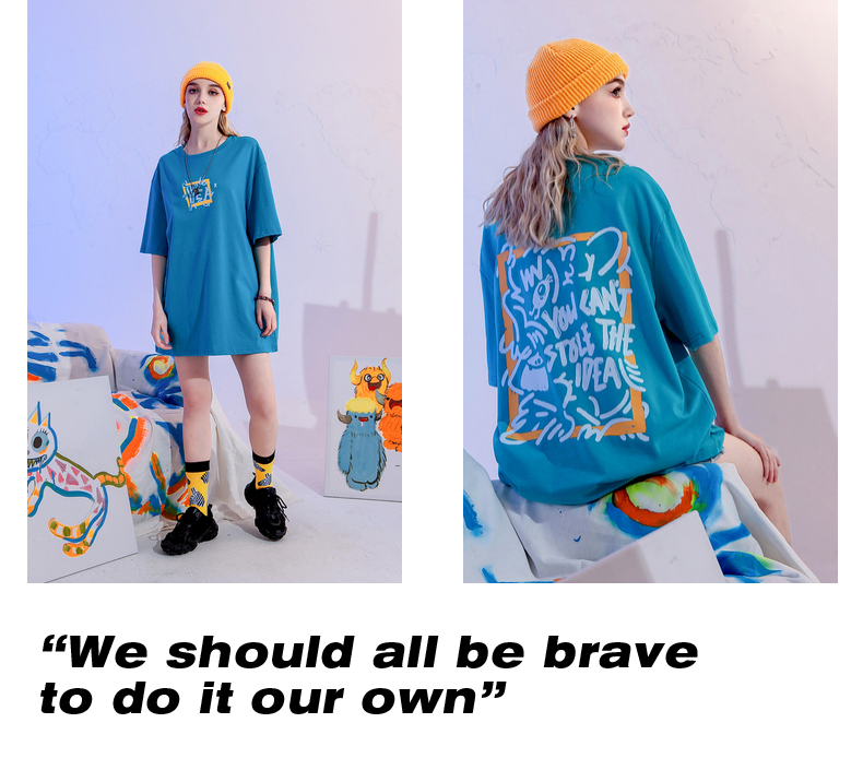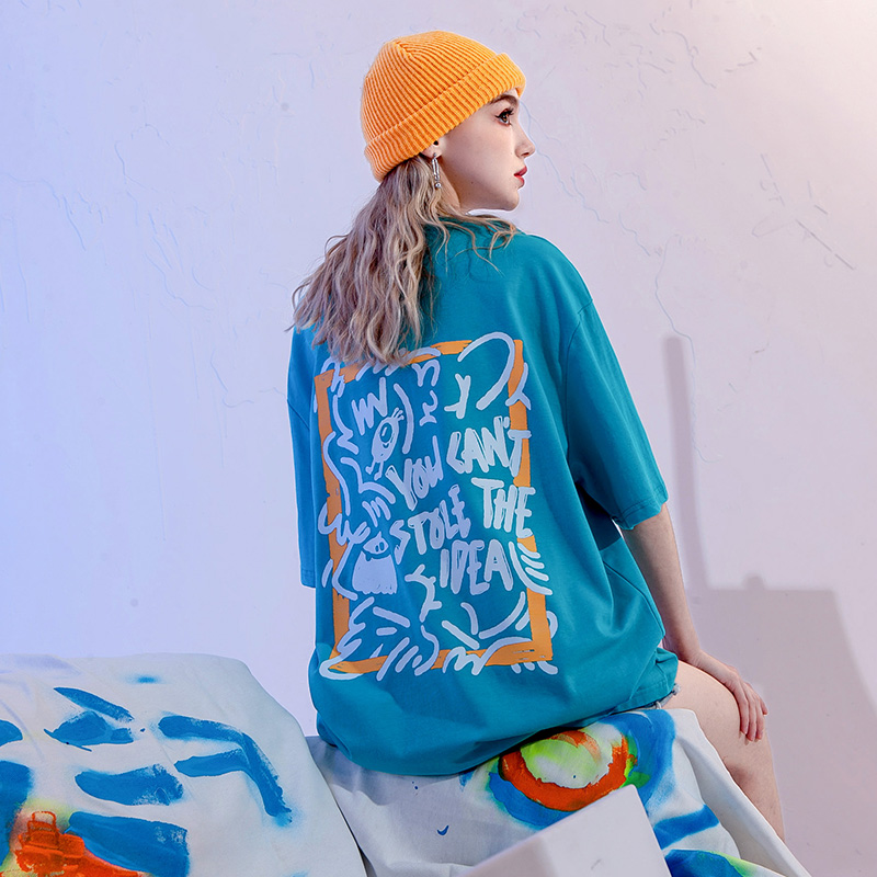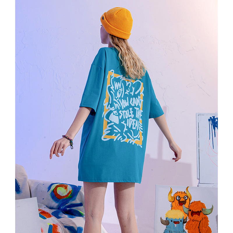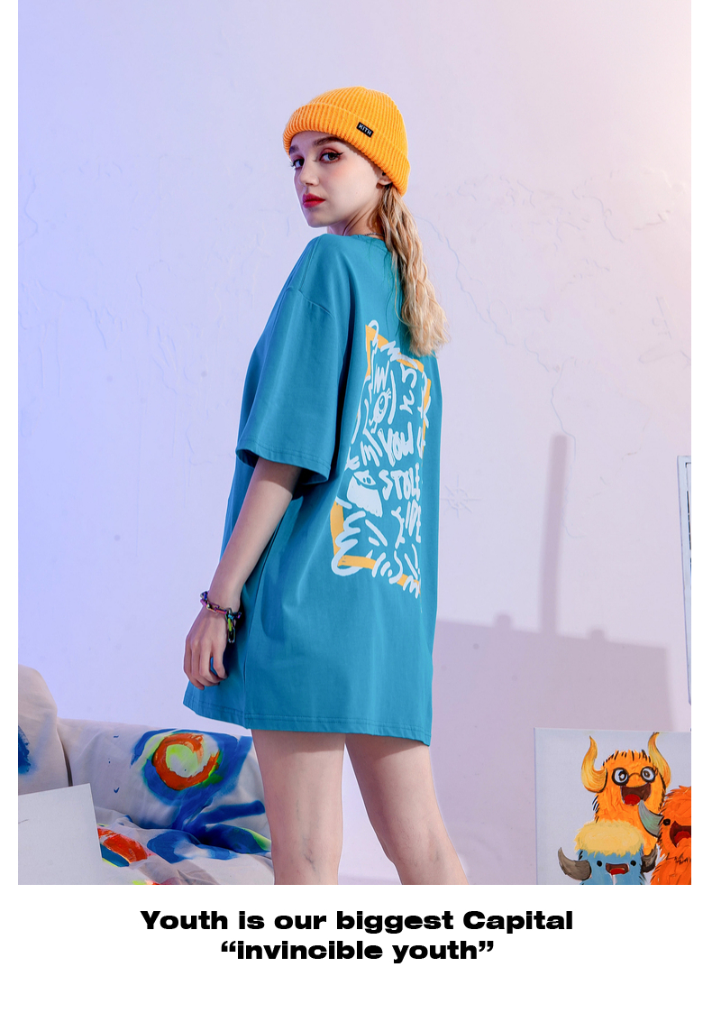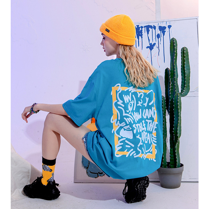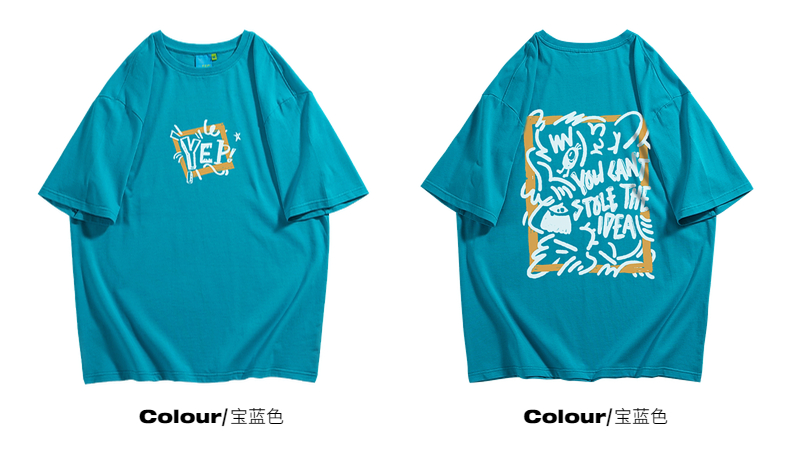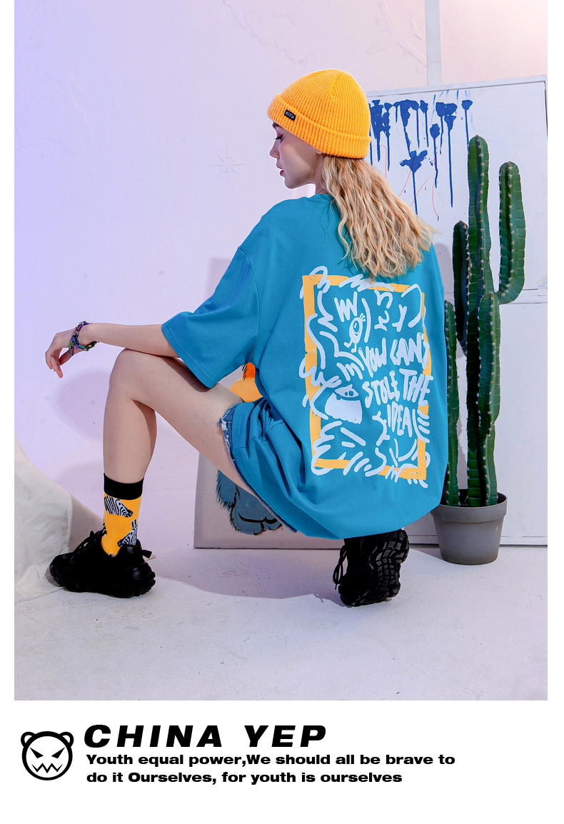 YEP潮牌湖藍色T恤女亮色短袖大版夏季寬鬆純棉內搭打底衫上衣T恤