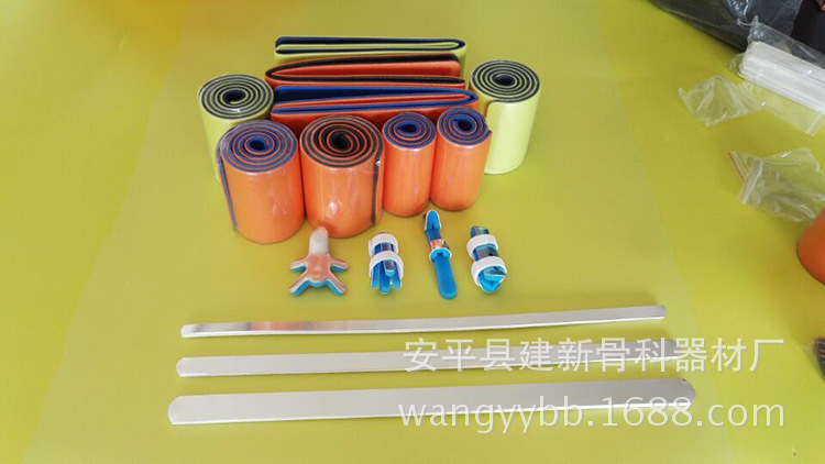 主要生产夹板、牵引带、支具、拐杖等。生产的可塑形夹板常年出口,既可塑形,又透气,不熏肉。主要由三大系列产品: 1、夹板系列:A、高级可塑形夹板(上肢、下肢各部位28类,86个型号),B、木制骨夹板:传统工艺,价格低廉,规格齐全。适应于贫困地区。 2、拐杖系列:按照材料分木制、铝合金、不锈钢三种。 3、牵引带系列:肋骨牵引固定带、下肢牵引固定带、腰椎牵引固定带、踝骨牵引固定带、锁骨牵引固定带、全弹力腹带、全弹力腰围、气体颈椎牵引器。尤其是开发生产的高级可塑形医用骨夹板系列产品适用于人体各部位骨损伤(骨折及脱位)的外固定。具有表面光滑柔软、轻便、透X光、可塑性强等特性。既能用手而无需附加措施来与待固定的肢体相适配,又有足够的钢性以保证肢体所需的固定作用。可根据人体的生理结构特点任意折曲塑形,尤其是对掌指骨折、各关节部位等不稳定骨折有良好的塑形固定作用,使用方便,效果良好。可直接与人体表皮接触,无刺激,无致敏性,经临床试用。具有传统的石膏、木制和热变形塑料等原骨科固定材料不具备的优势。尤其是可卷夹板(塑胶绷带)是骨伤急救的最佳材料使用方便,效果良好。该产品系专利产品。按用途分为掌背骨、指骨、前臂、股骨干、胫腓骨等多种系列。每种夹板均有成人、儿童大、中、小三种型号,可根据需要选择使用。目前主要用于出口。尤其是一些战争国家,医疗器械储备,用量最大。塑胶绷带。按照厚度(强度)有A、B、C、D四种,颜色可选。