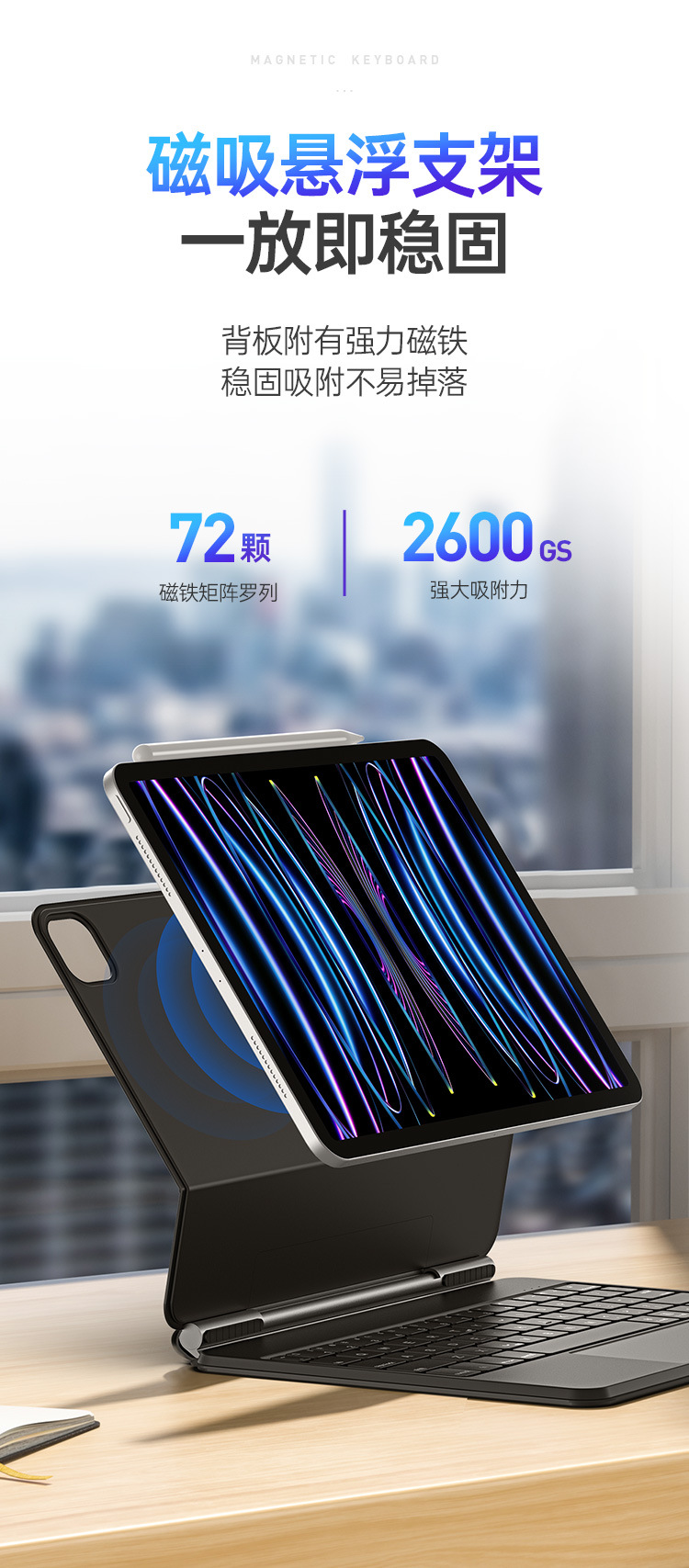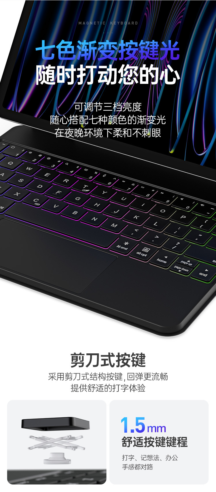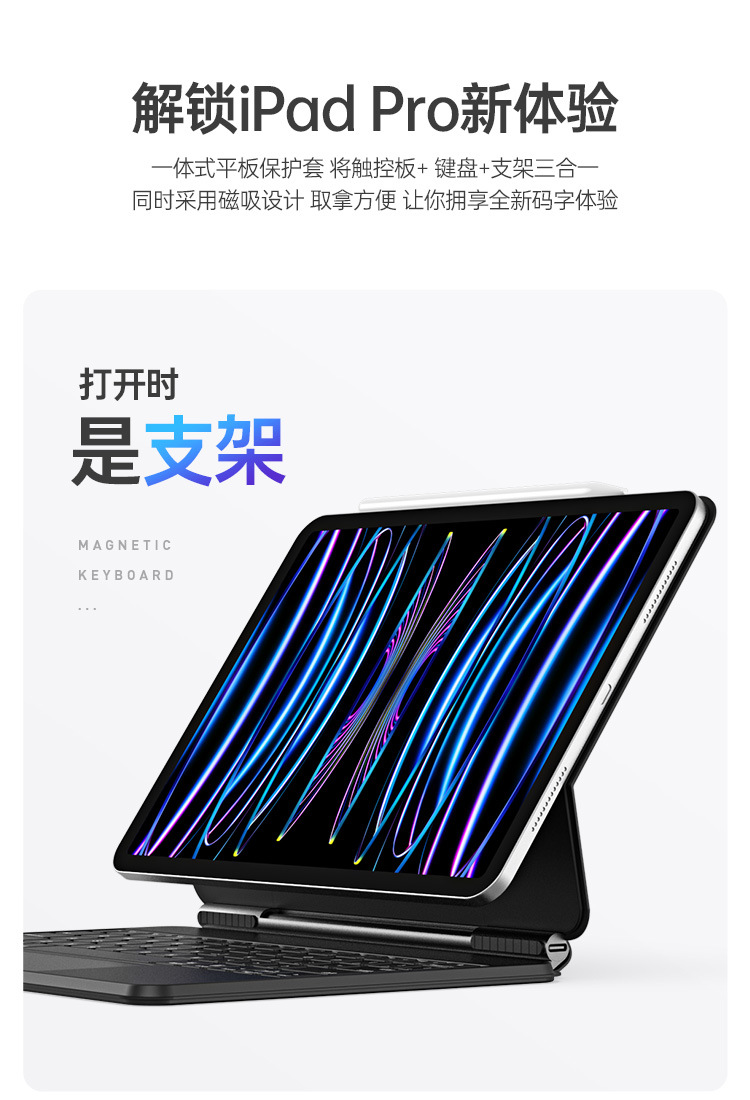 适用iPadPro11磁吸悬浮触控键盘 一体式Air4/5蓝牙妙控S9Plus批发