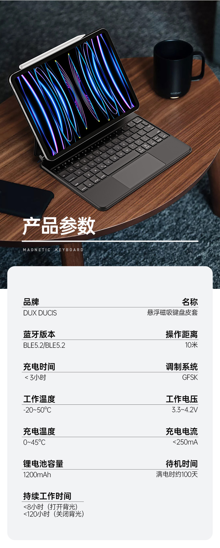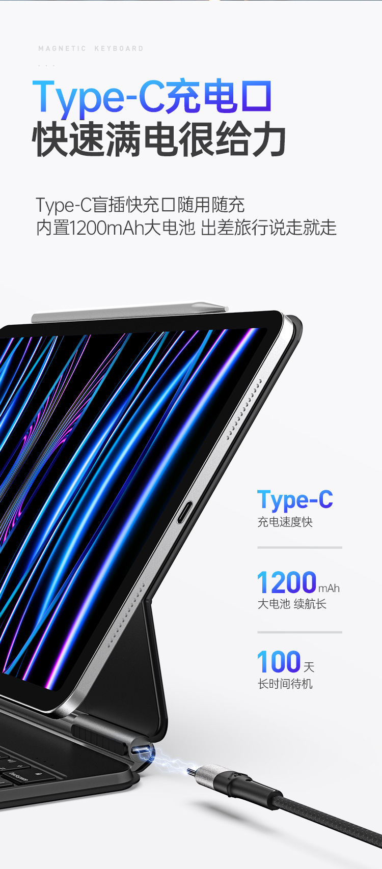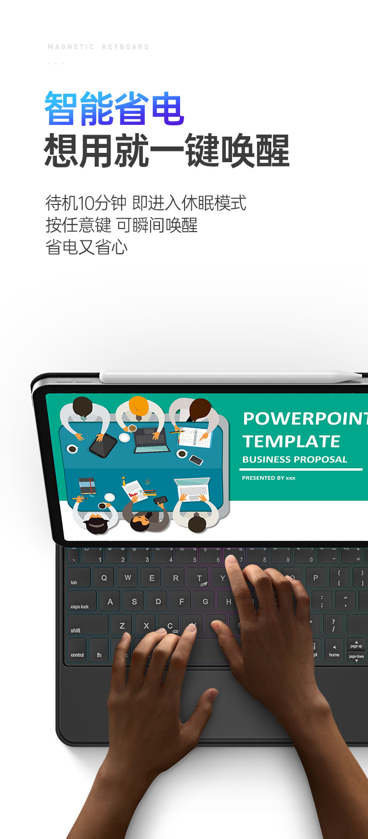 适用iPadPro11磁吸悬浮触控键盘 一体式Air4/5蓝牙妙控S9Plus批发