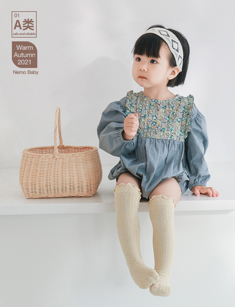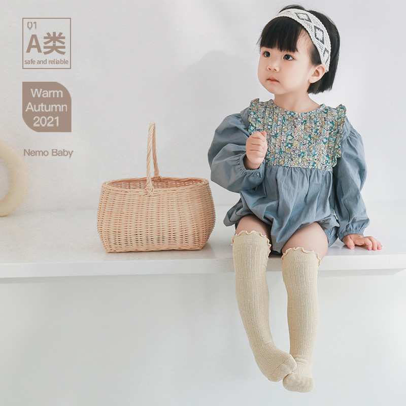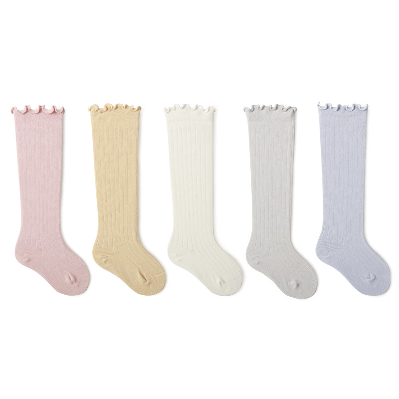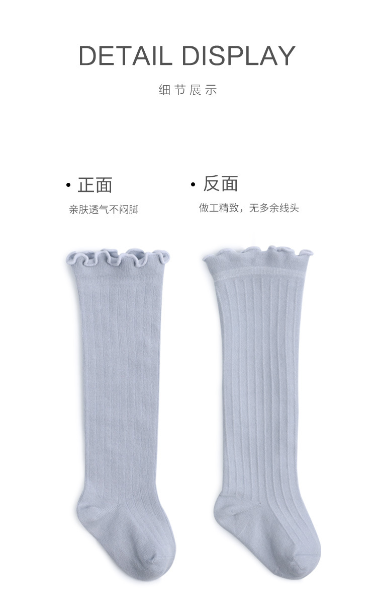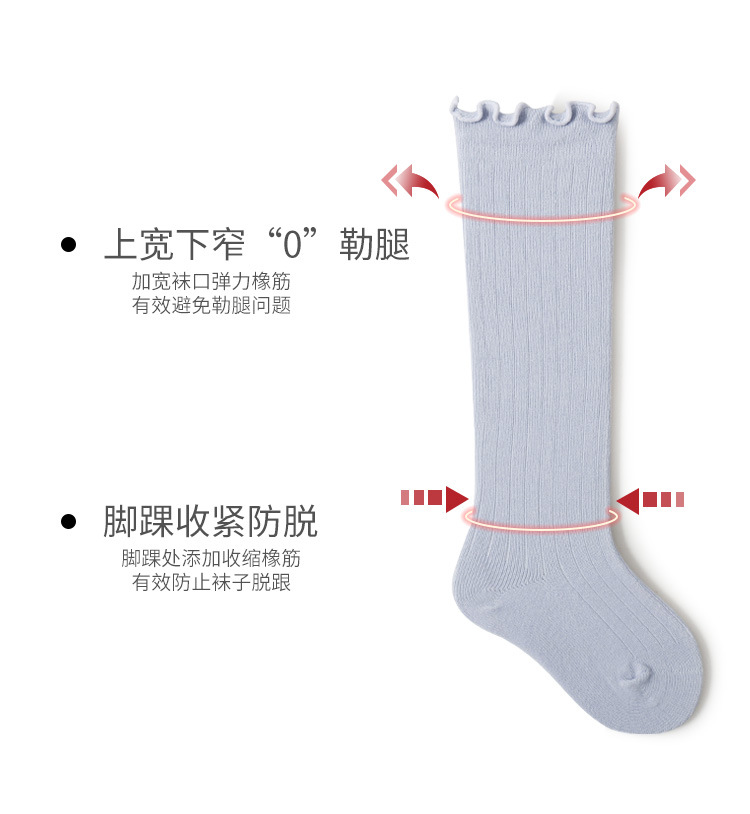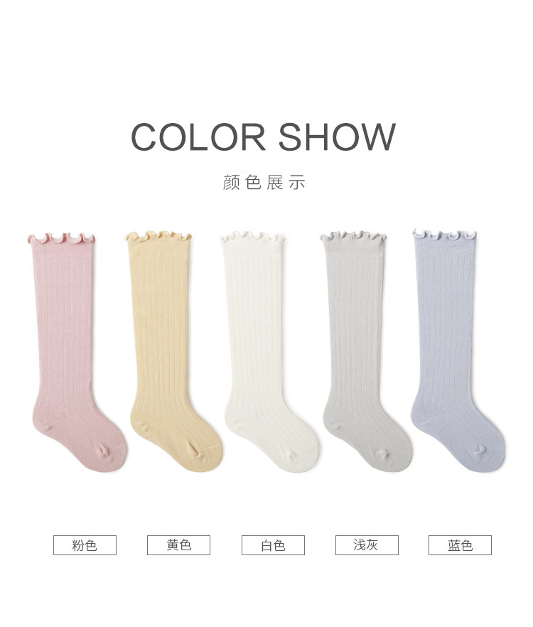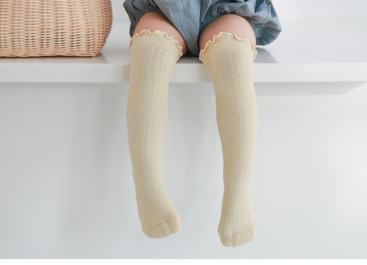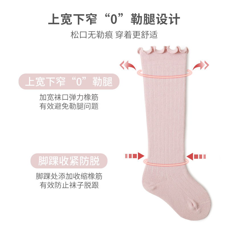 新款婴儿袜子儿童男女童精梳棉秋冬过膝中长筒木耳松口不勒腿袜子