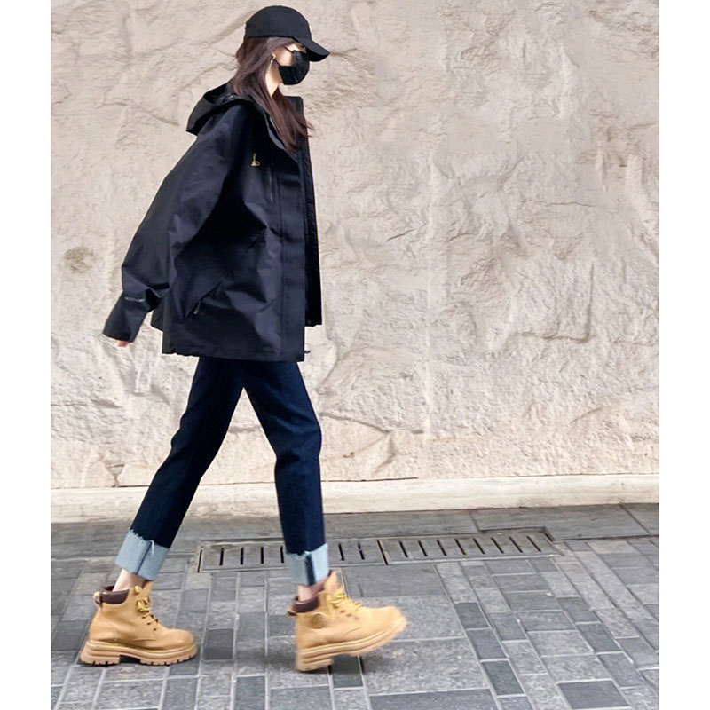 秋季2023新款女裝歐貨爆款上衣高級感洋派黑色衝鋒衣工裝休閒外套