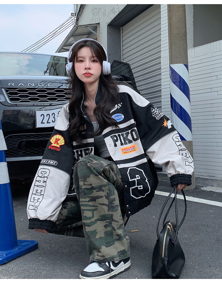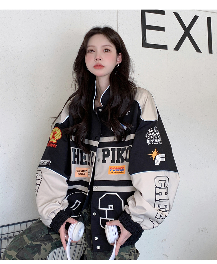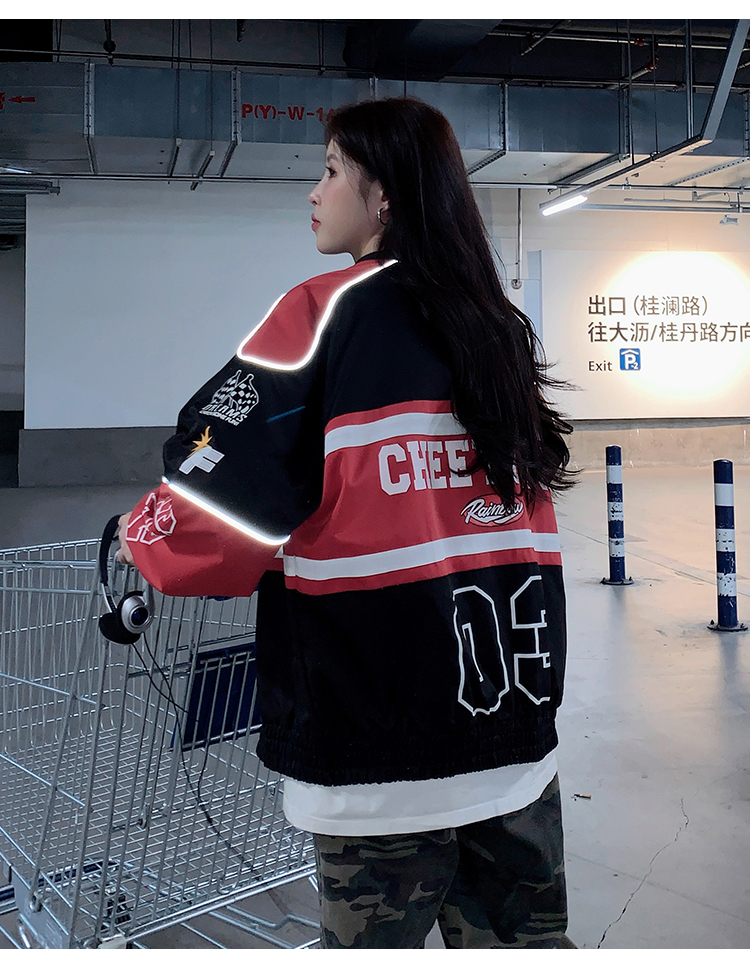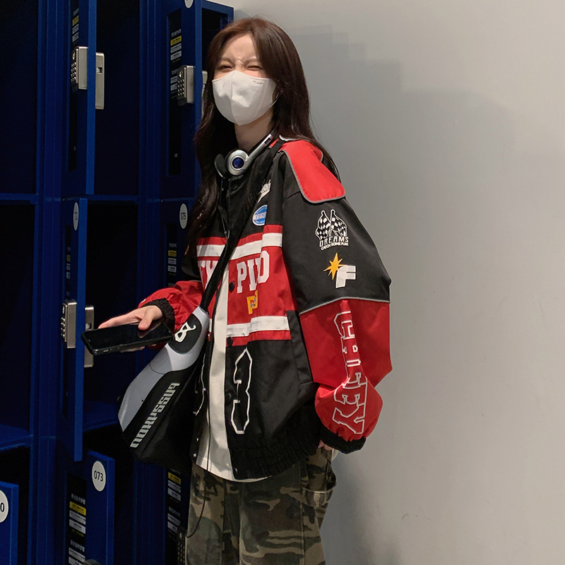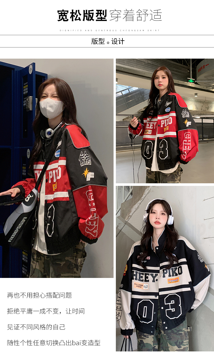 美式復古機車潮牌棒球服外套女男秋季港風街頭寬鬆賽車服夾克情侶