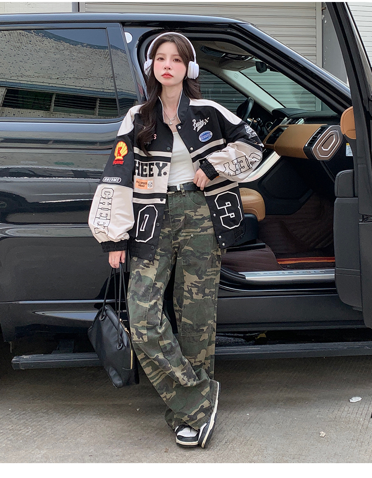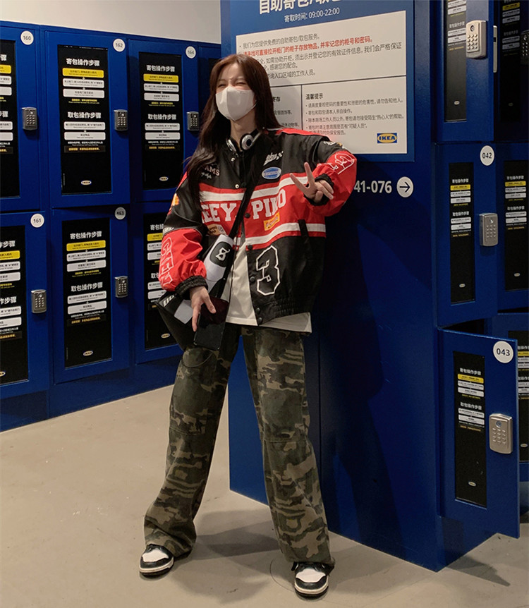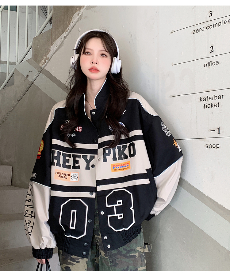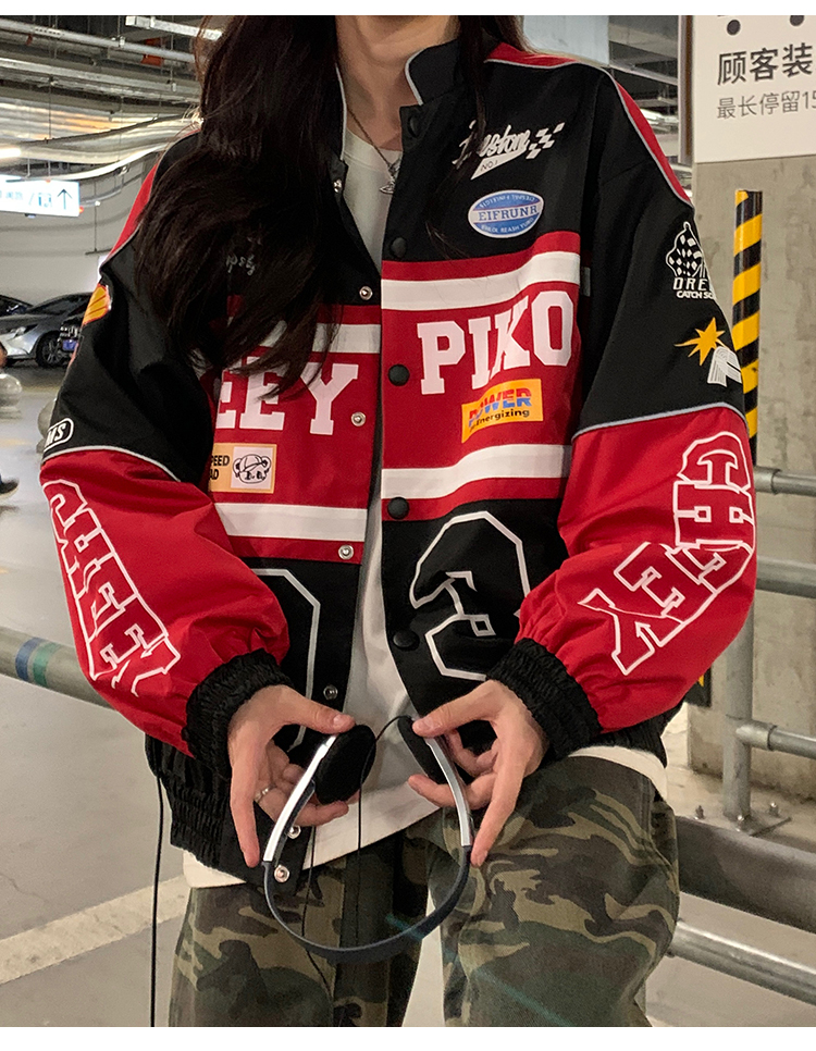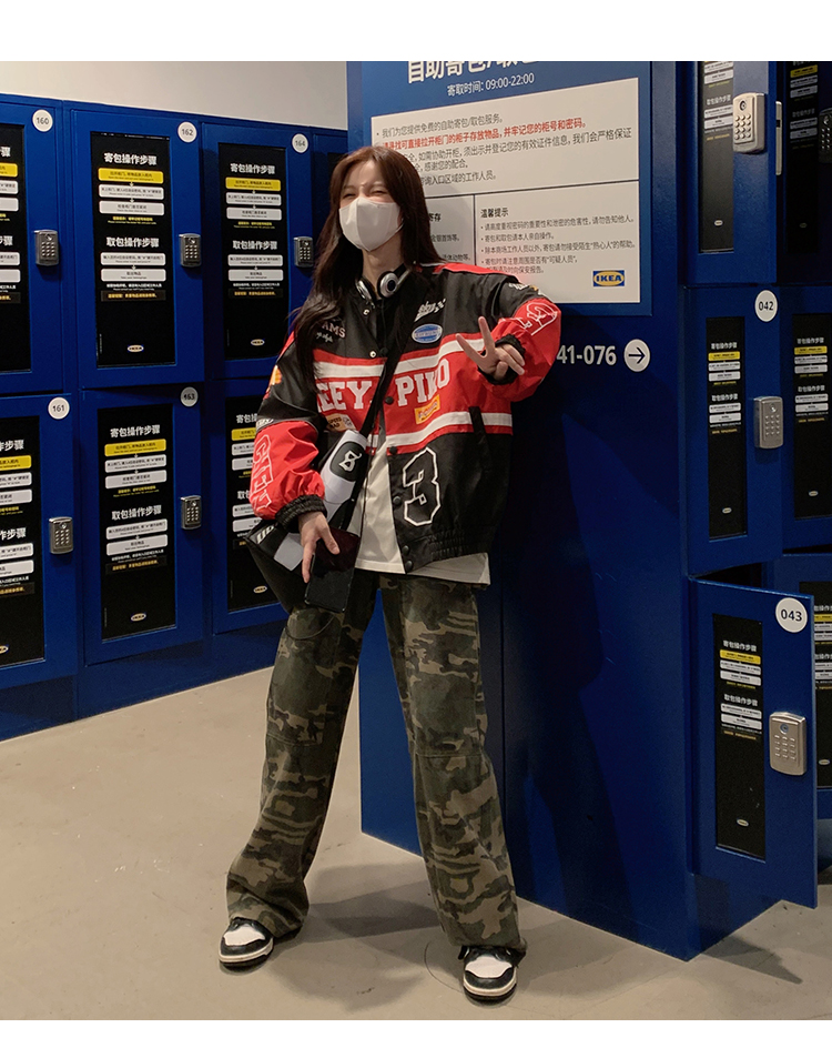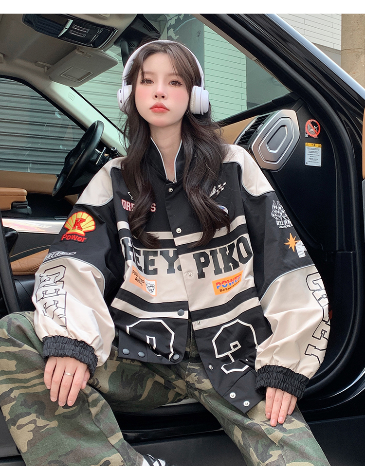 美式復古機車潮牌棒球服外套女男秋季港風街頭寬鬆賽車服夾克情侶