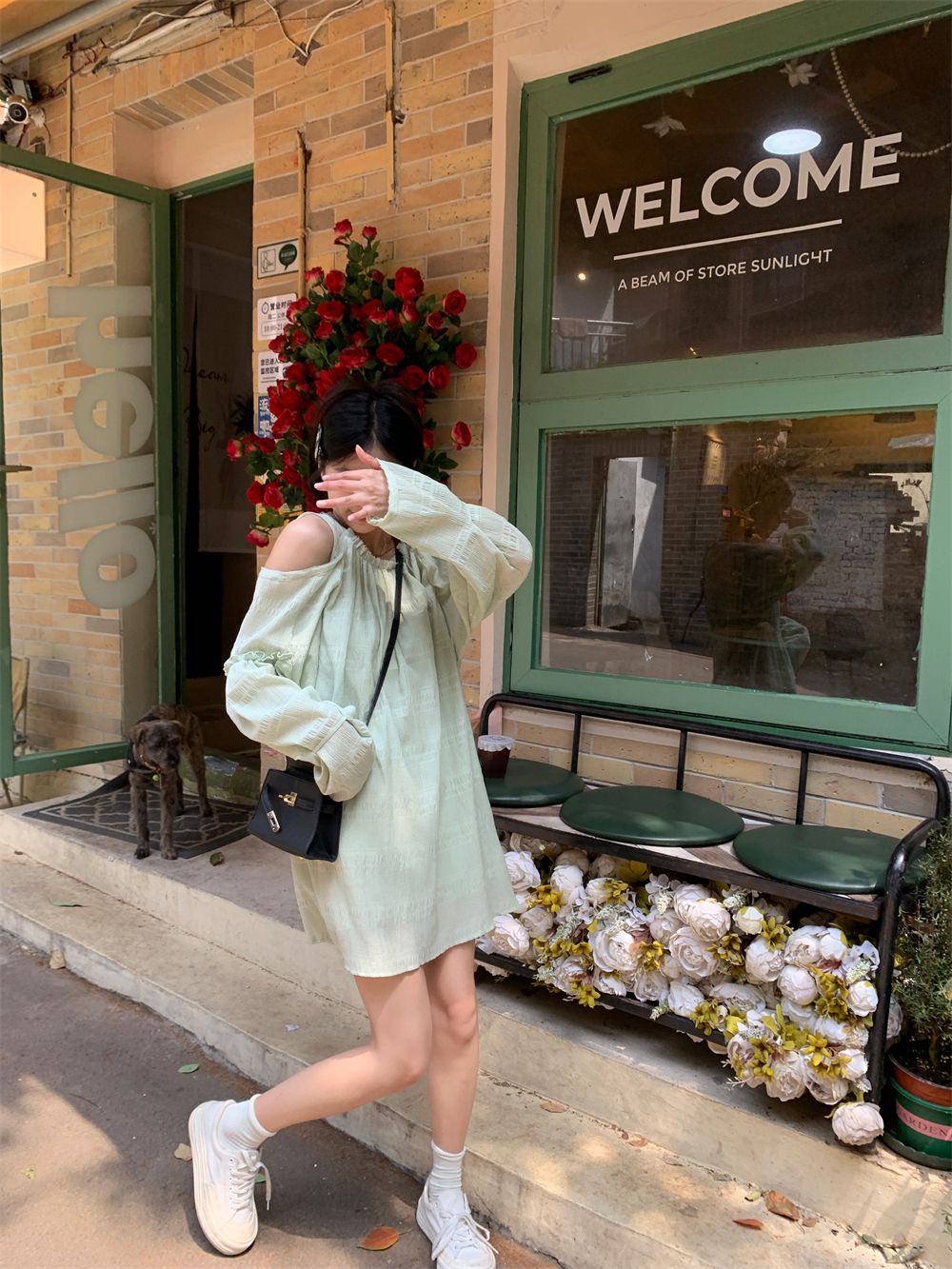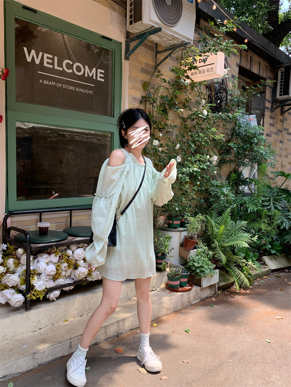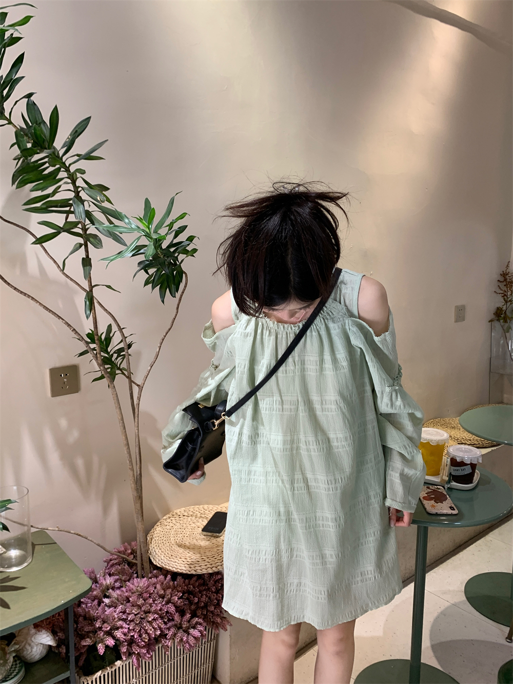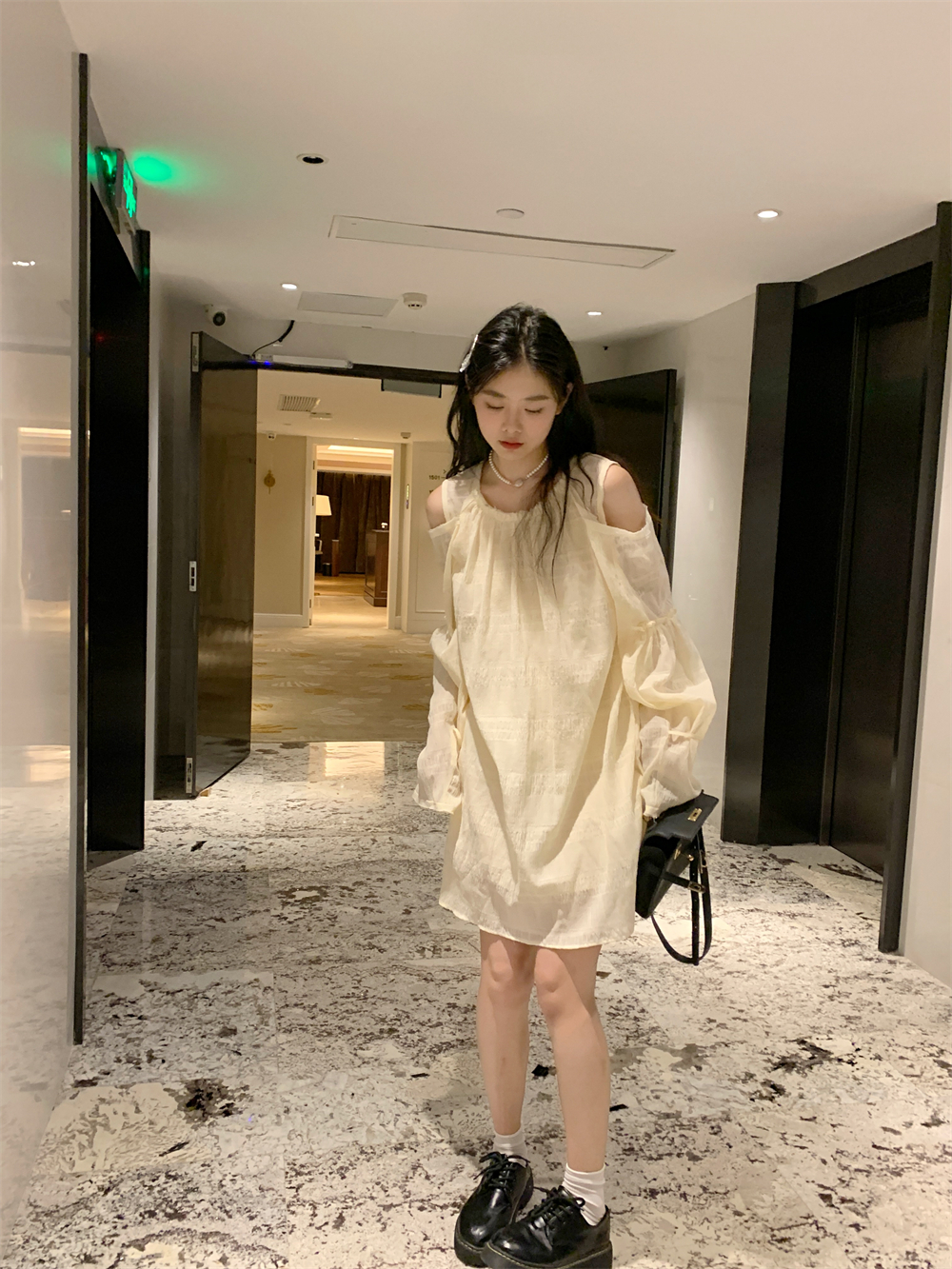 PPHOME乖甜達令~兩色茶歇甜美風洋裝設計感防曬長袖露肩短裙女
