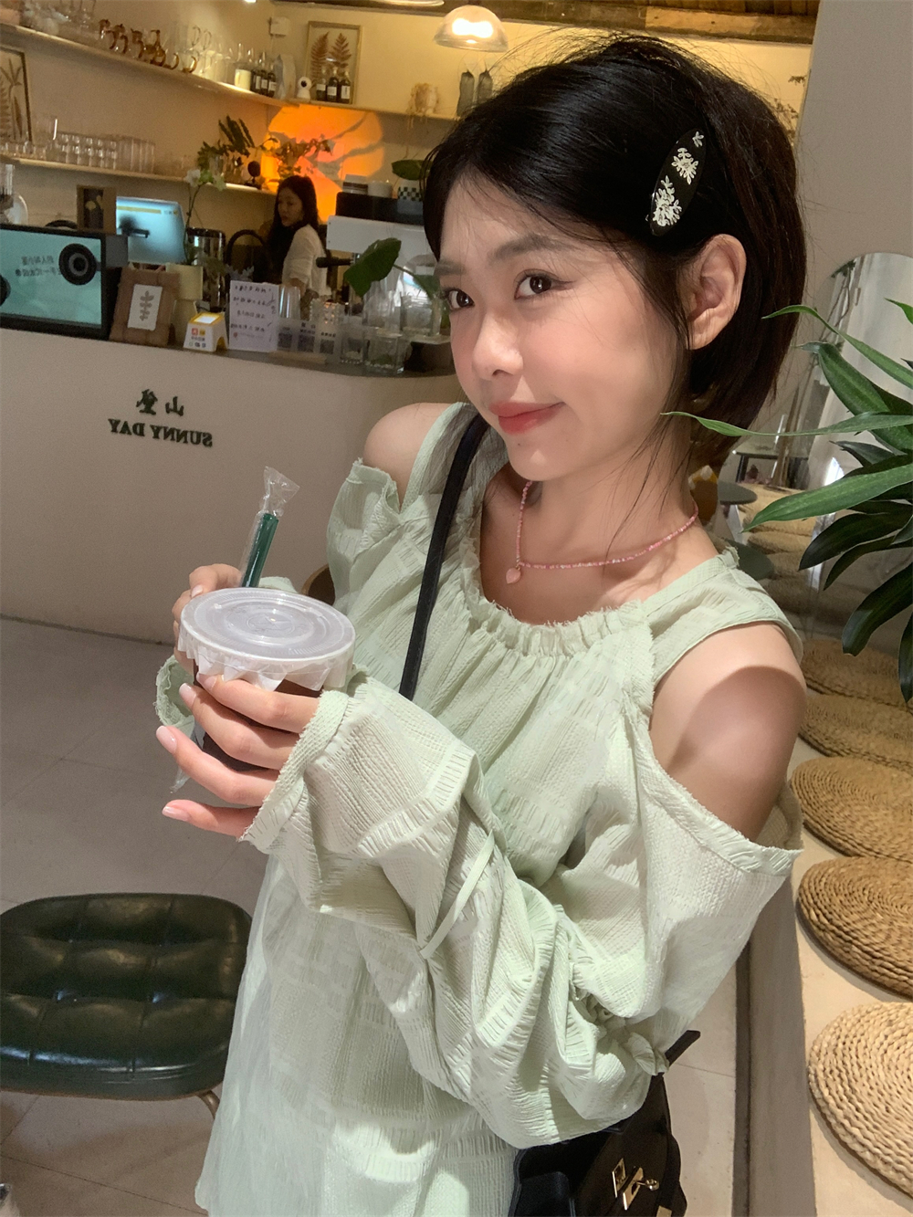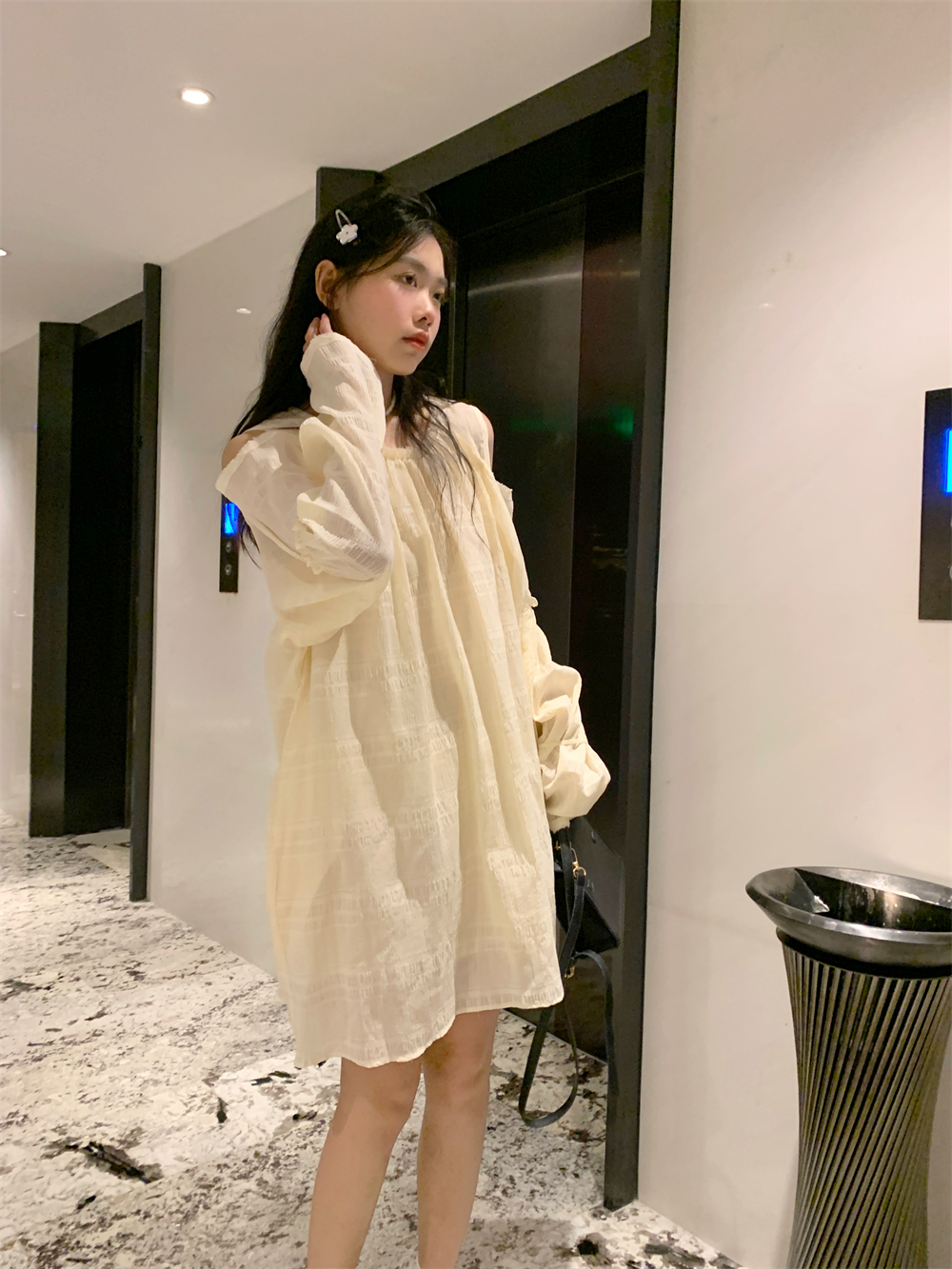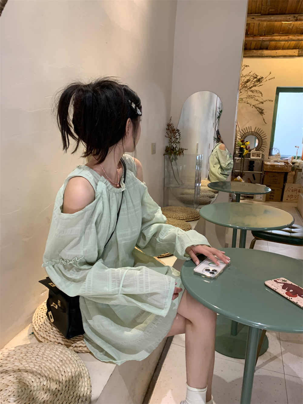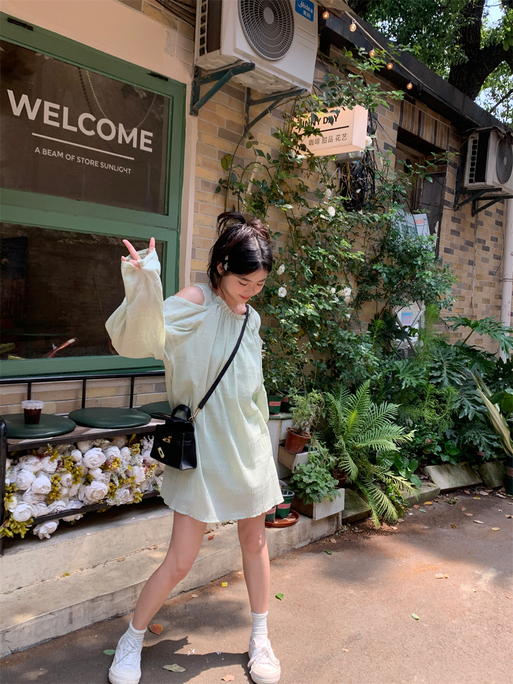 PPHOME乖甜達令~兩色茶歇甜美風洋裝設計感防曬長袖露肩短裙女