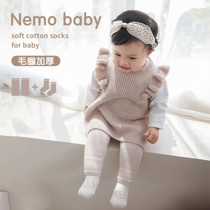 2022新品婴儿长筒袜过膝秋冬加厚保暖新生宝宝爬行护膝长款护腿袜