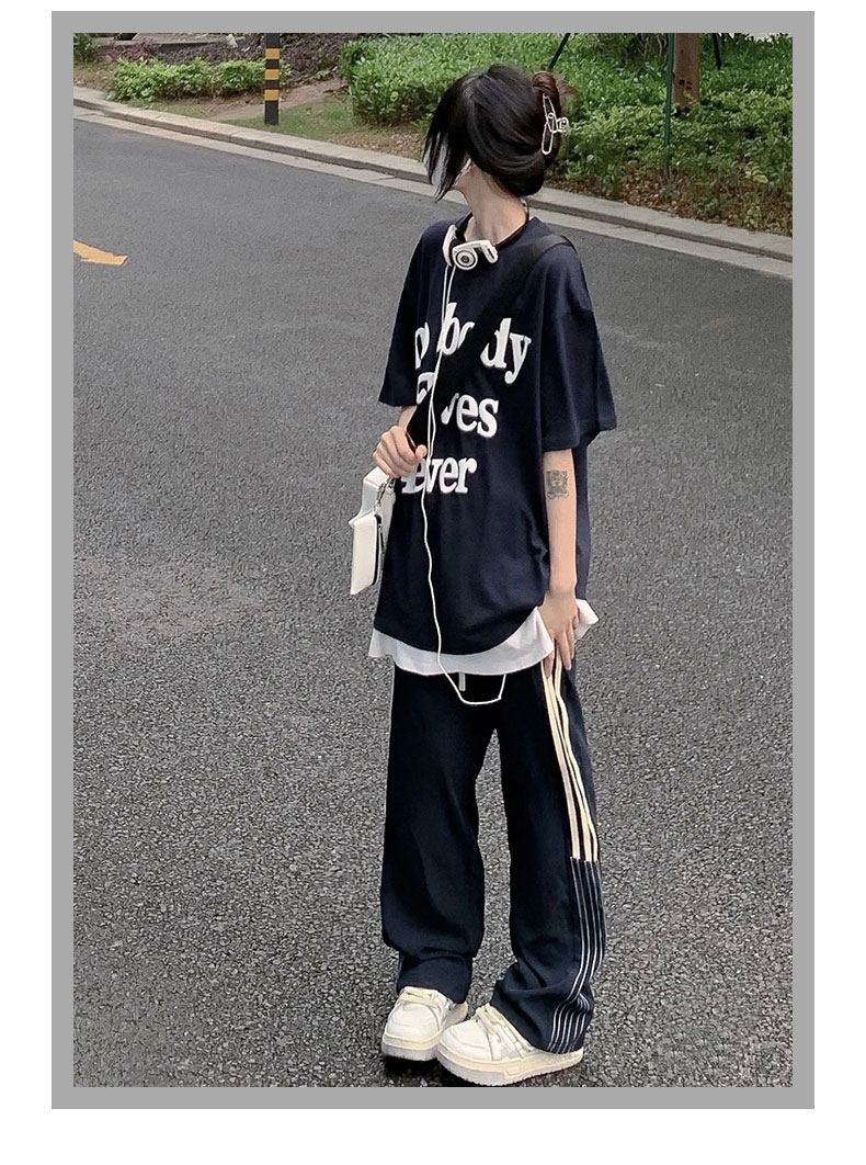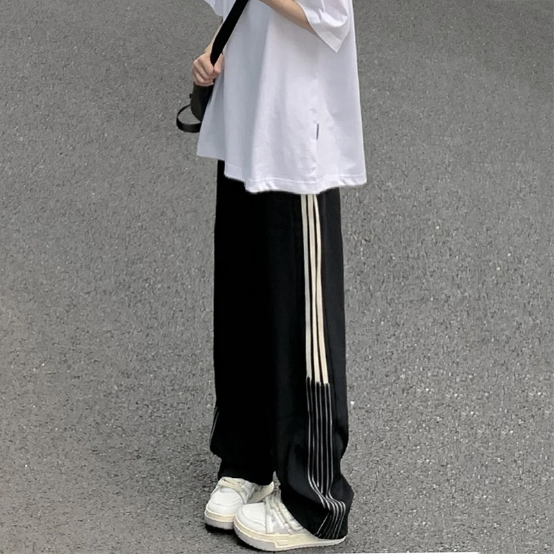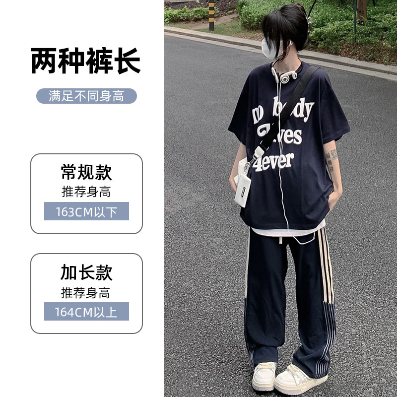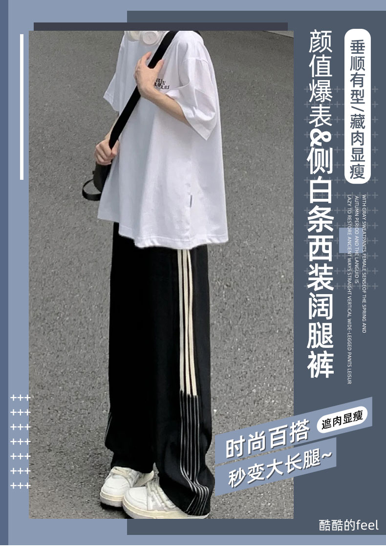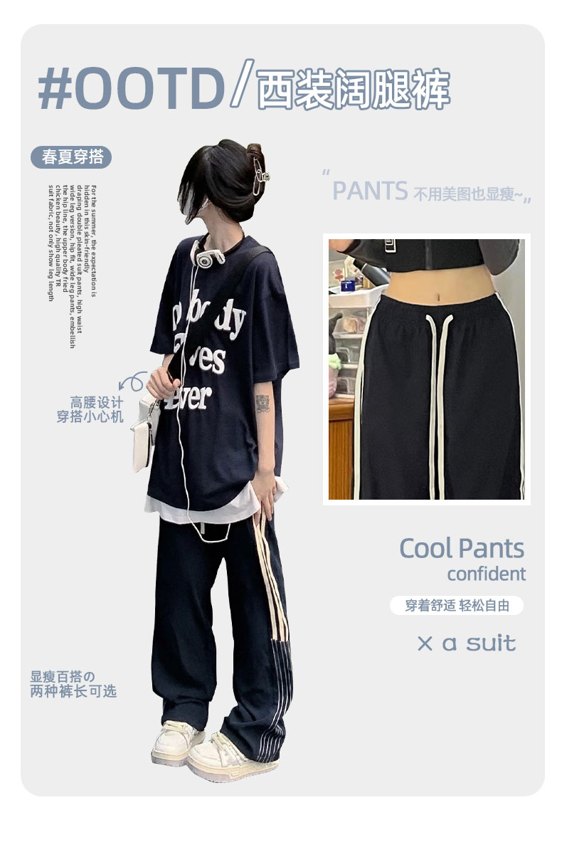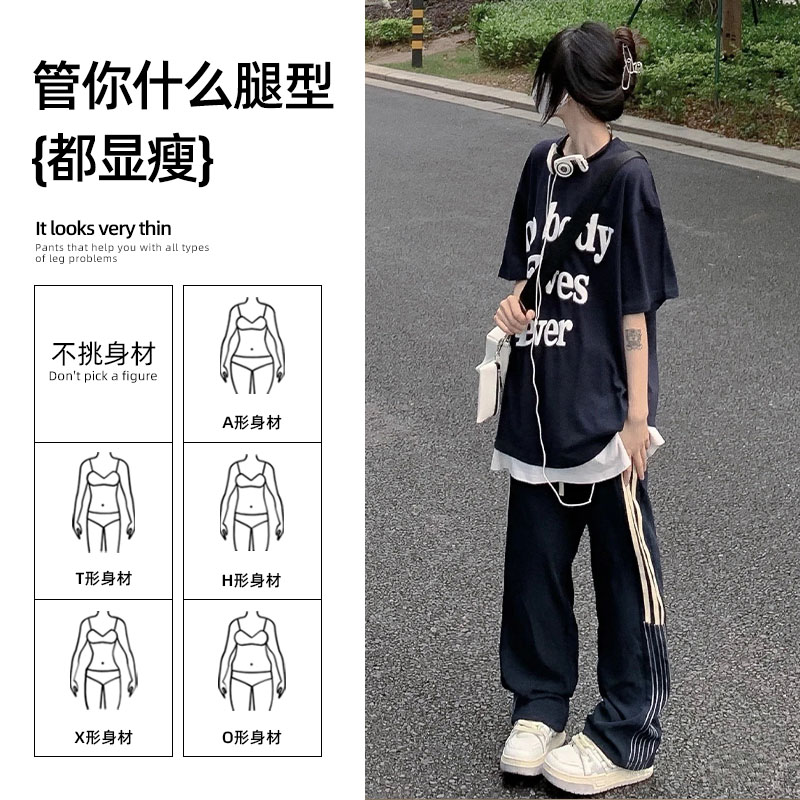 美式闊腿褲女夏季2023新款高腰垂感西裝運動褲寬鬆直筒冰絲休閒褲