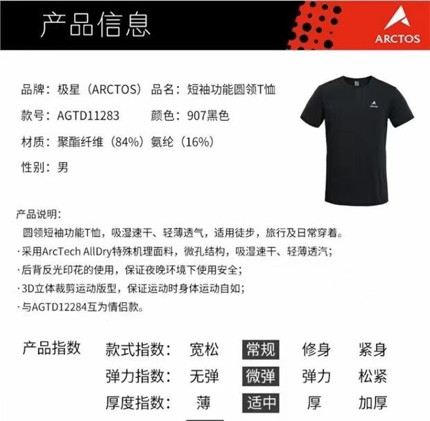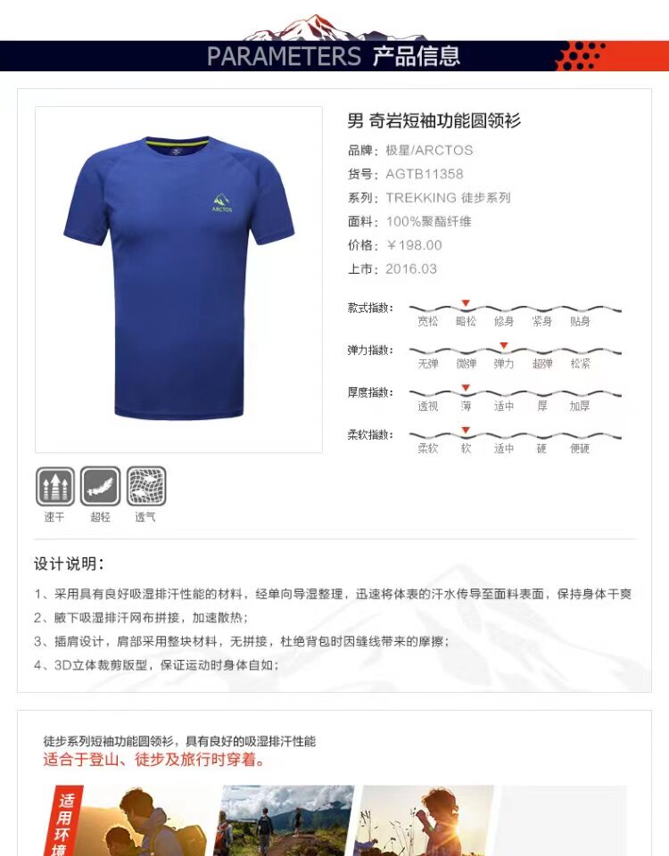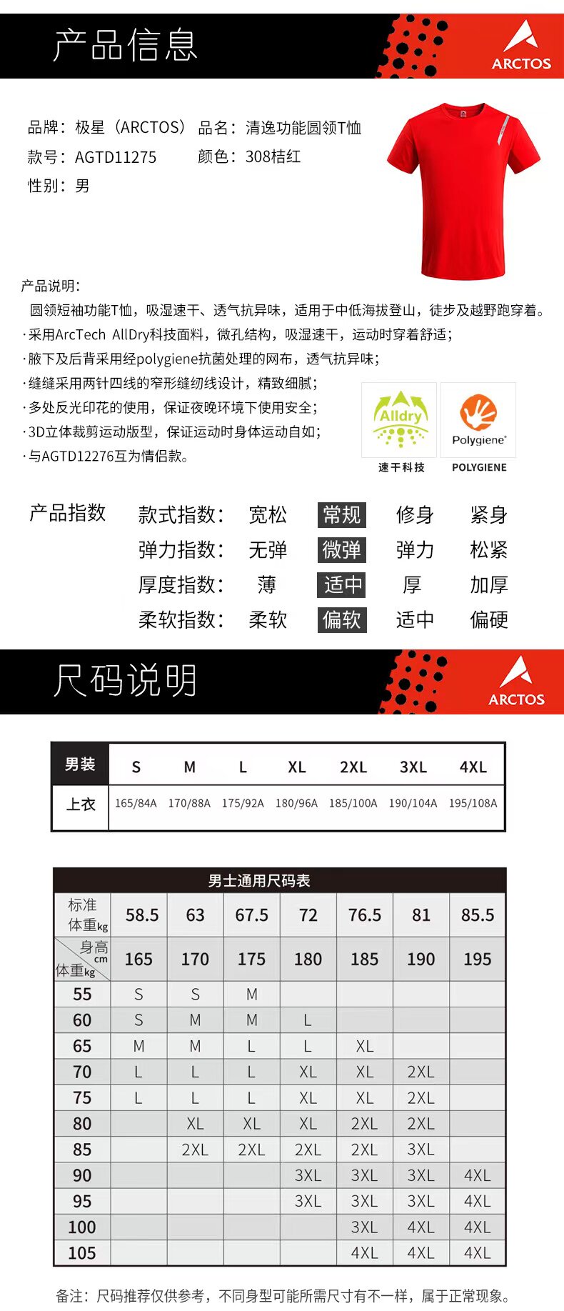 斷碼特價ARCTOS極星戶外夏季男女款圓領運動快乾排汗透氣短袖T恤