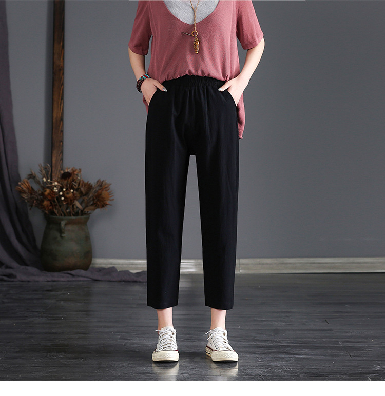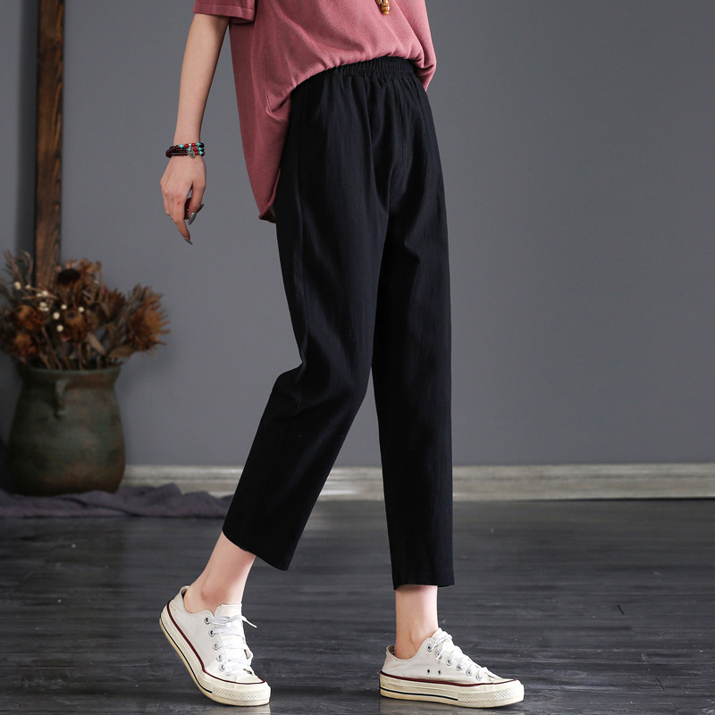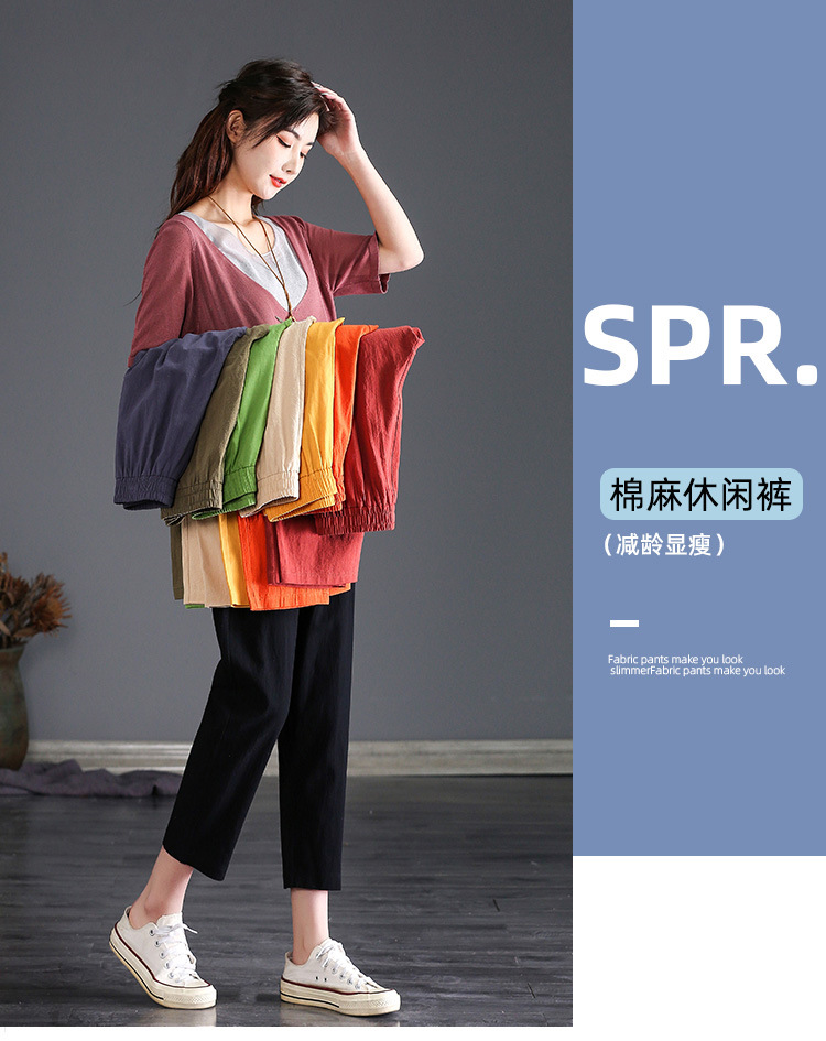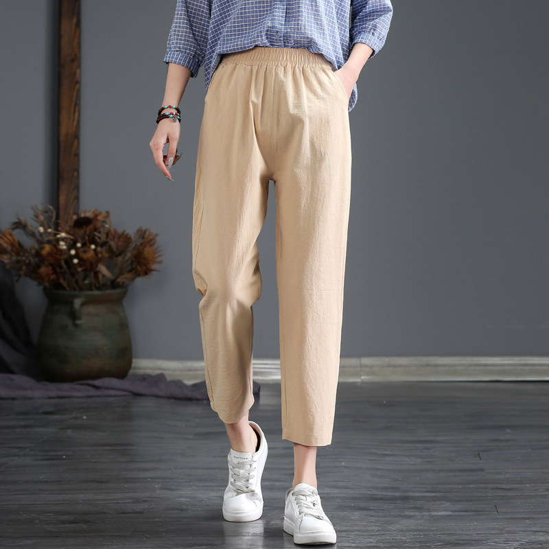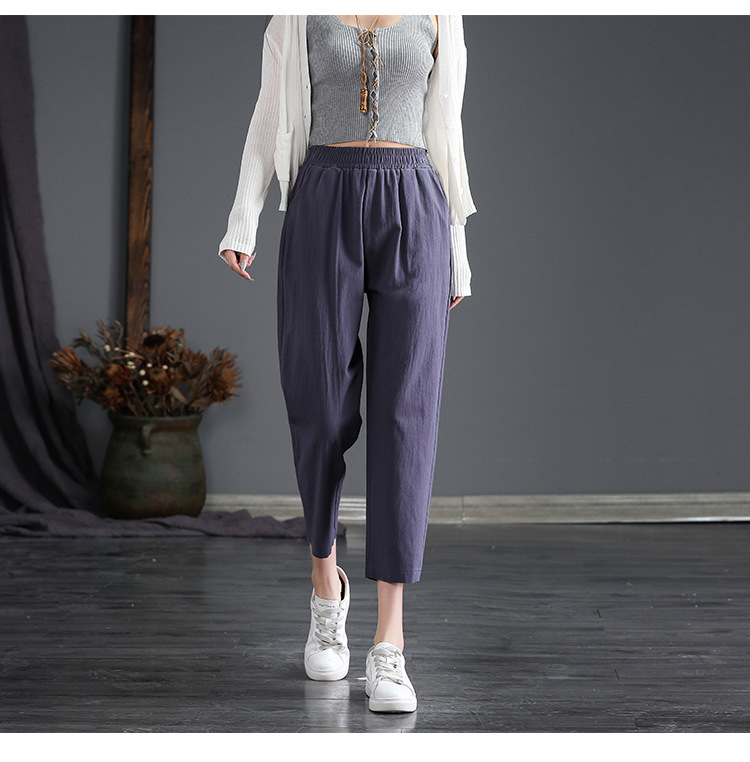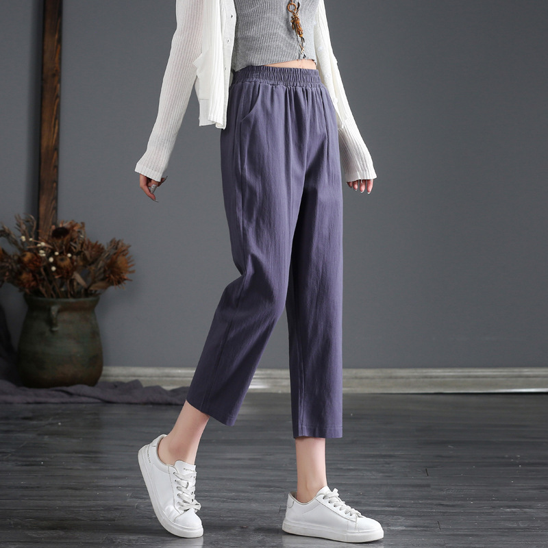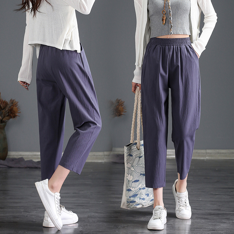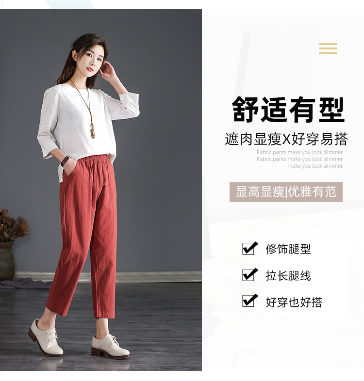 外穿棉麻九分裤女春夏薄款高腰宽松直筒裤大码显瘦哈伦休闲萝卜裤