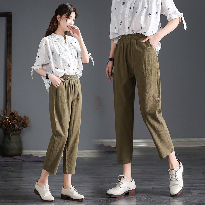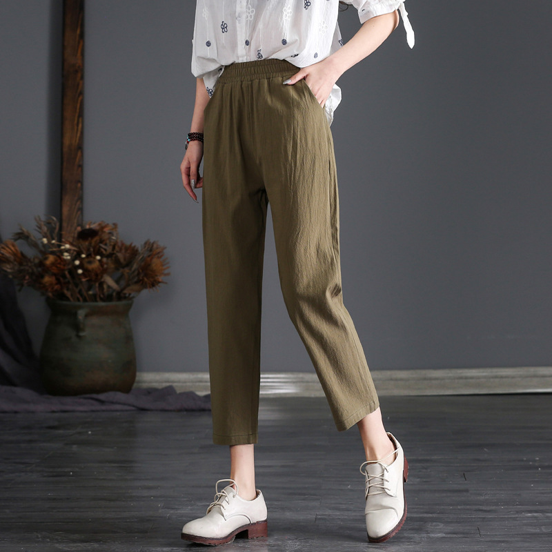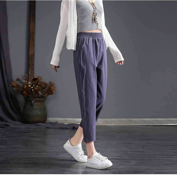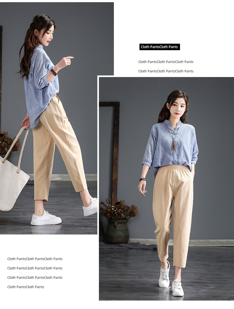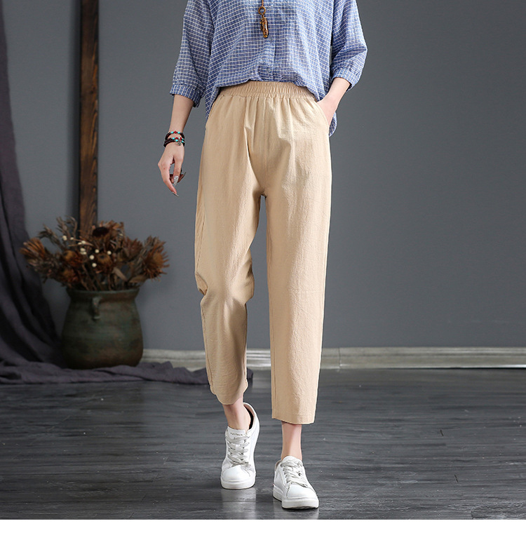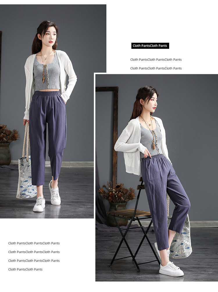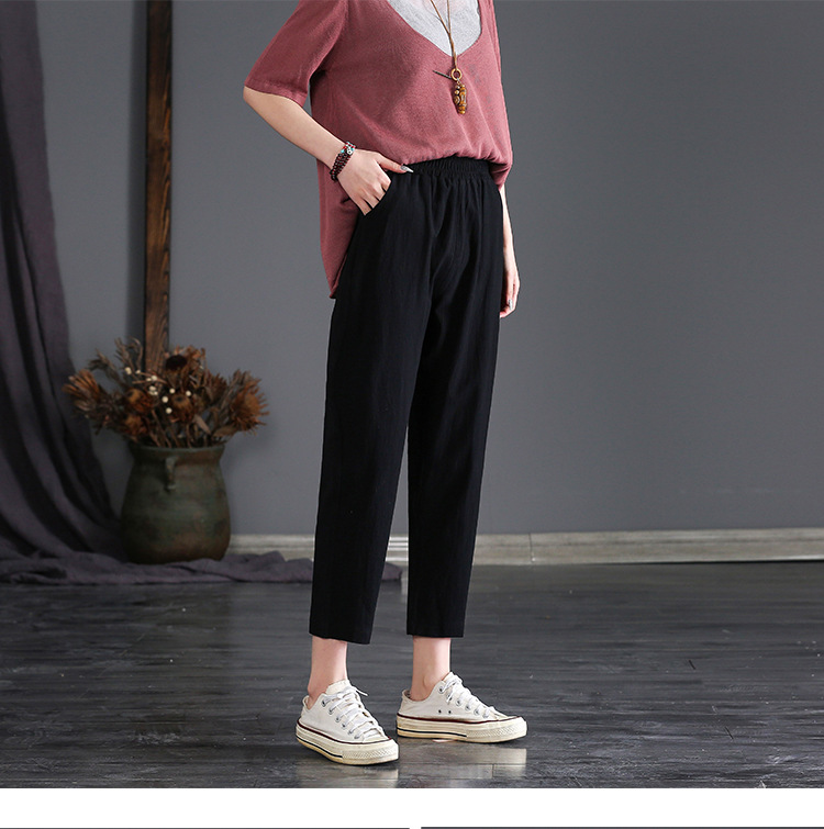外穿棉麻九分裤女春夏薄款高腰宽松直筒裤大码显瘦哈伦休闲萝卜裤