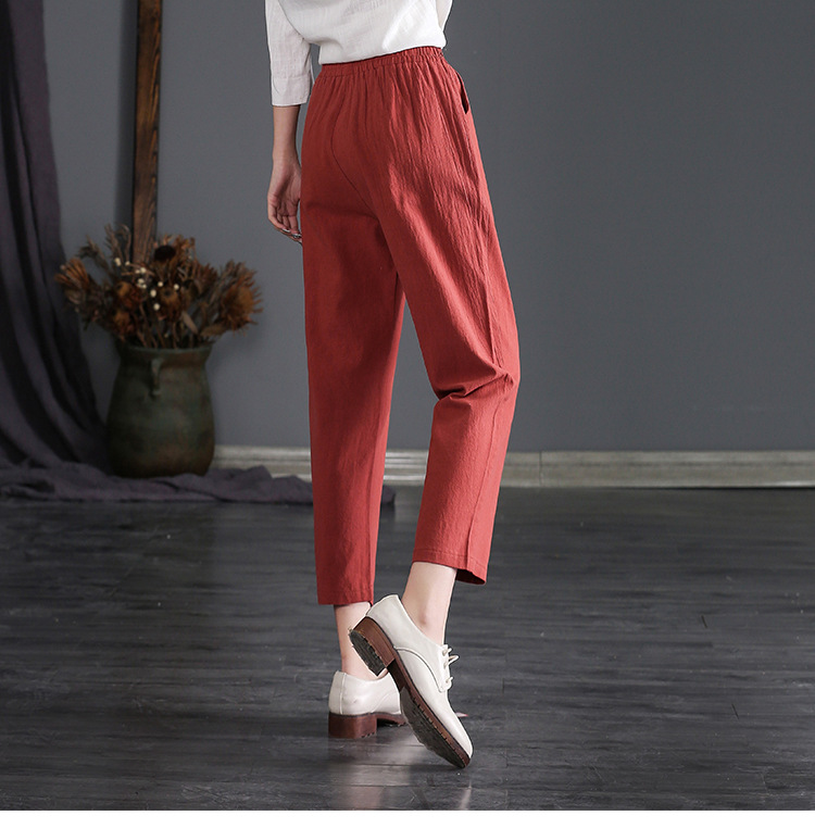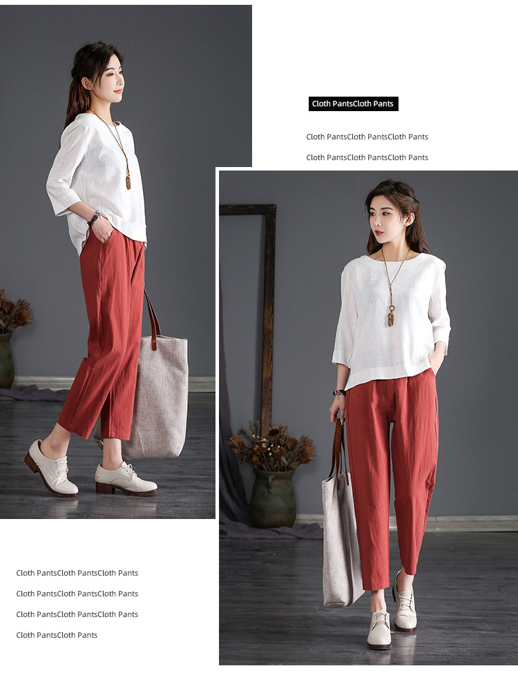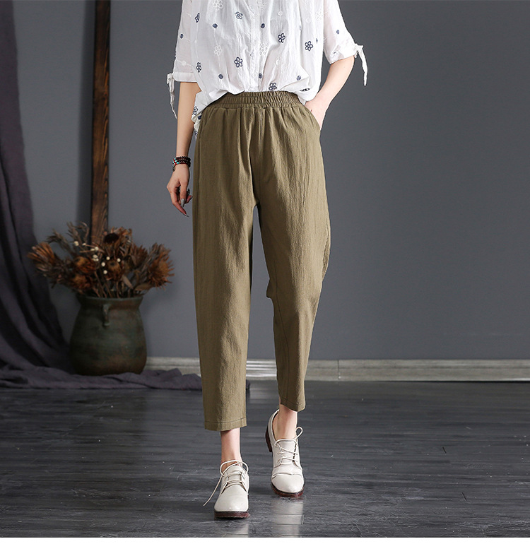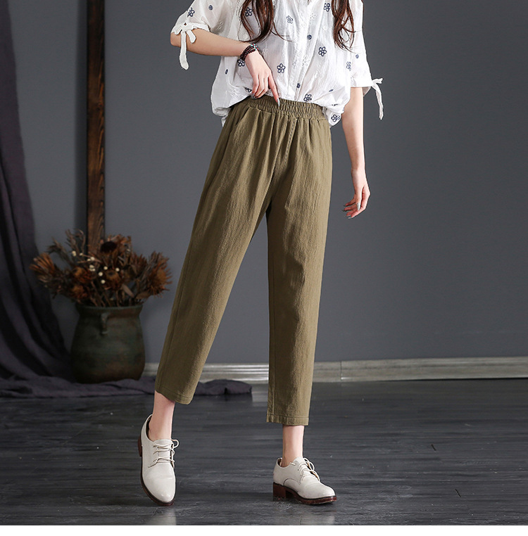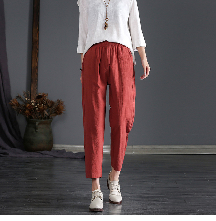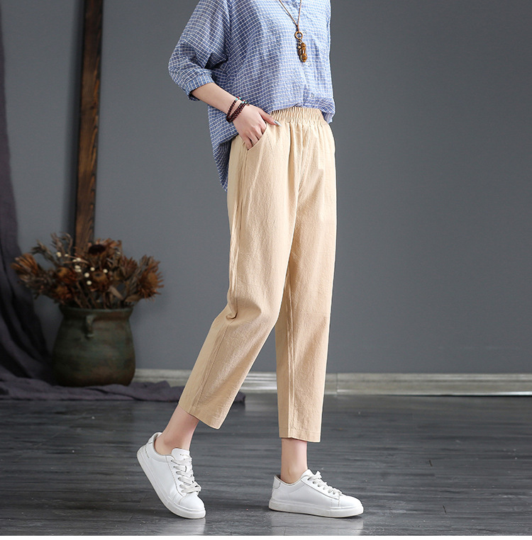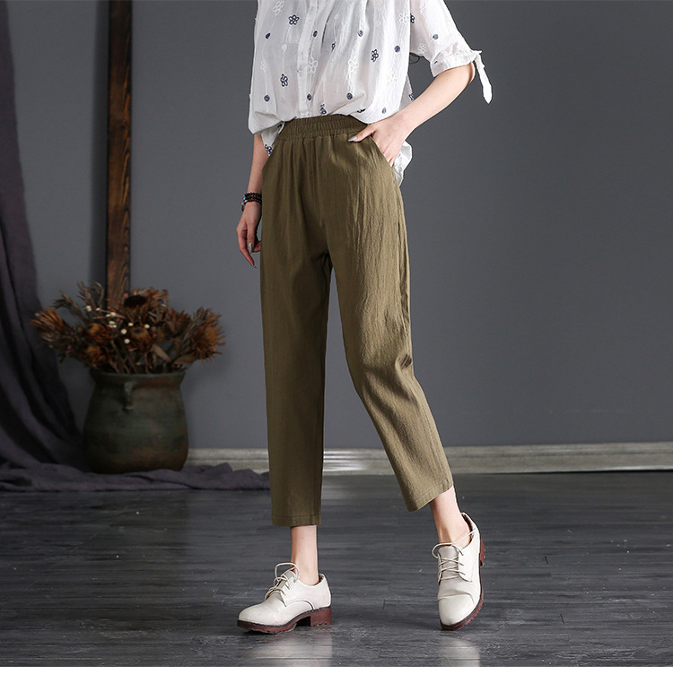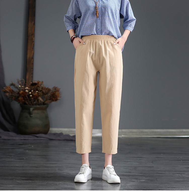 外穿棉麻九分裤女春夏薄款高腰宽松直筒裤大码显瘦哈伦休闲萝卜裤