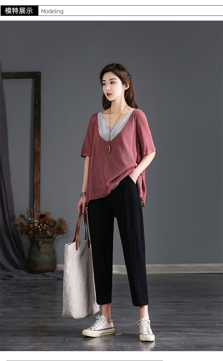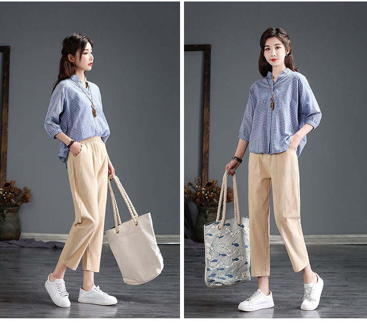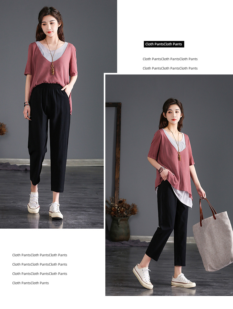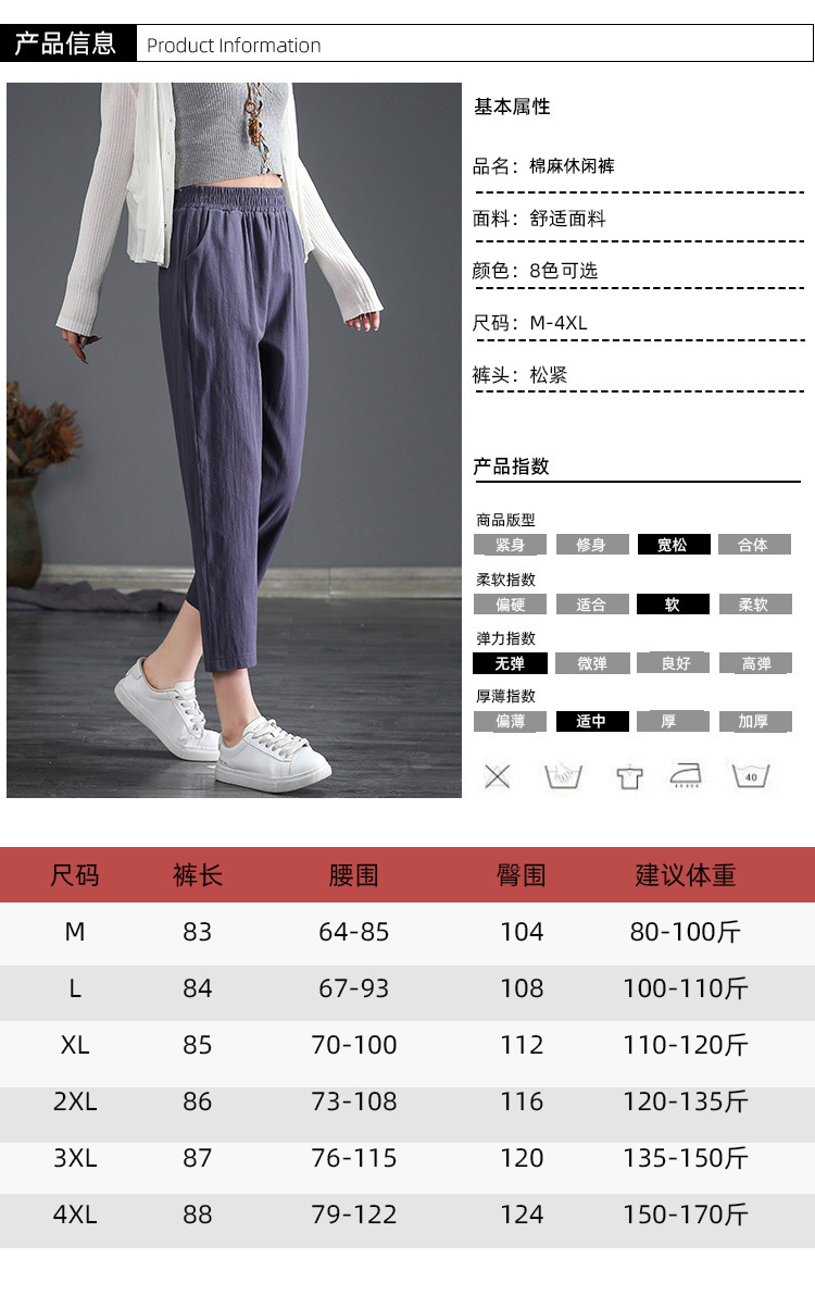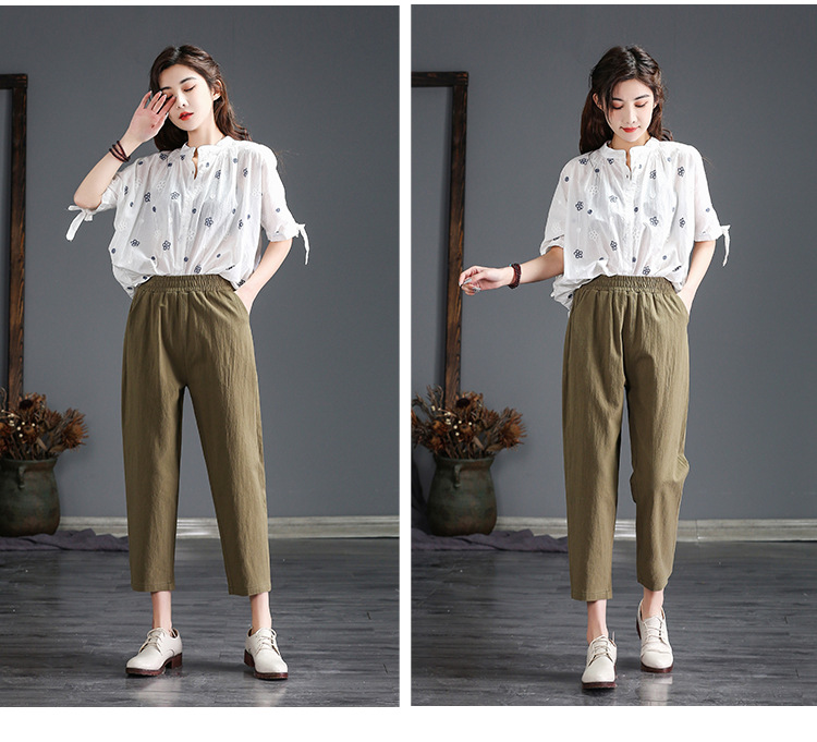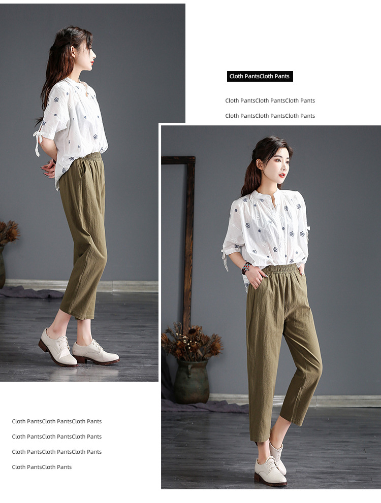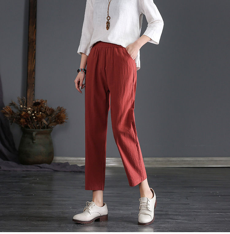 外穿棉麻九分裤女春夏薄款高腰宽松直筒裤大码显瘦哈伦休闲萝卜裤
