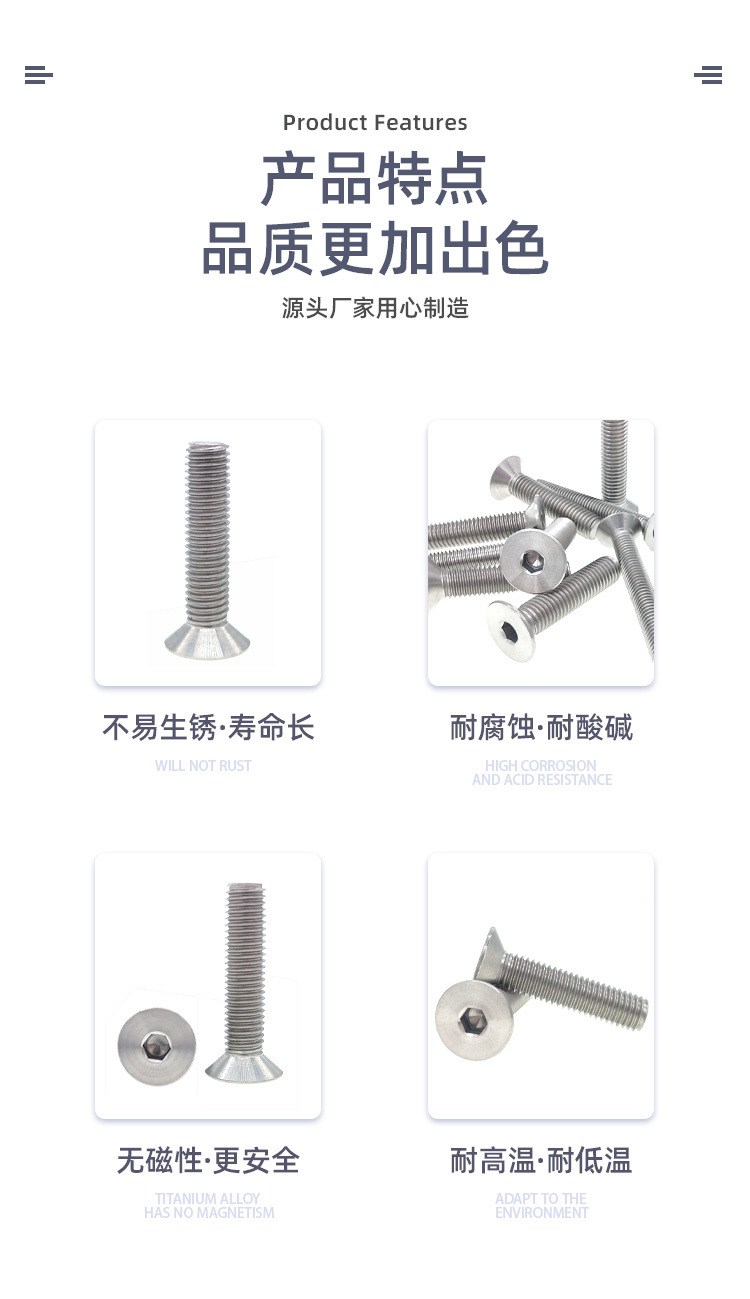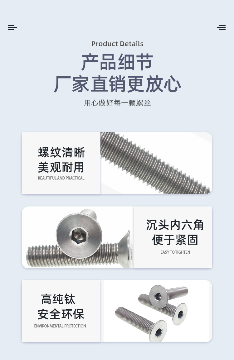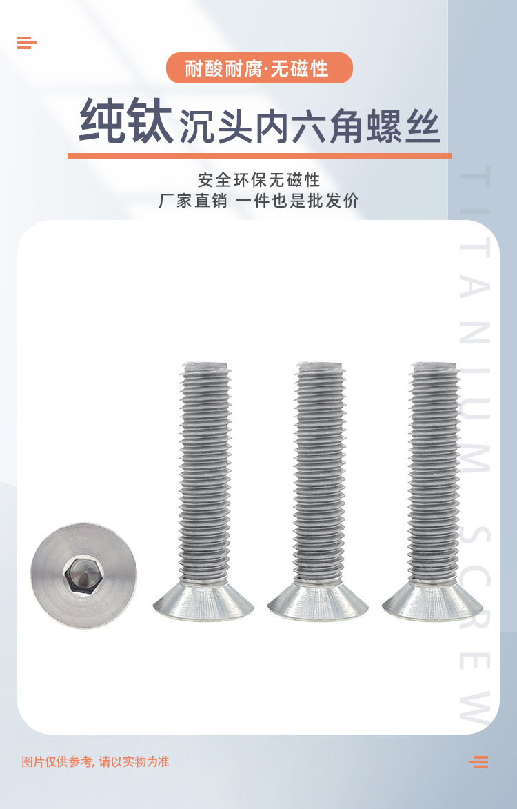 M2M3M4M5M6M8M10钛合金TA2钛沉头内六角螺丝 平头螺丝钉*16/20mm