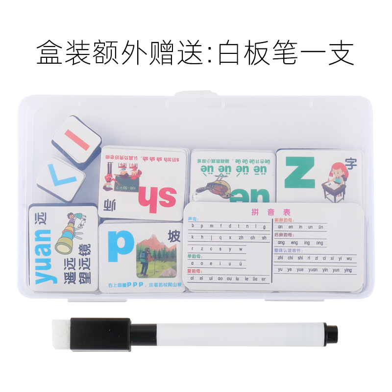 颜色 塑料盒装声韵母送白板笔冰箱贴,自封袋装声韵母冰箱贴