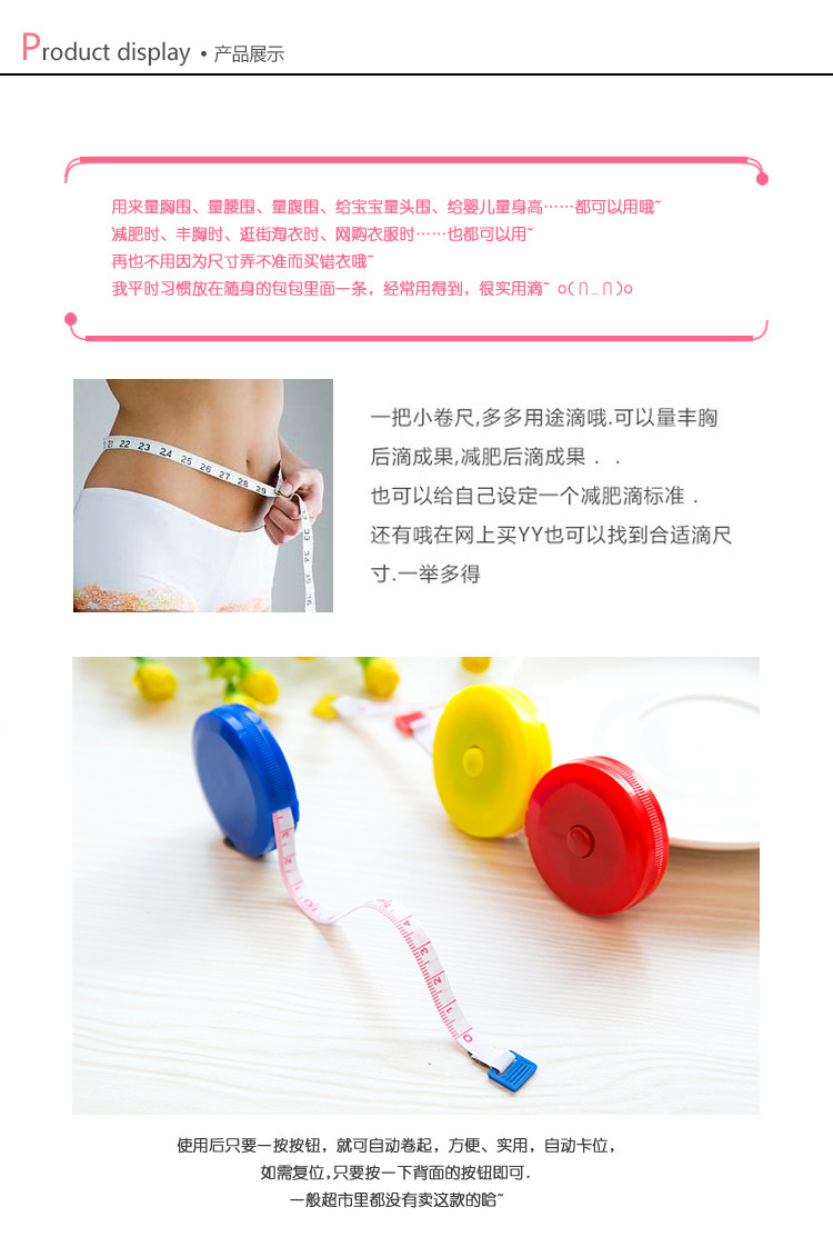 卷尺大量批发 测量伸缩型塑料卷尺衣尺皮尺软尺 迷你小尺子小学生