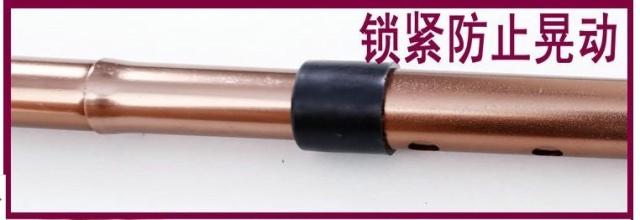 2、在调节键进行拉、缩调节时,注意要确认听到“咔哒”一声,看到你需要高度位置小孔里,有一个小金属柄出来,表明调节键调到位。将下面的螺旋拧紧,防止调节钮从孔中脱出。