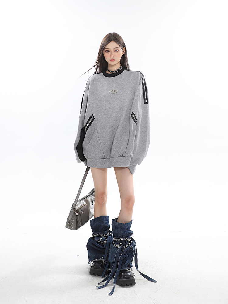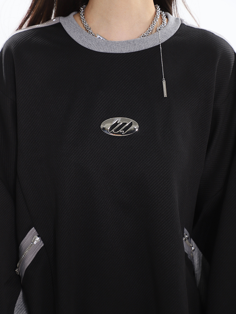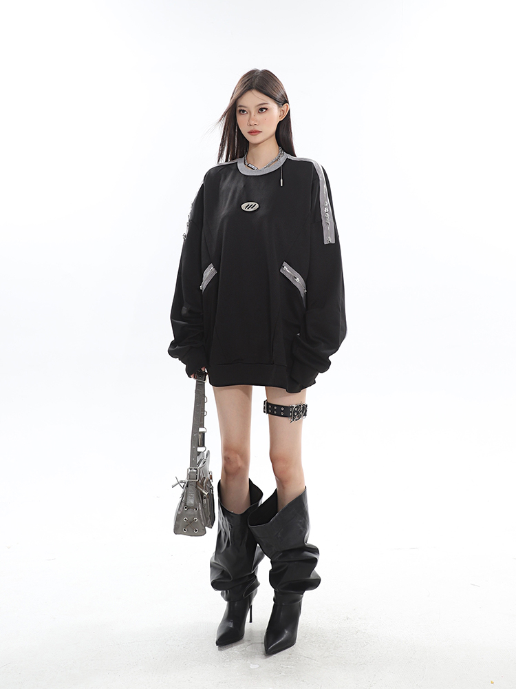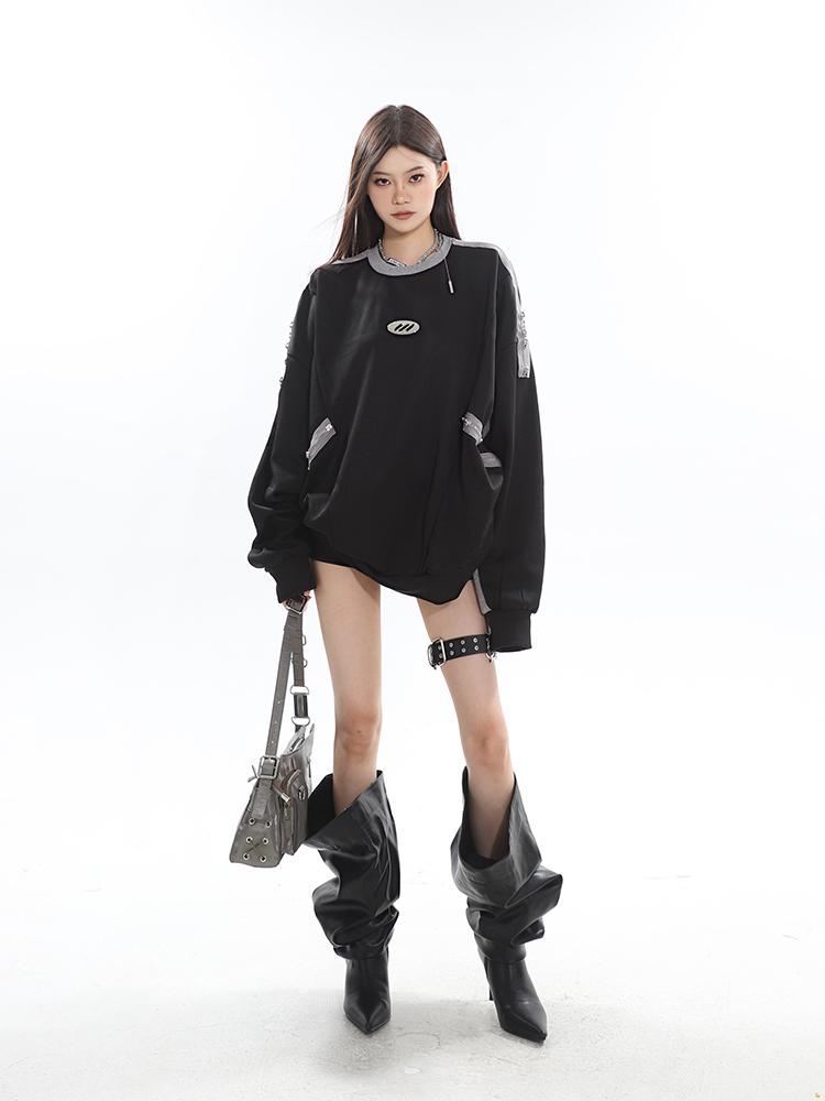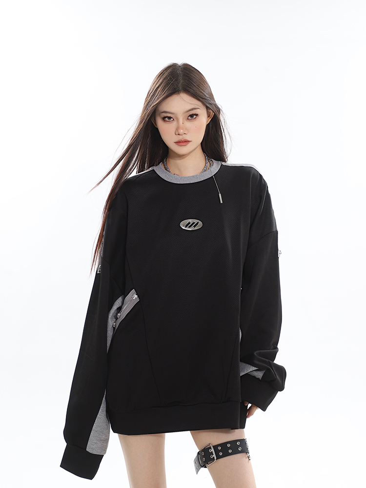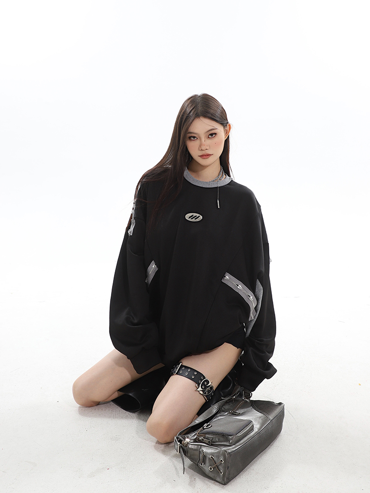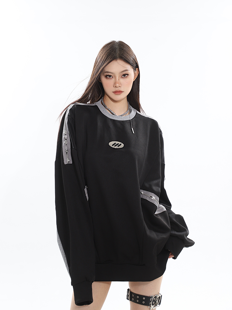 CCUP SAPCE 2023外套設計感金屬裝飾上衣撞色圓領寬鬆情侶厚T恤女