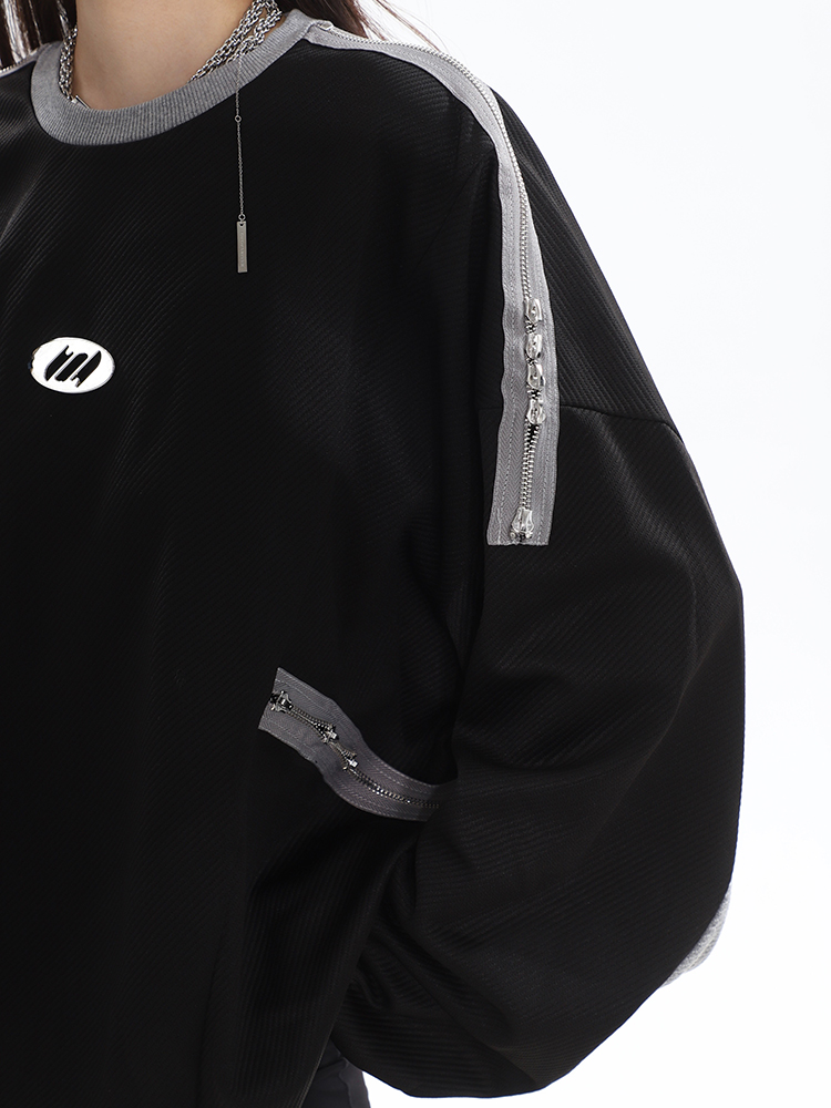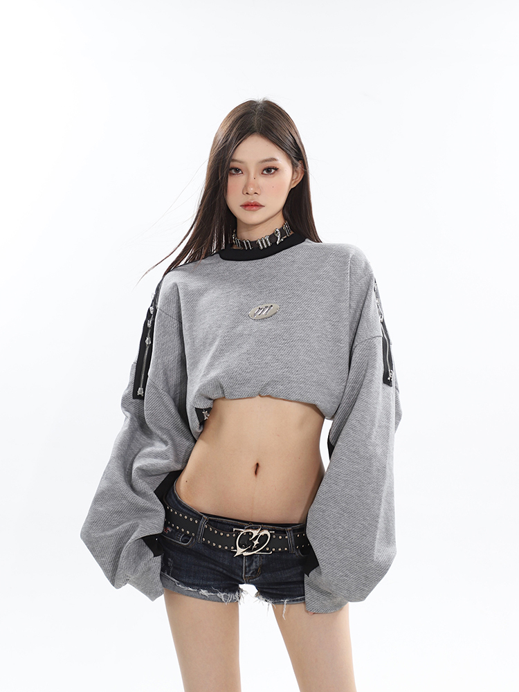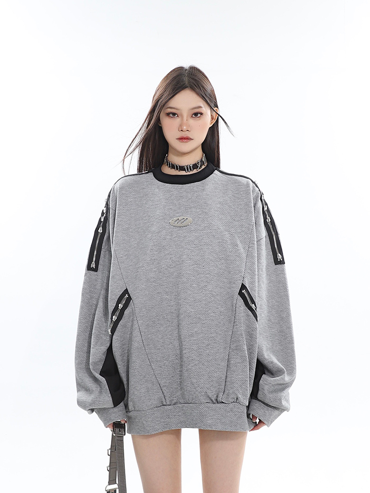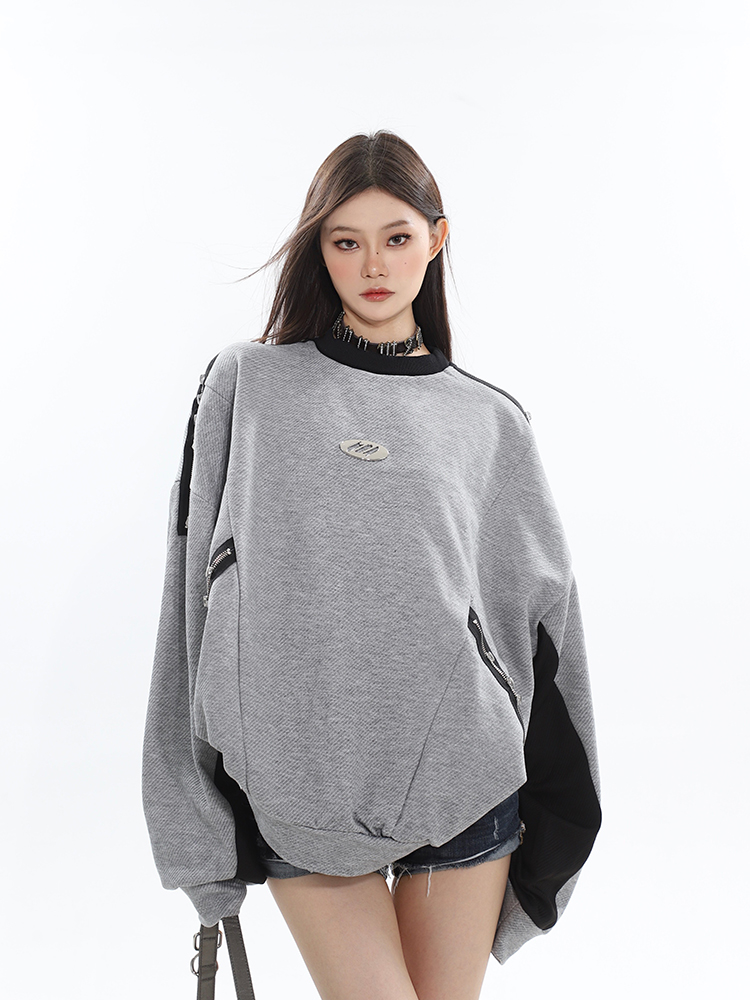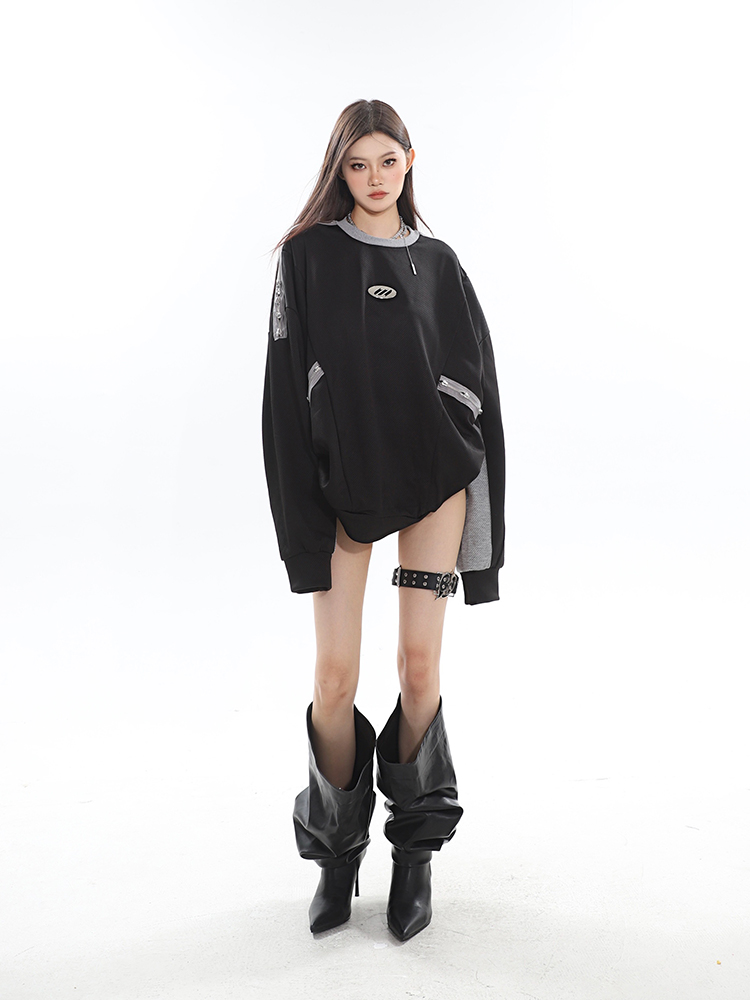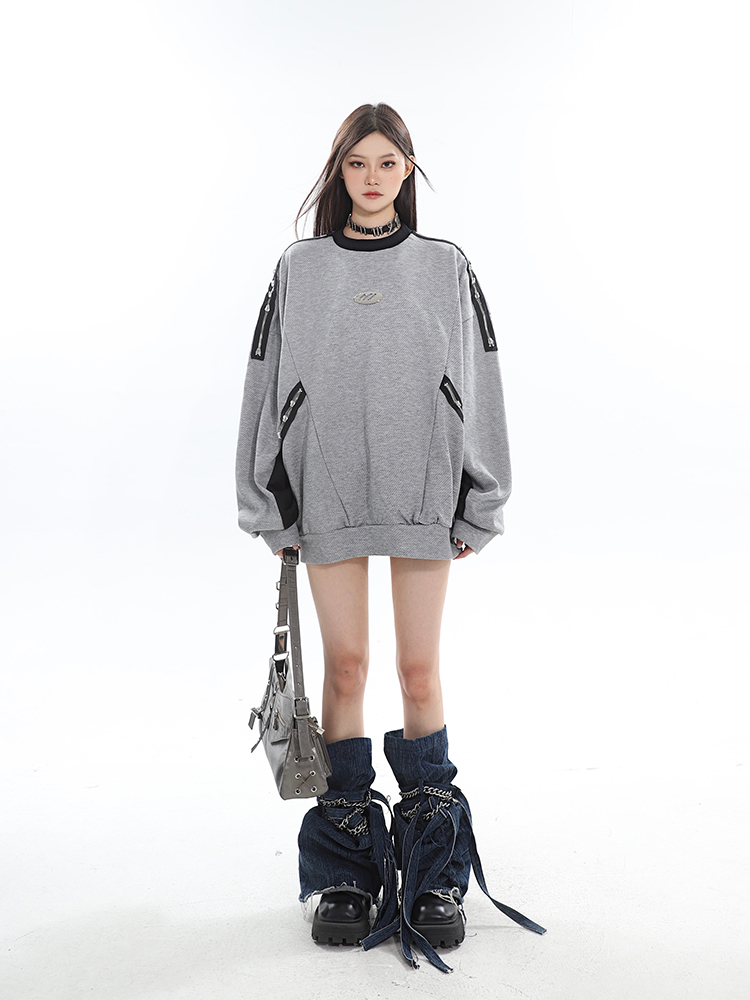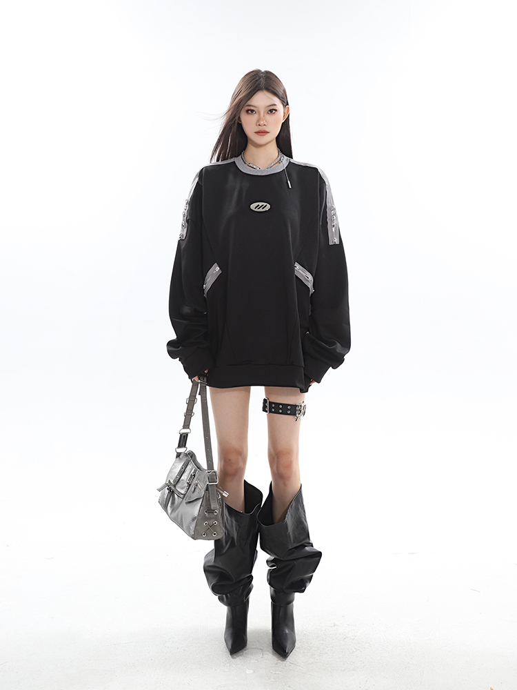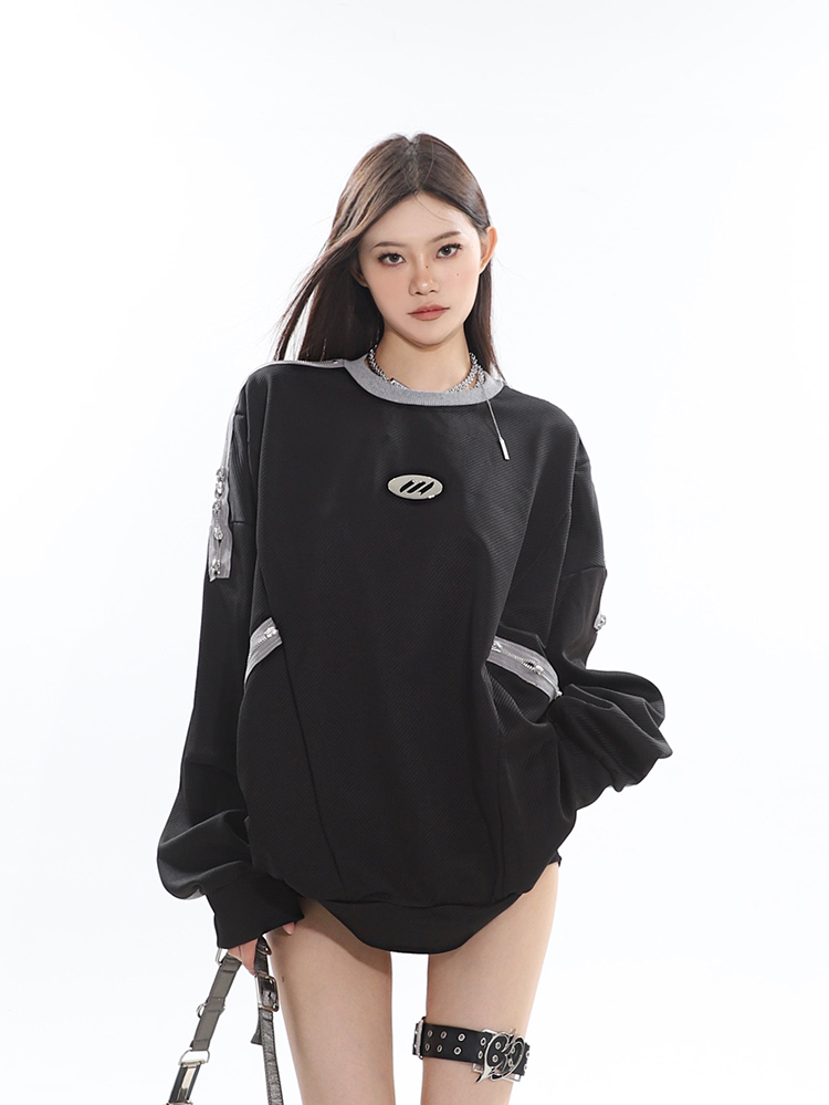 CCUP SAPCE 2023外套設計感金屬裝飾上衣撞色圓領寬鬆情侶厚T恤女