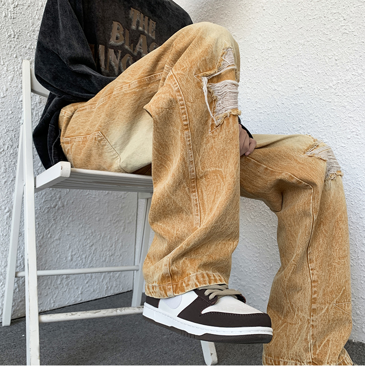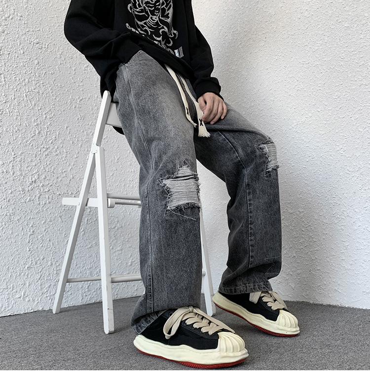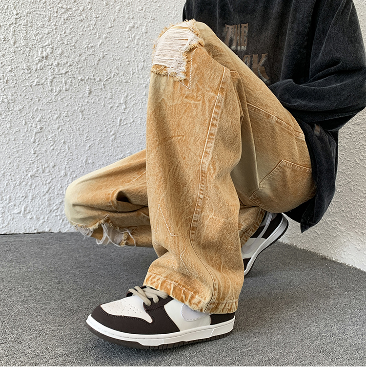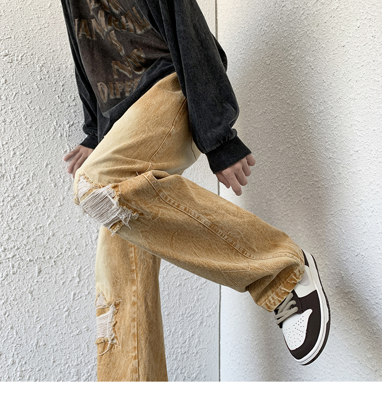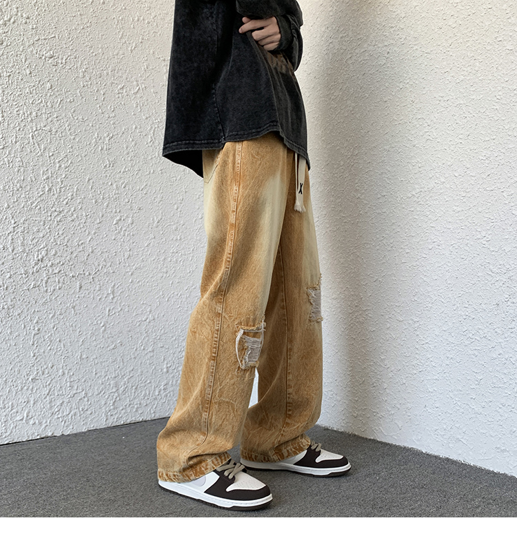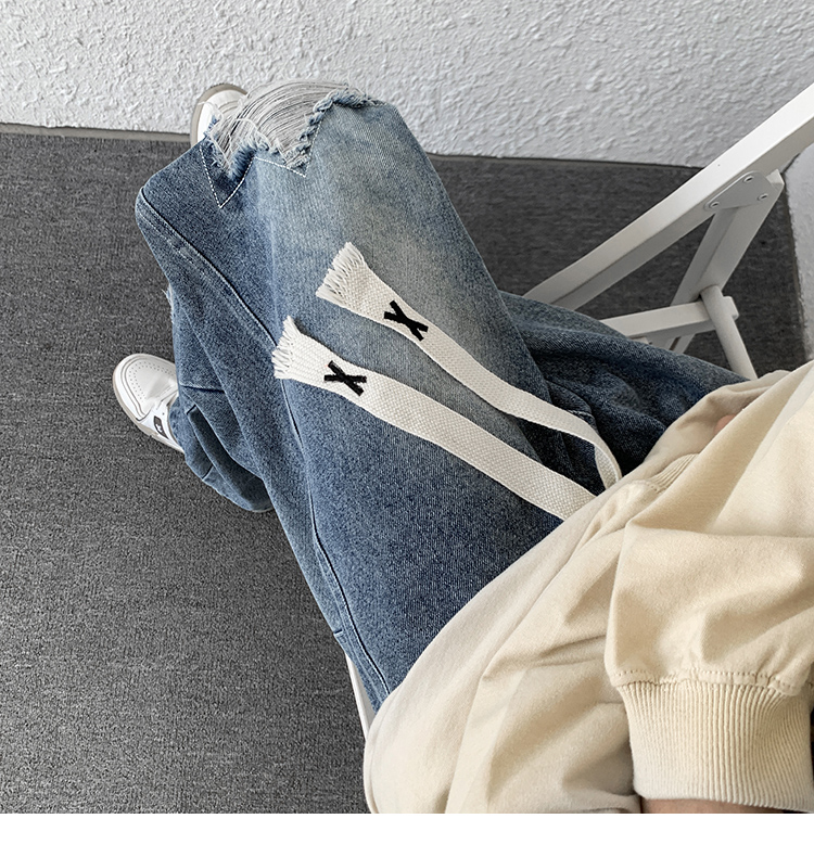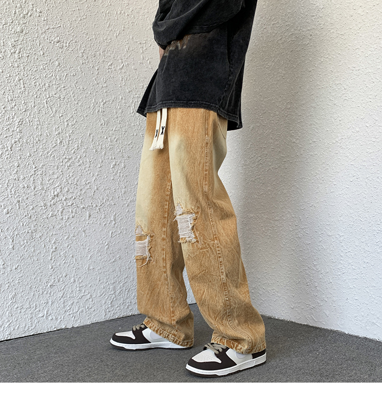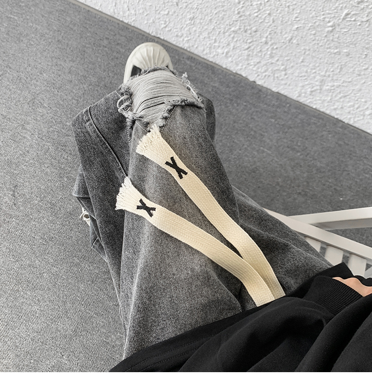歐美hiphop褲子ins高街潮古著vintage牛仔褲五角星破洞刺繡闊腿褲