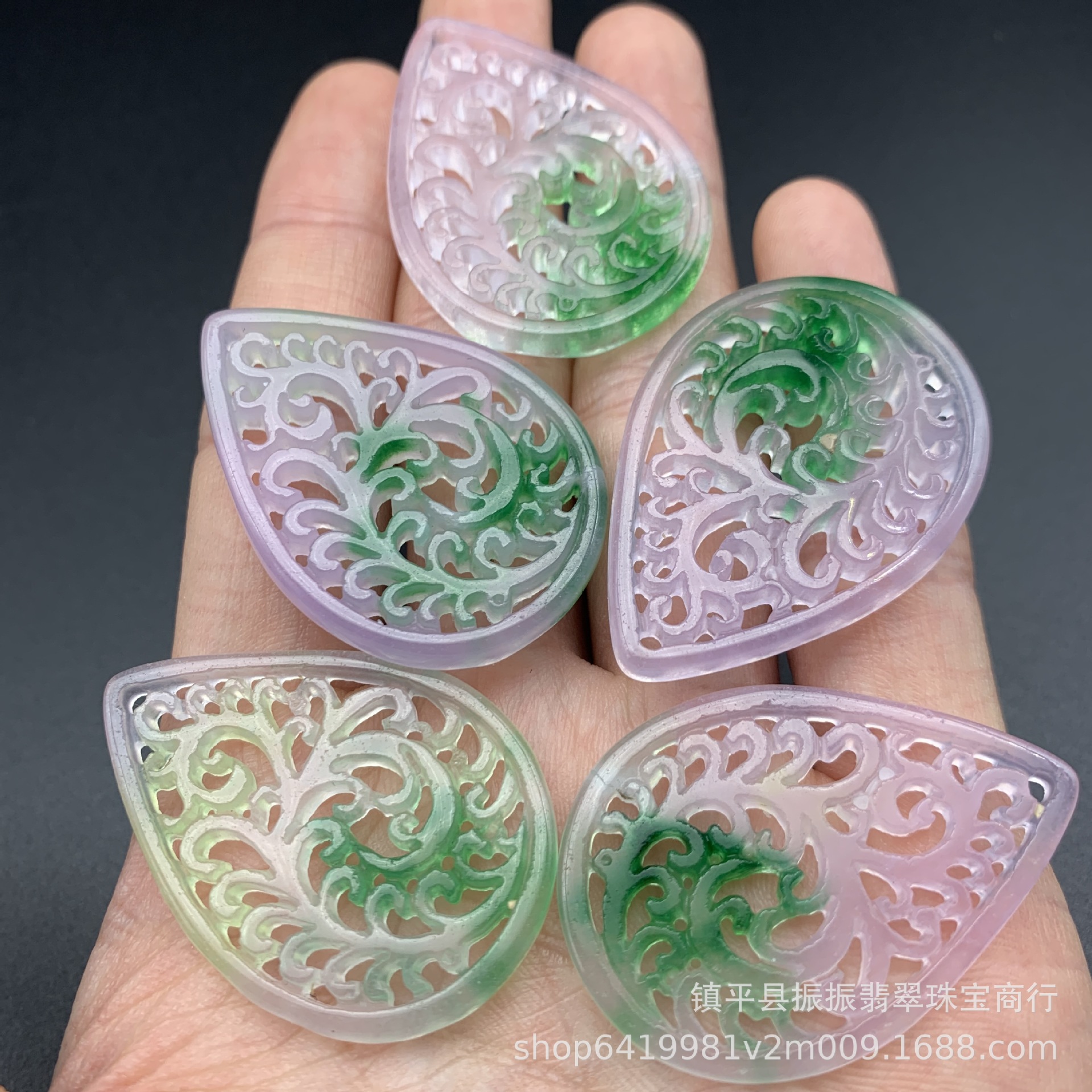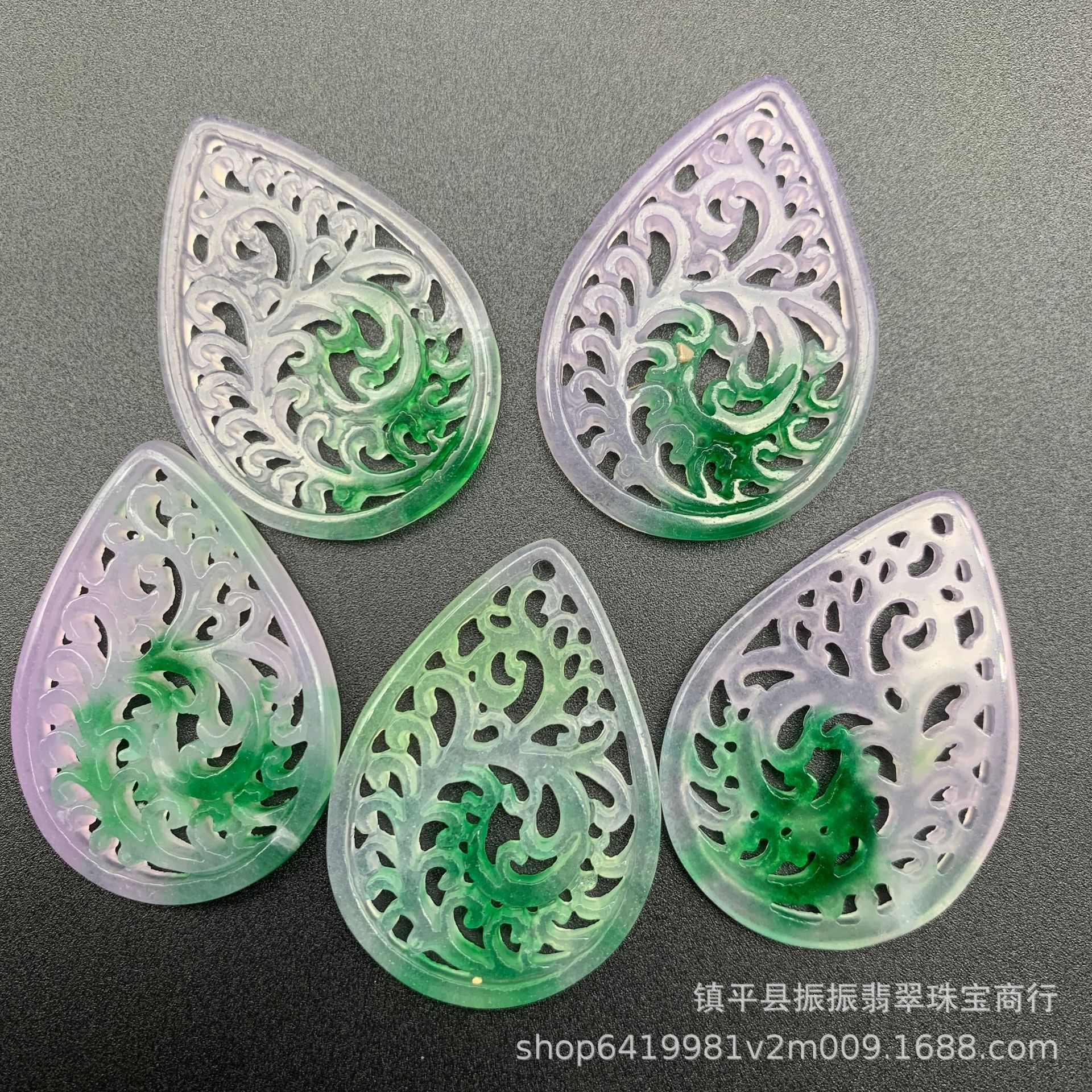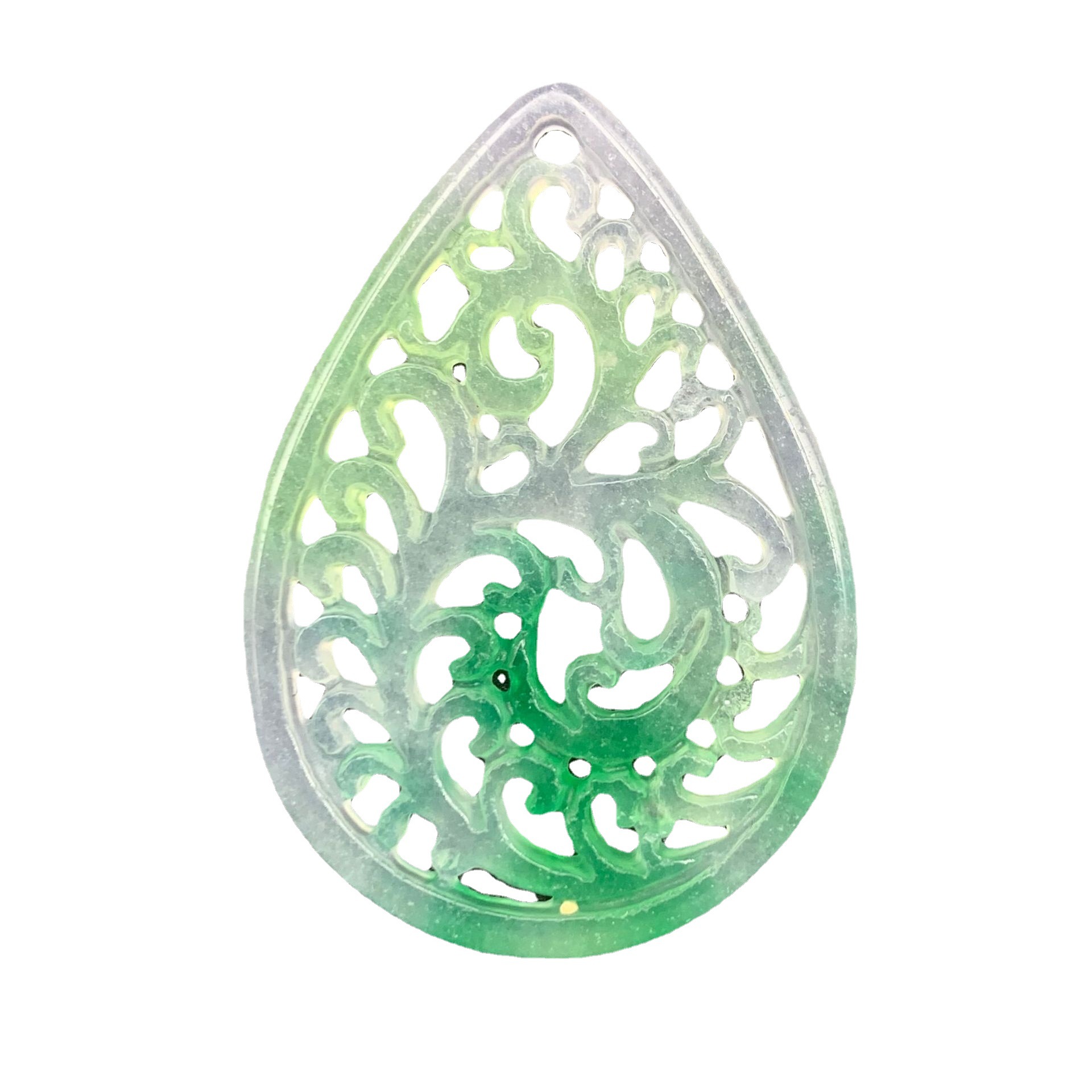 马来玉大号飘绿花镂空水滴耳坠 diy玉石饰品配件耳饰镶嵌配件批发