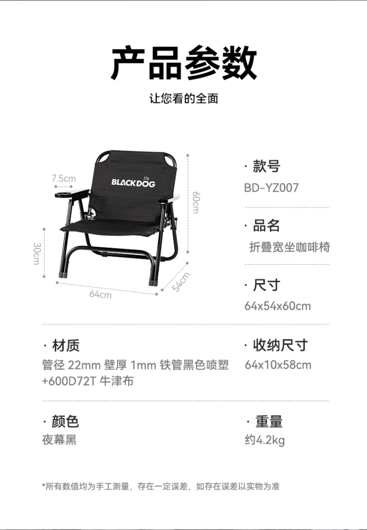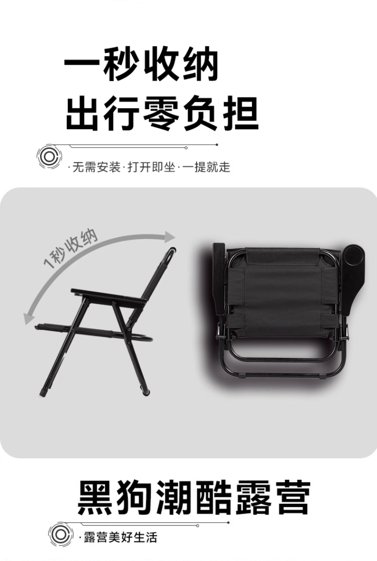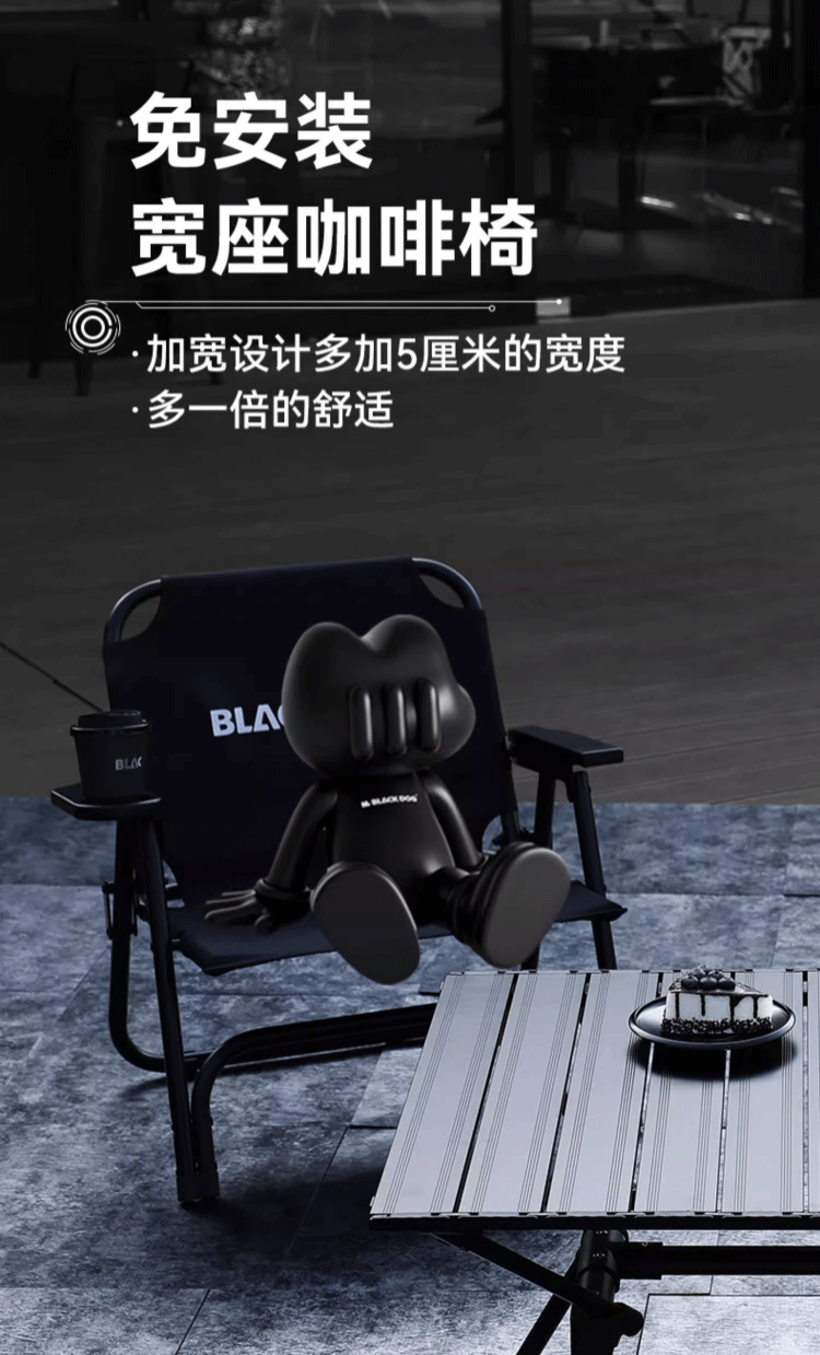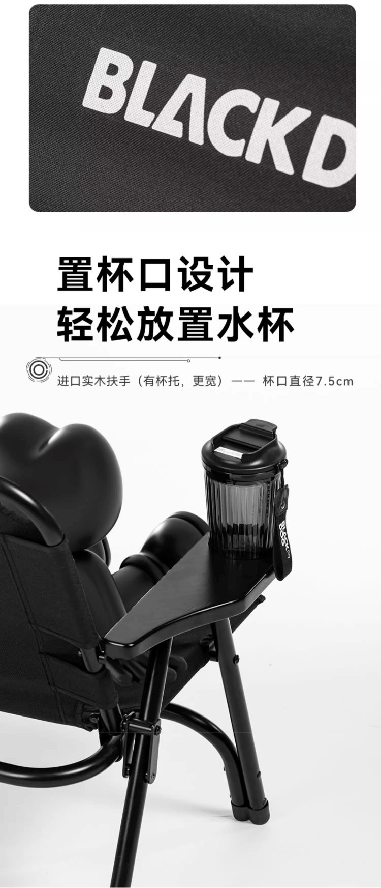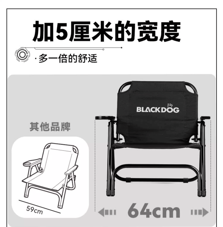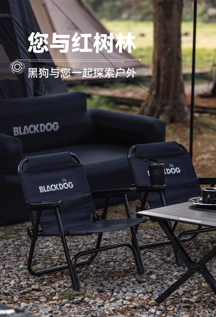 BLACKDOG黑狗戶外摺疊椅黑化露營椅子寬座扶手椅野外可攜式沙灘椅