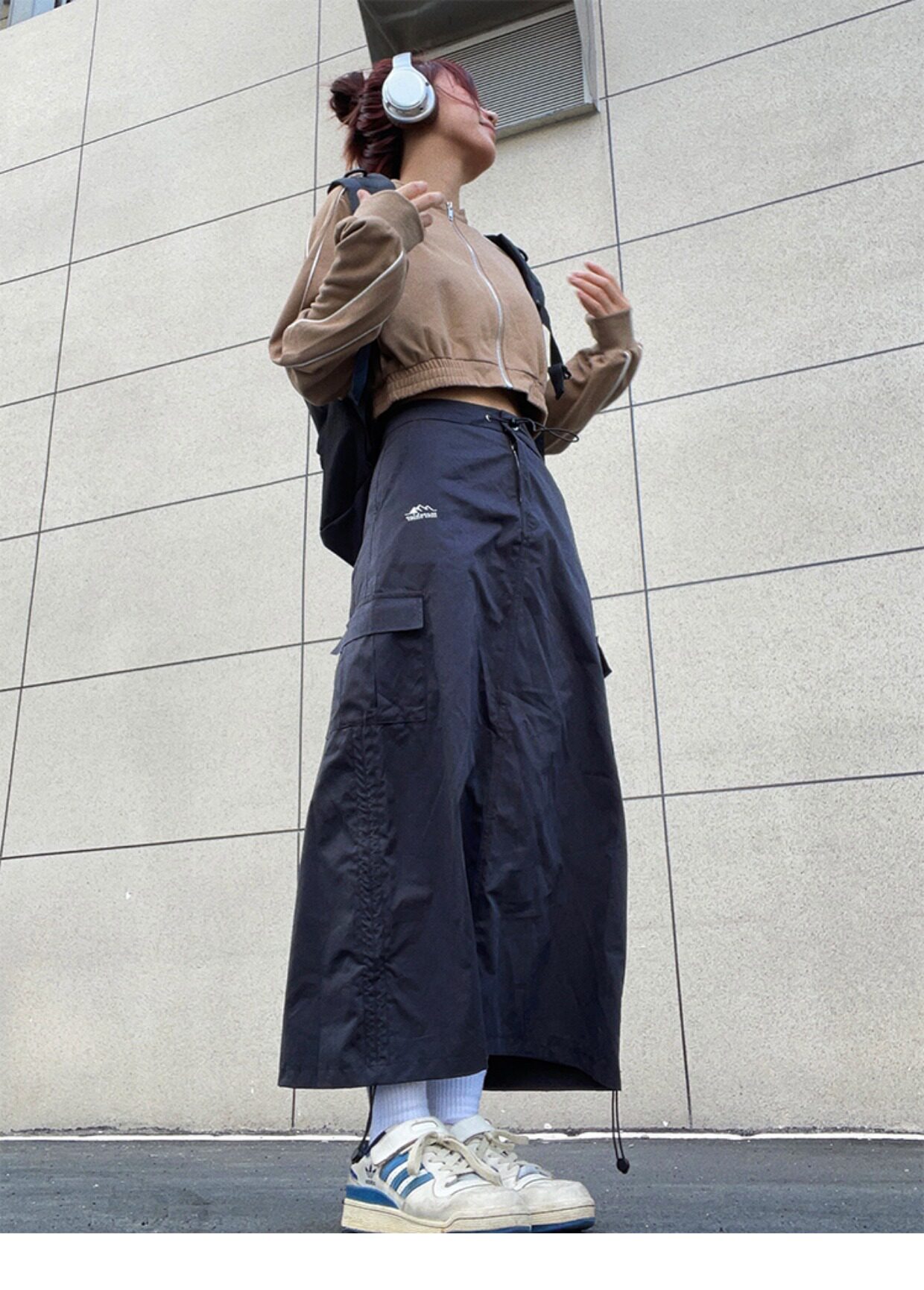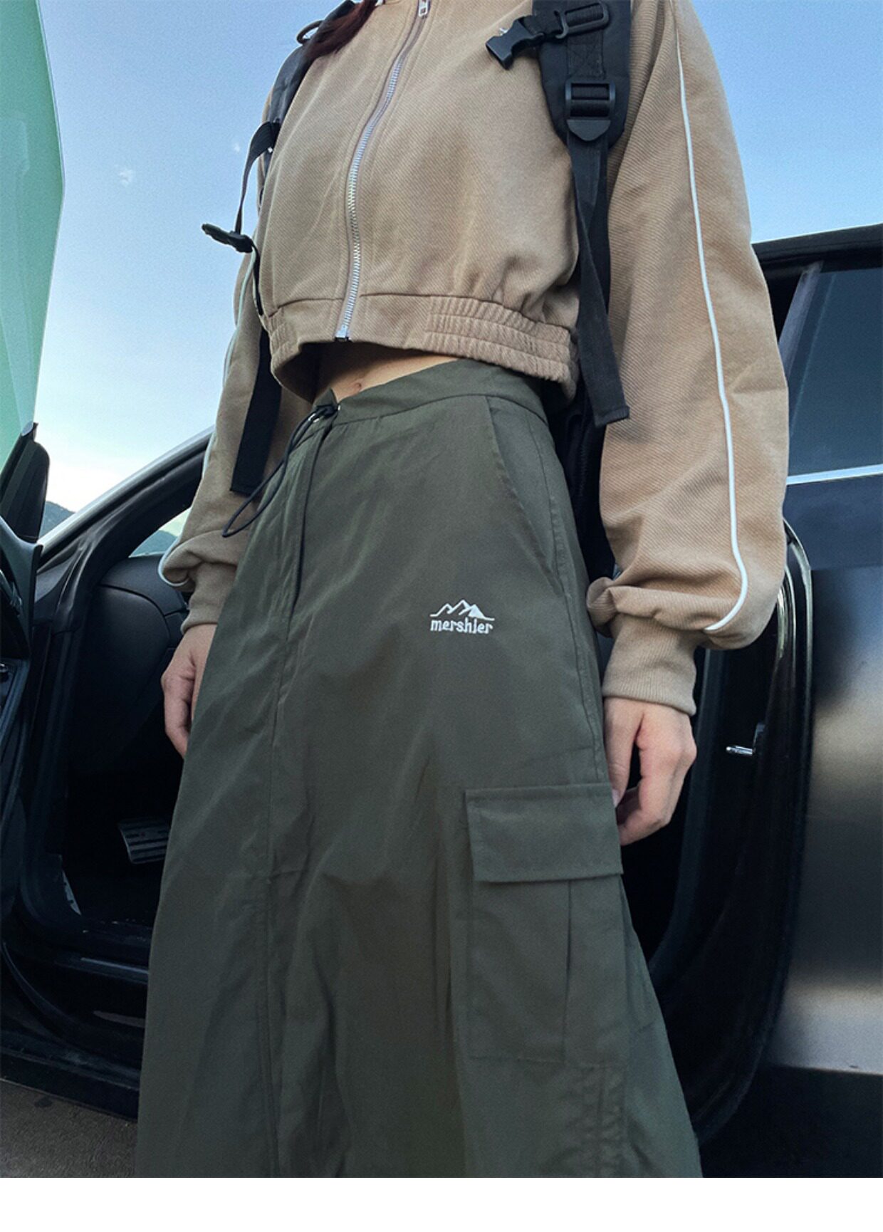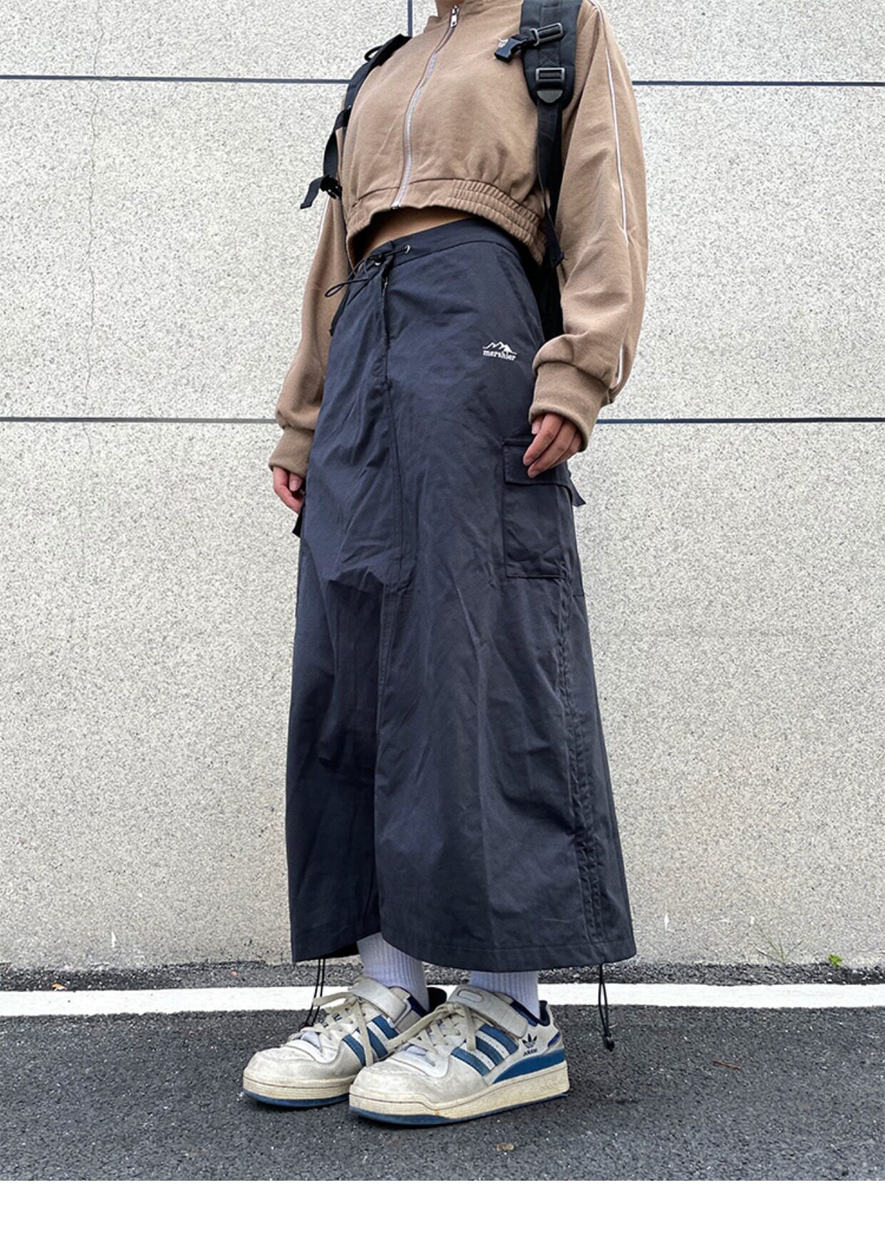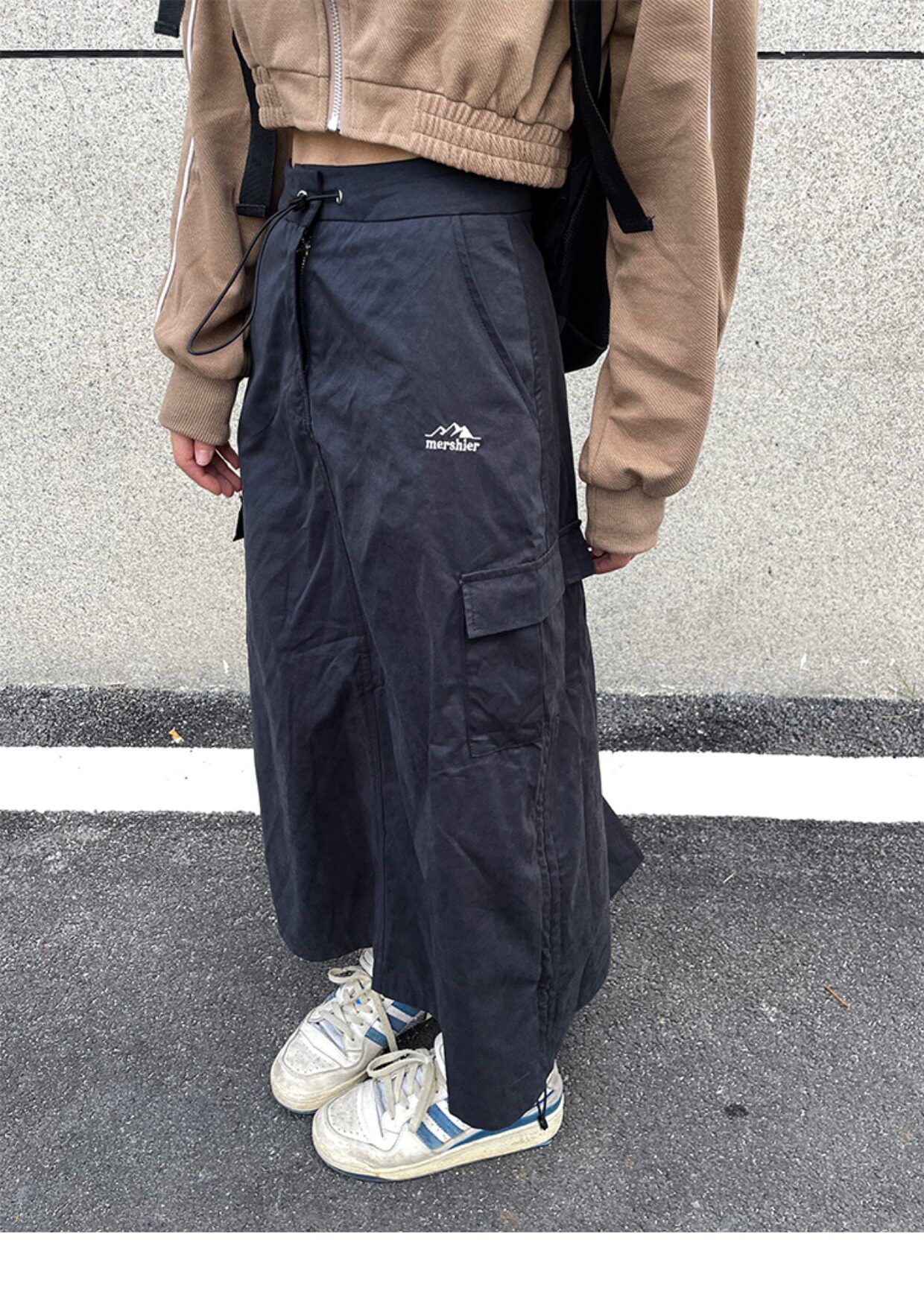 川川也家美式復古戶外工裝裙女高腰小眾設計感抽繩半身裙夏季新款
