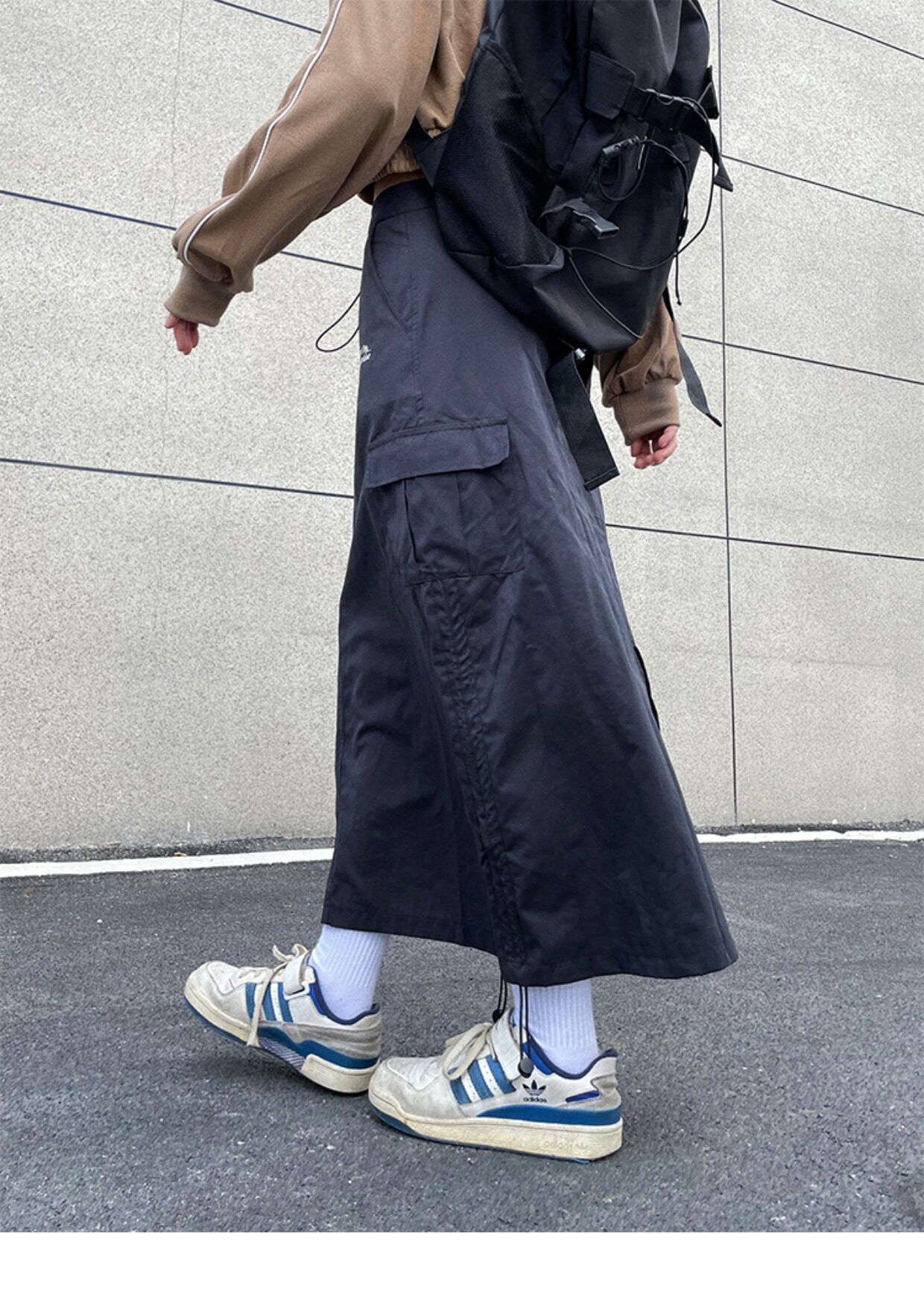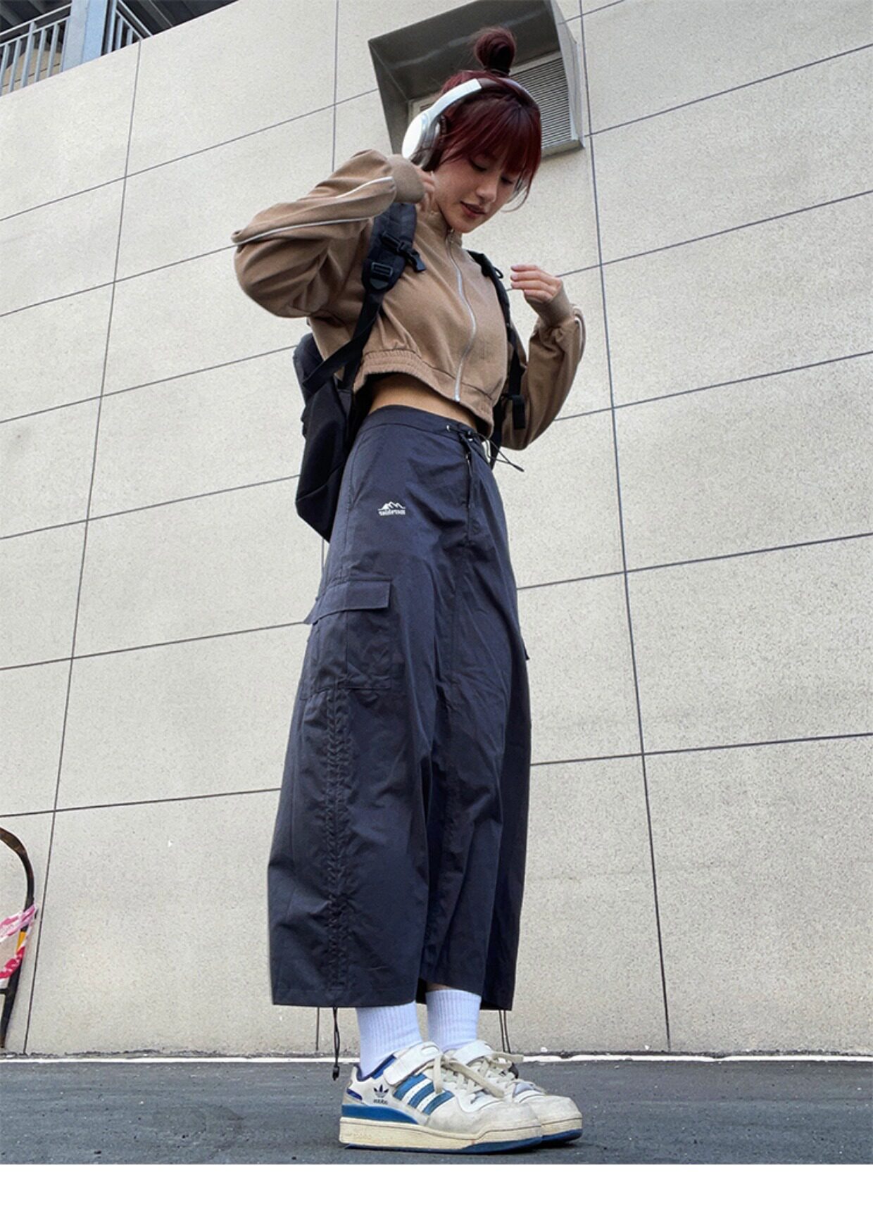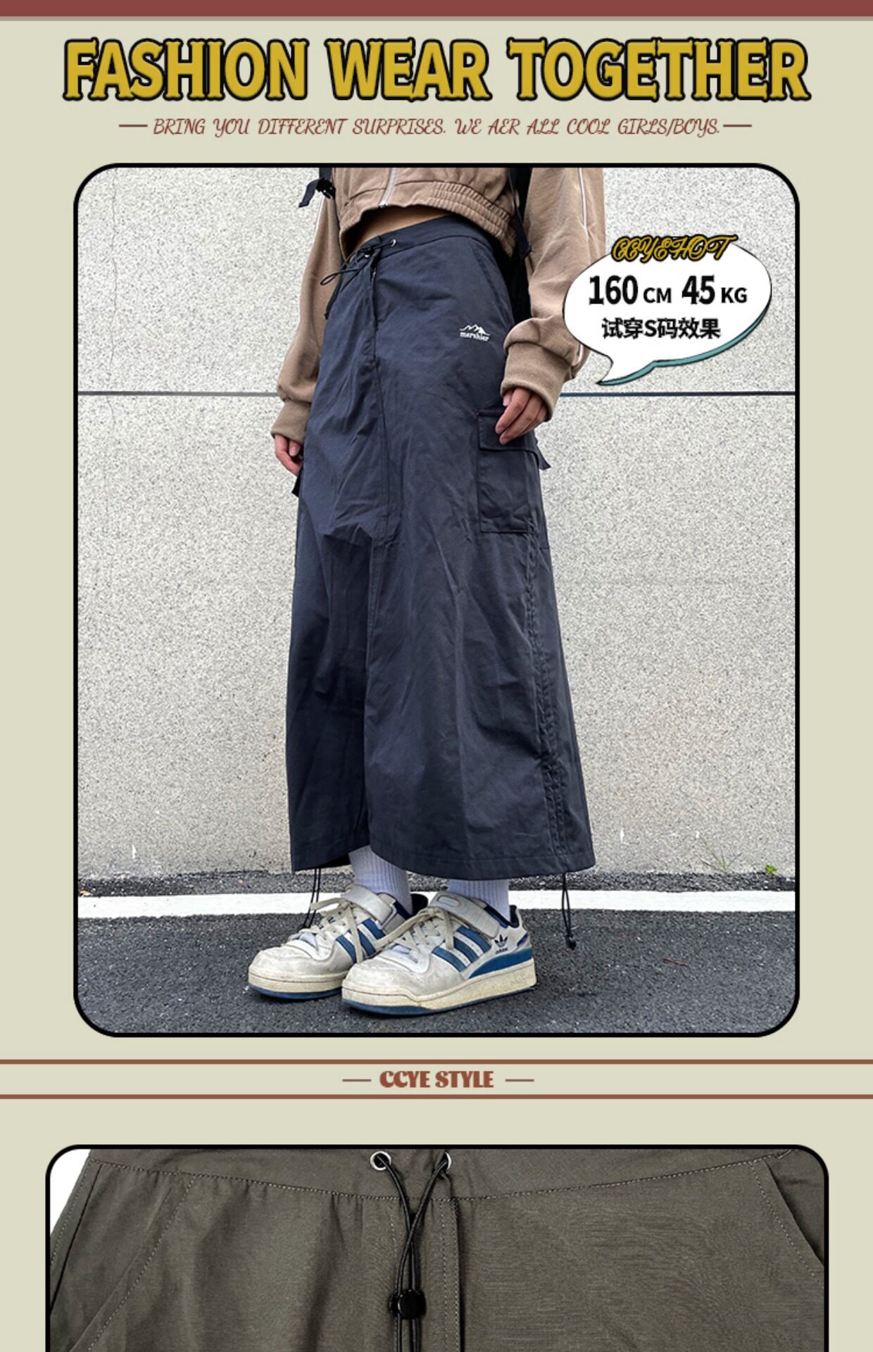川川也家美式復古戶外工裝裙女高腰小眾設計感抽繩半身裙夏季新款