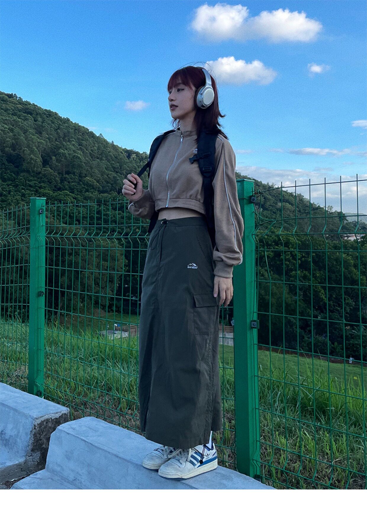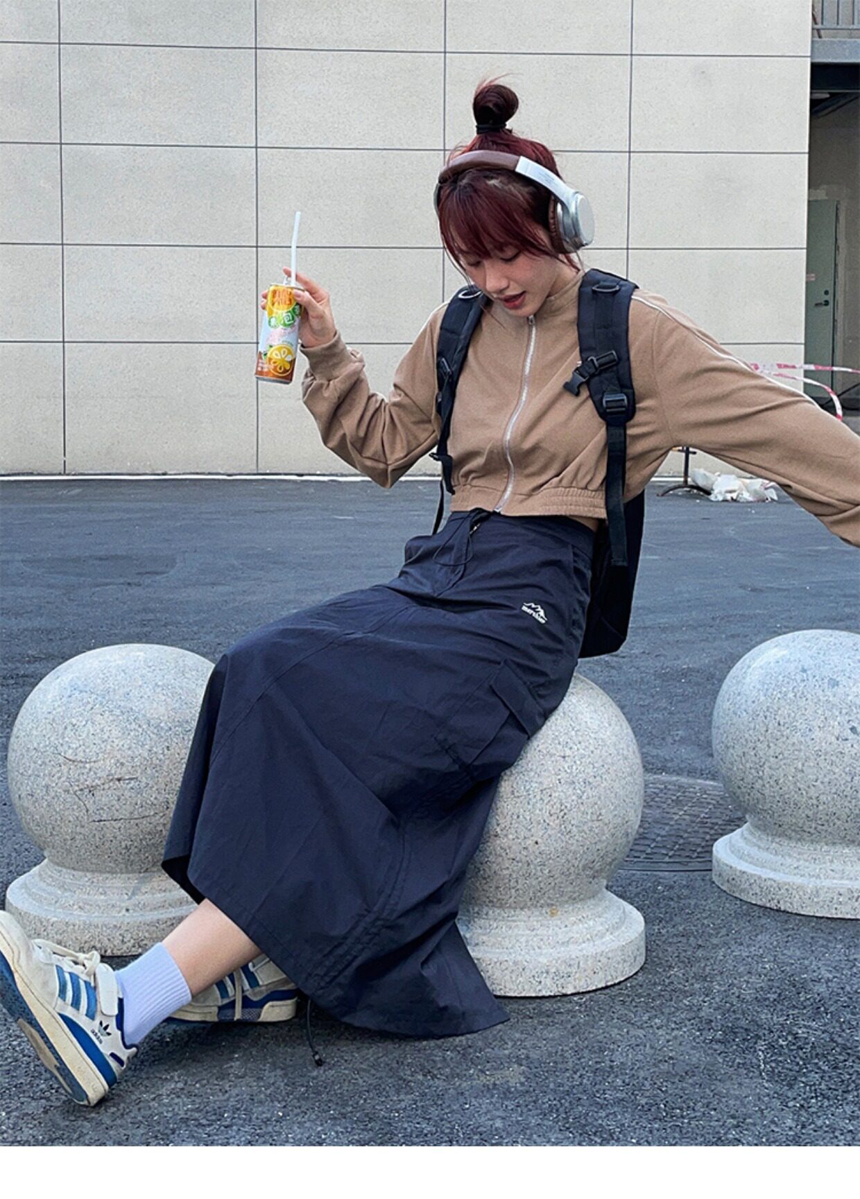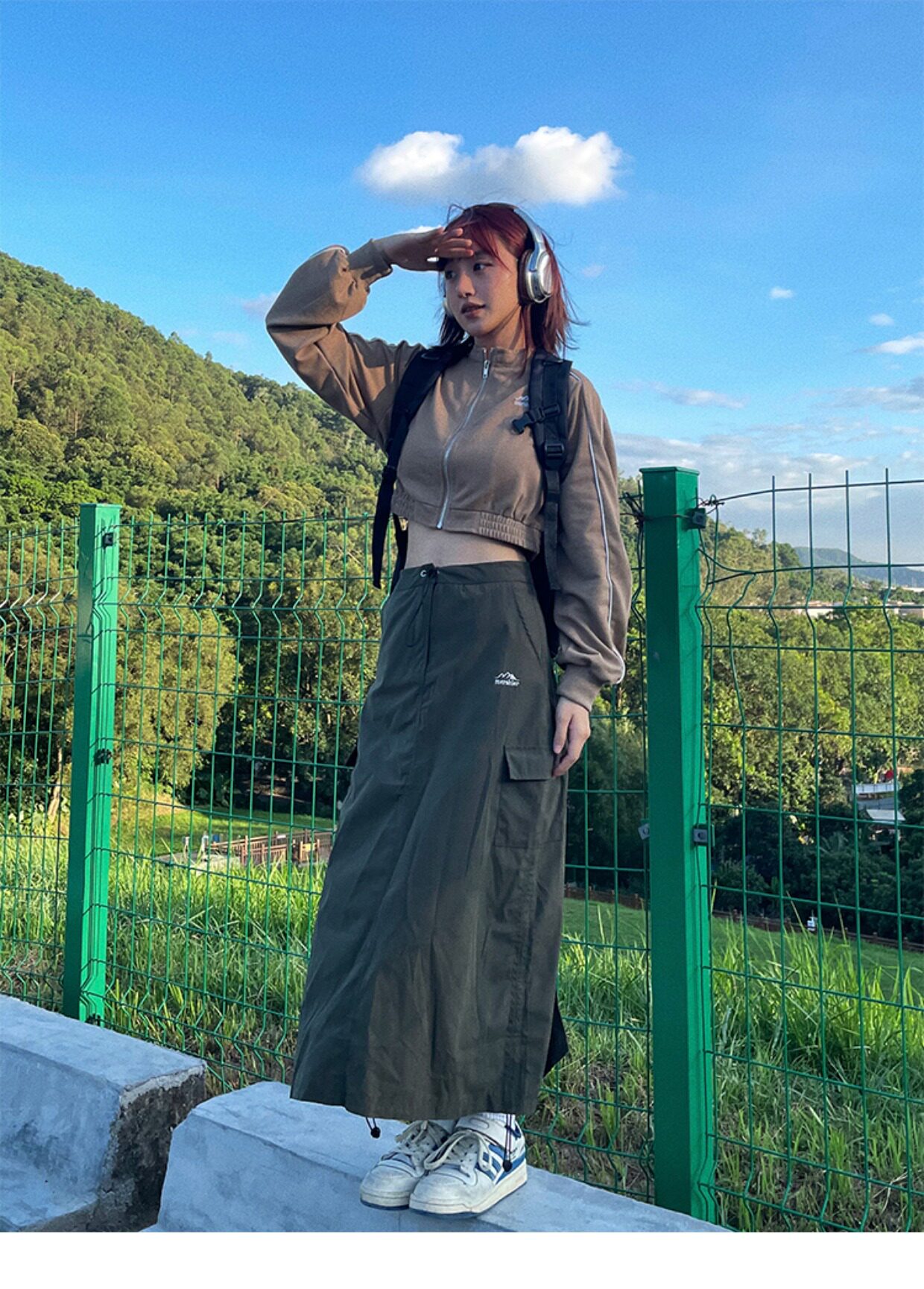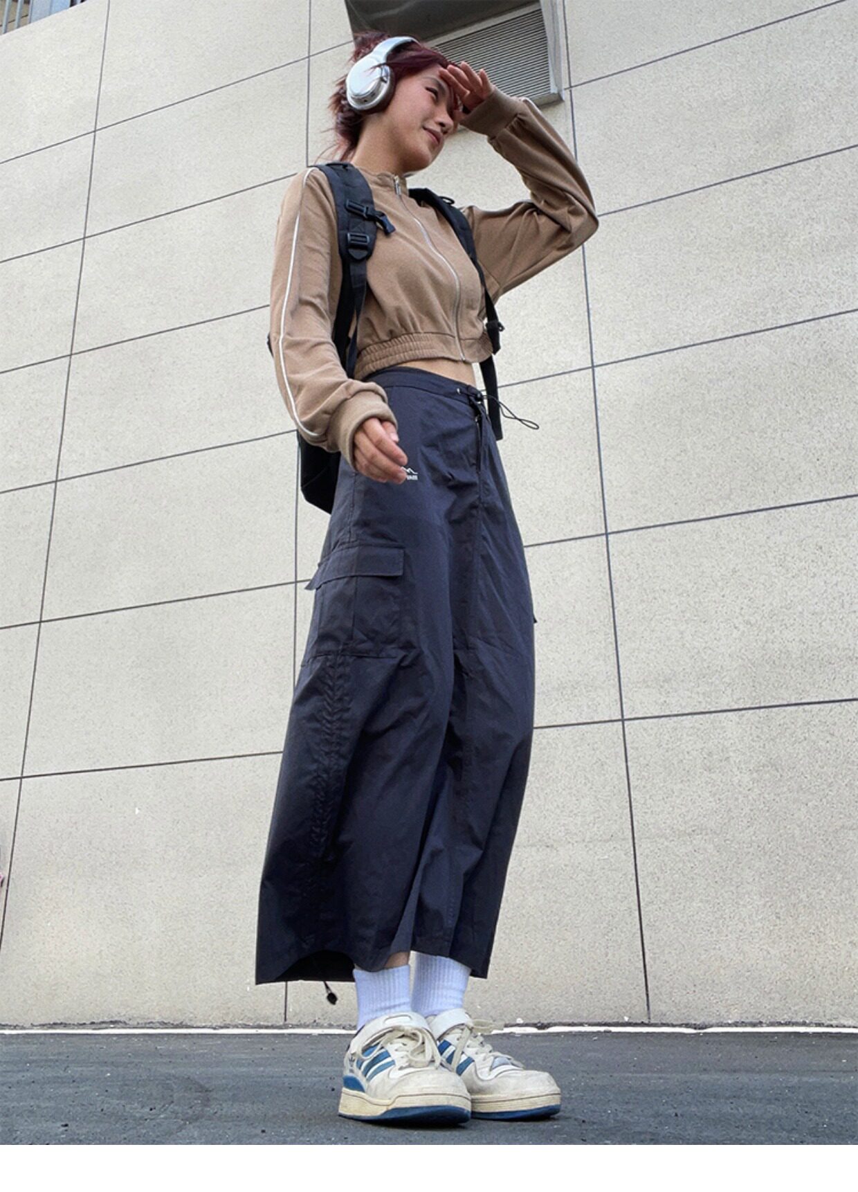川川也家美式復古戶外工裝裙女高腰小眾設計感抽繩半身裙夏季新款