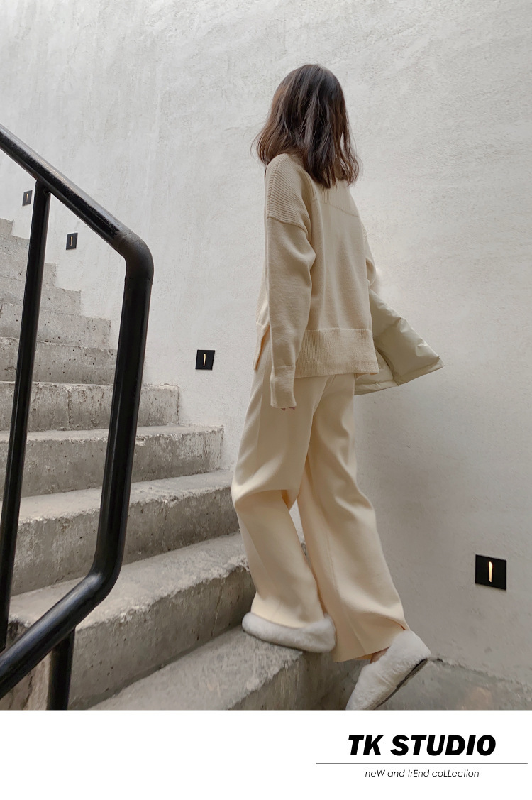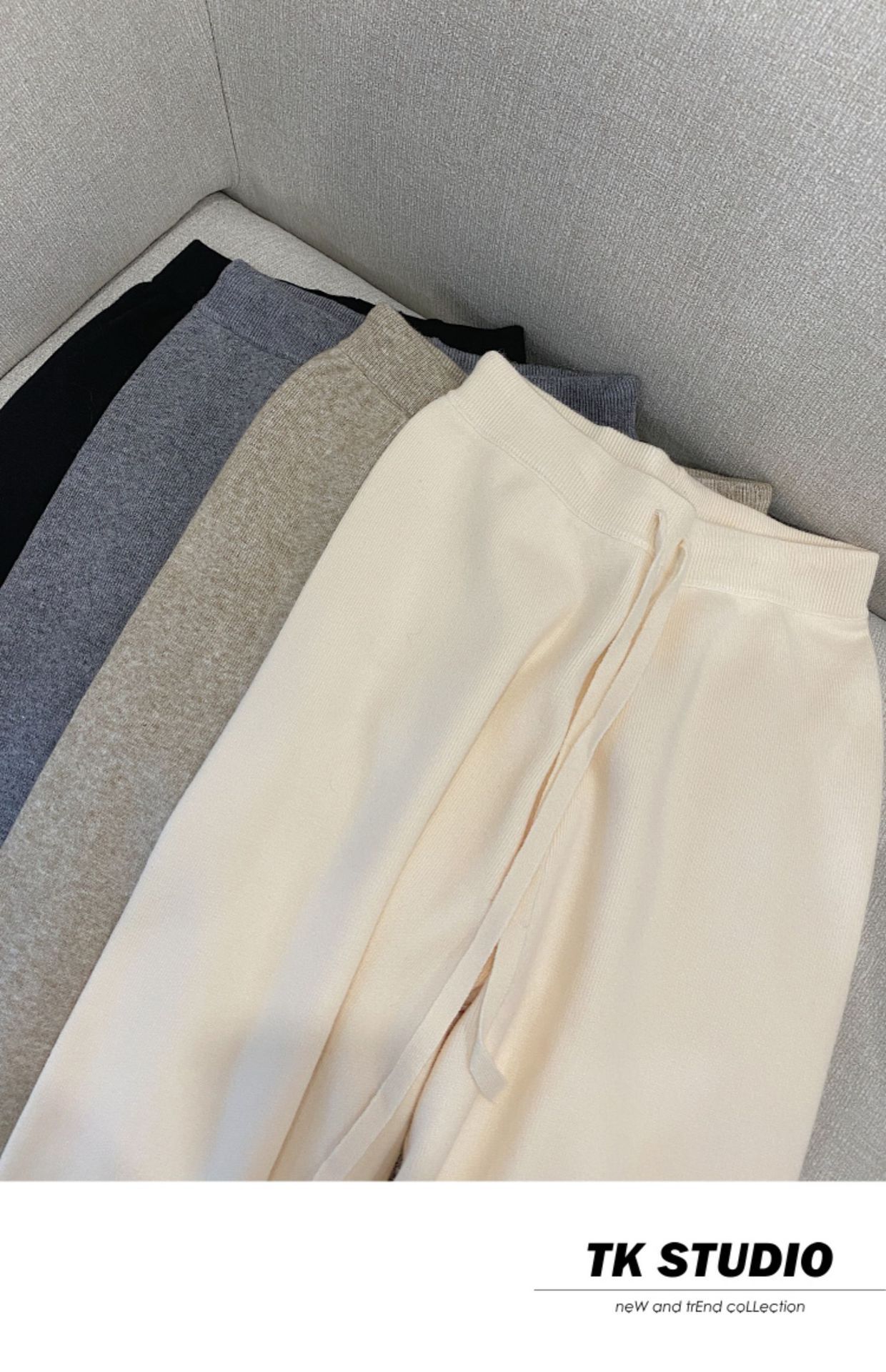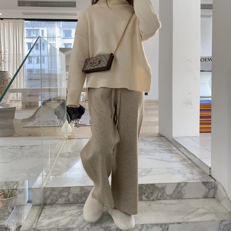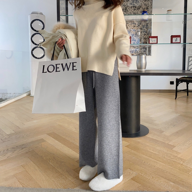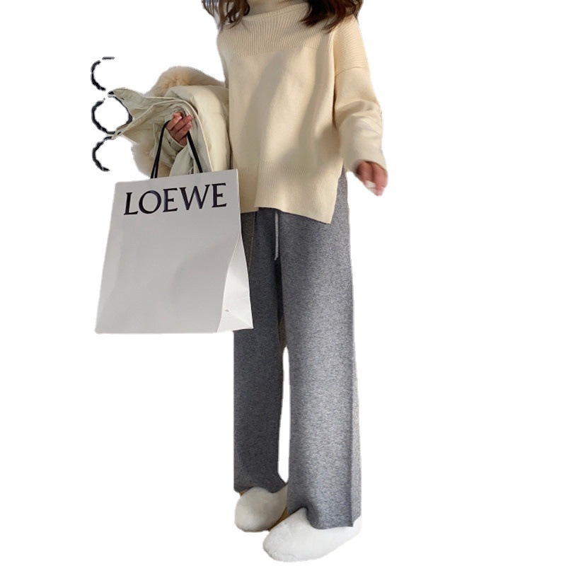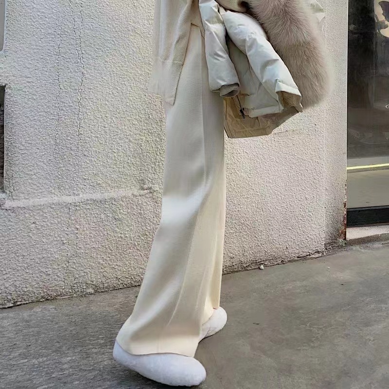 奶油白色针织直筒裤女秋冬新款高腰宽松显瘦垂坠感休闲阔腿裤长裤