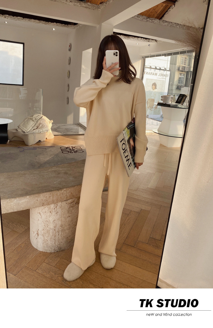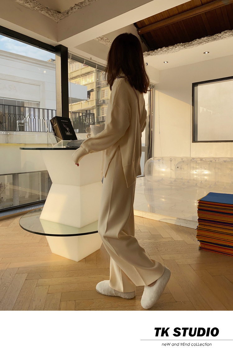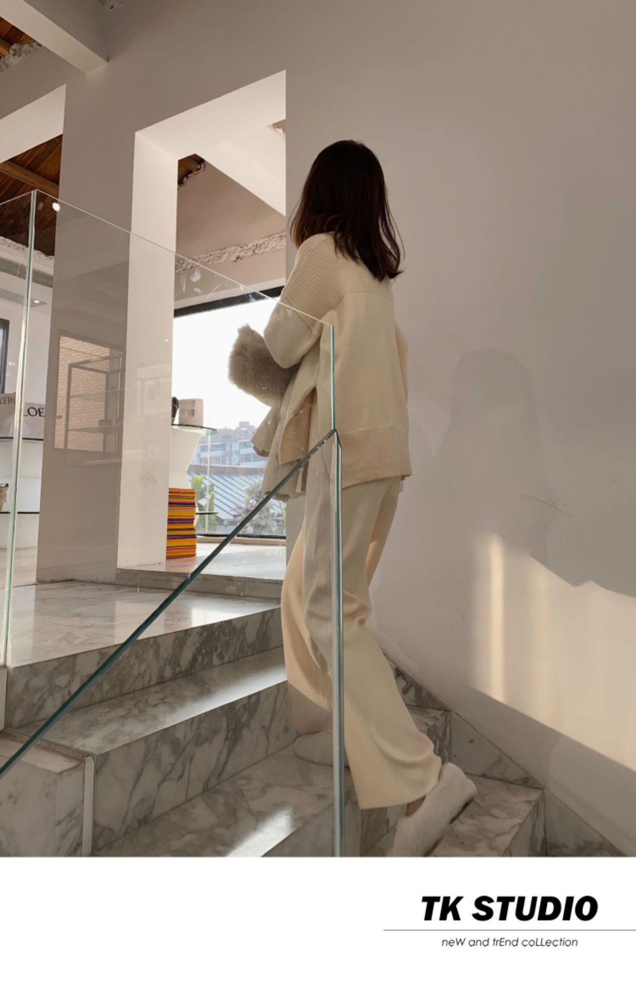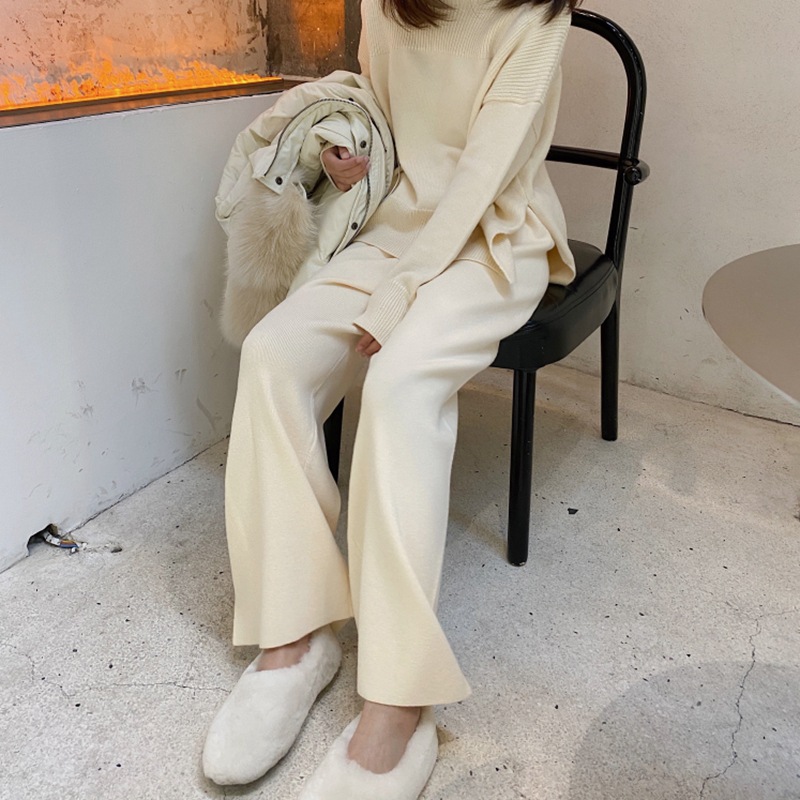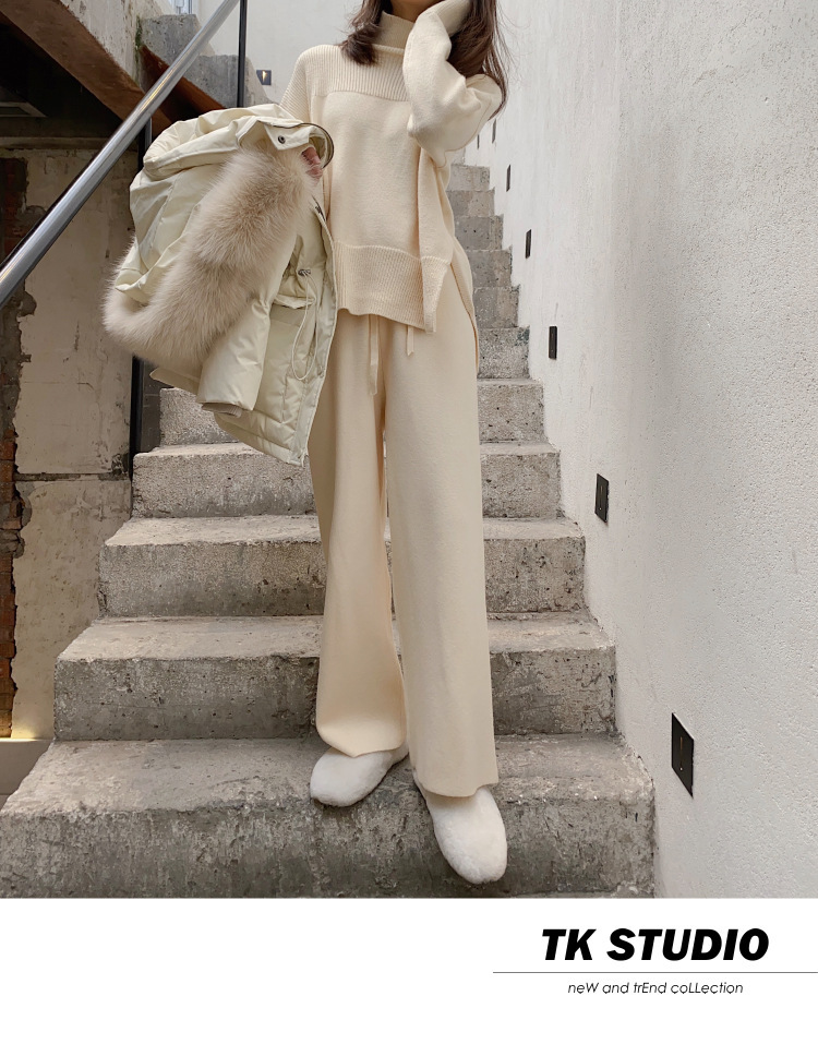 奶油白色针织直筒裤女秋冬新款高腰宽松显瘦垂坠感休闲阔腿裤长裤