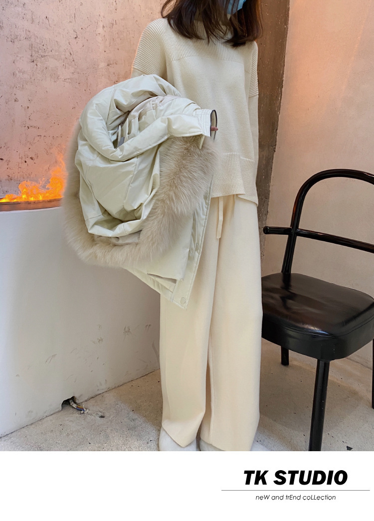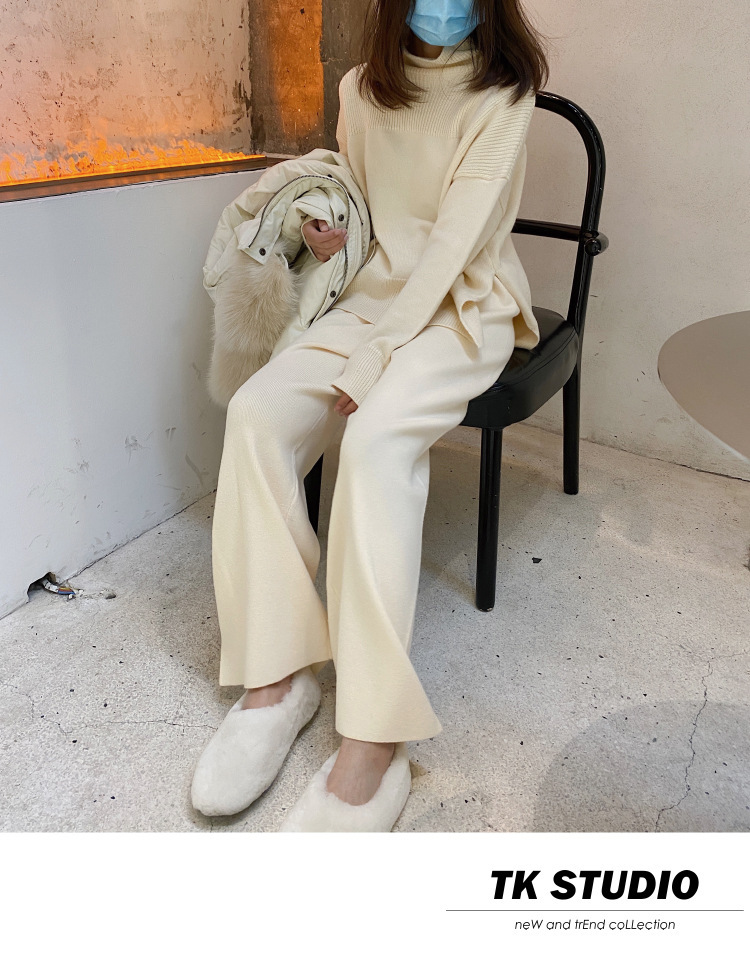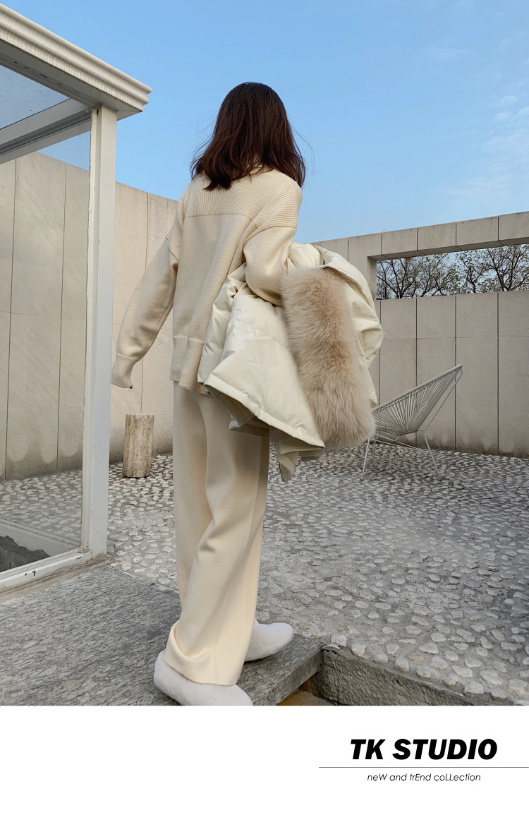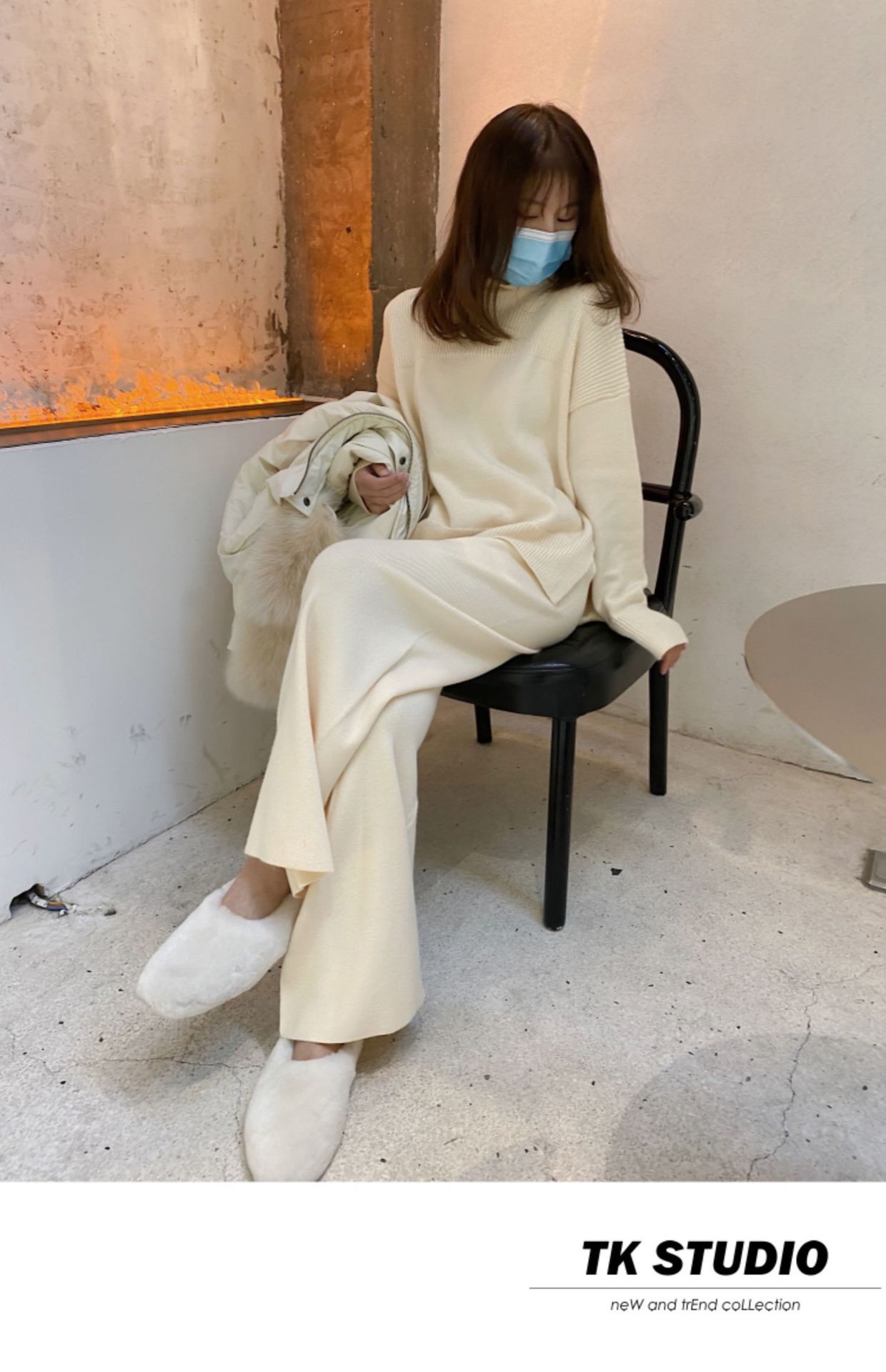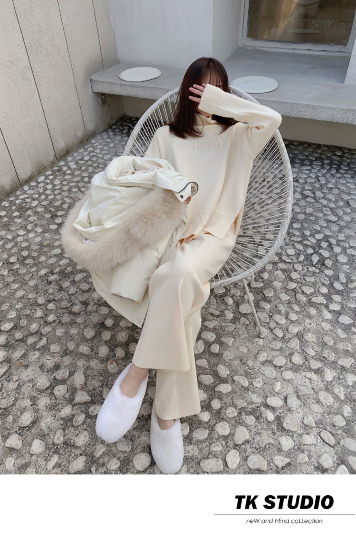 奶油白色针织直筒裤女秋冬新款高腰宽松显瘦垂坠感休闲阔腿裤长裤