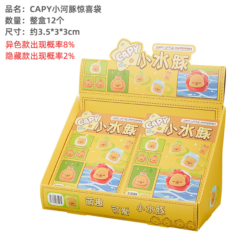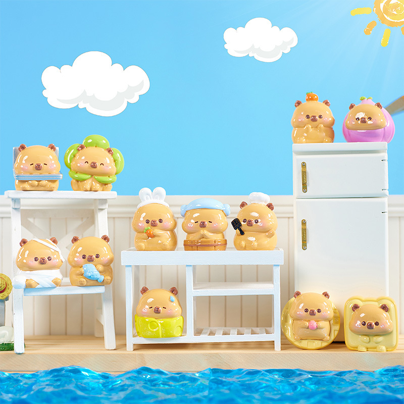 创意卡皮巴拉萌粒盲袋萌趣水豚可爱萌粒小公仔桌面微景观装饰摆件