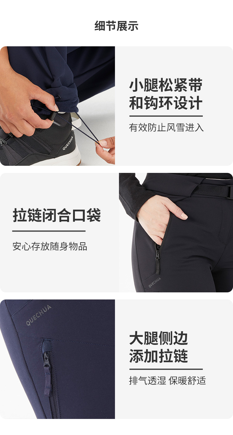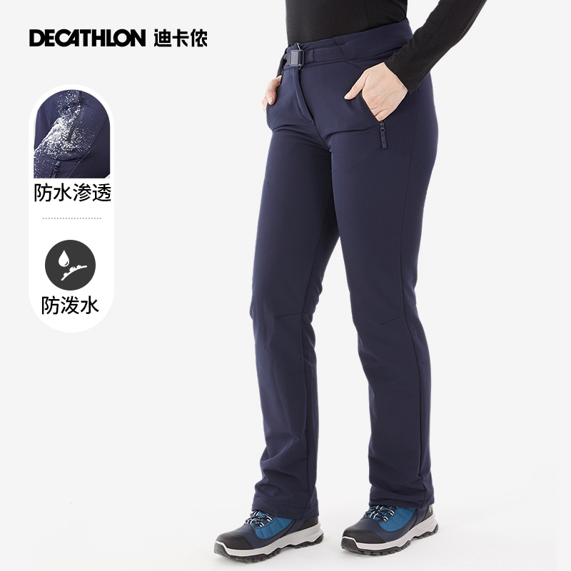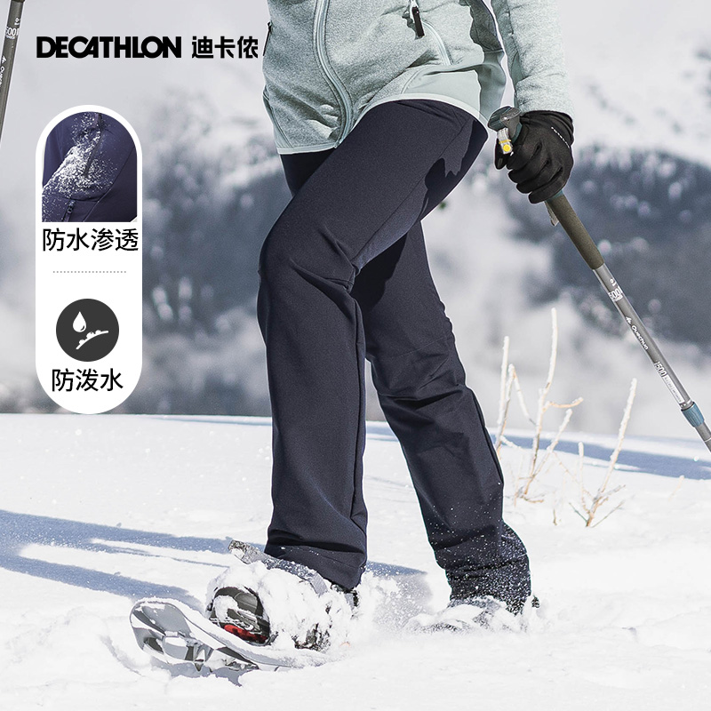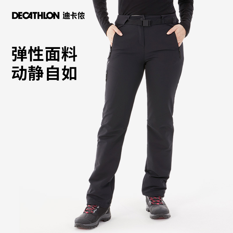 迪卡儂雪地徒步登山休閒運動保暖褲加絨加厚抓絨褲女ODT1