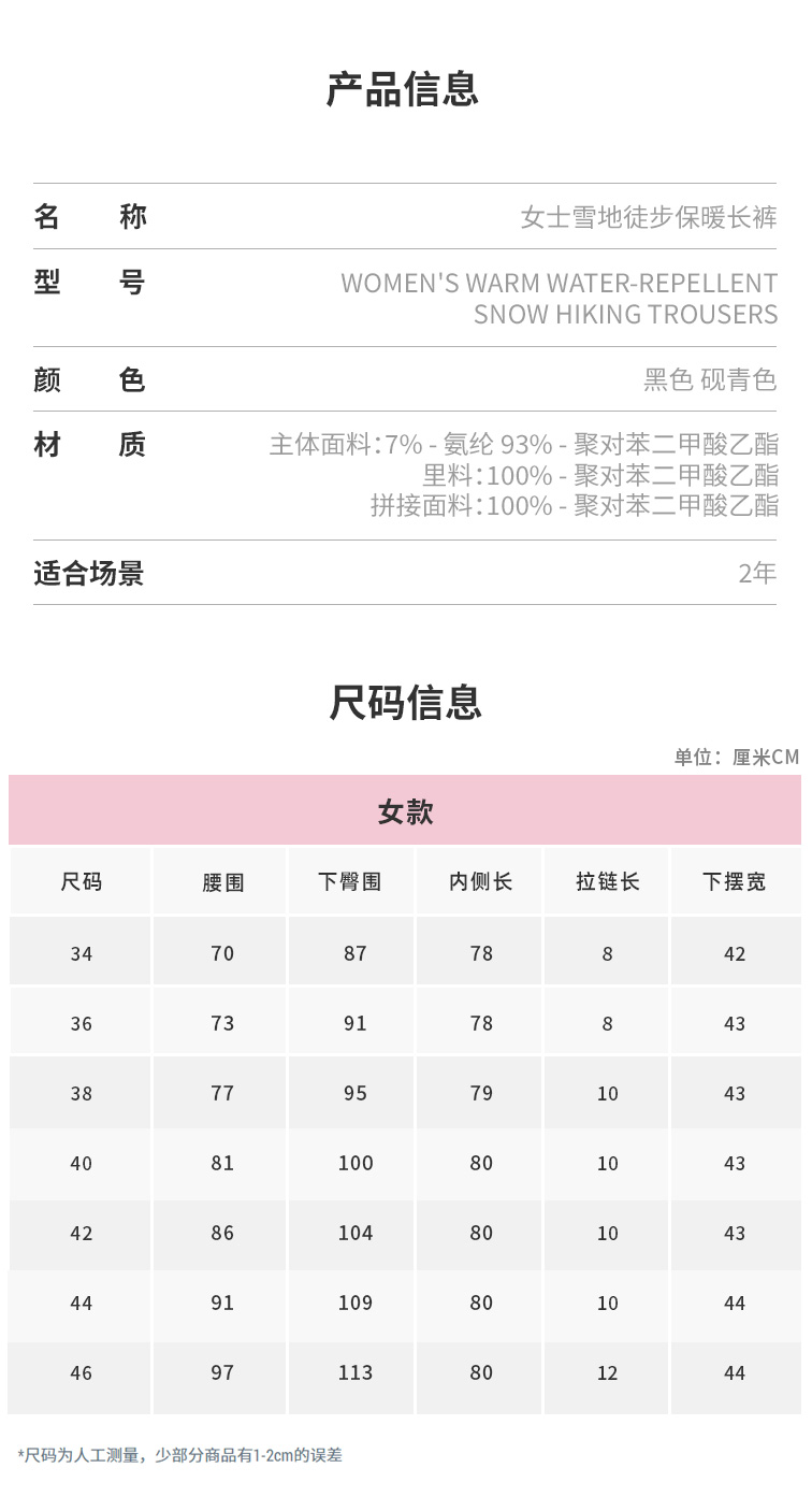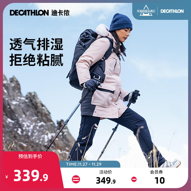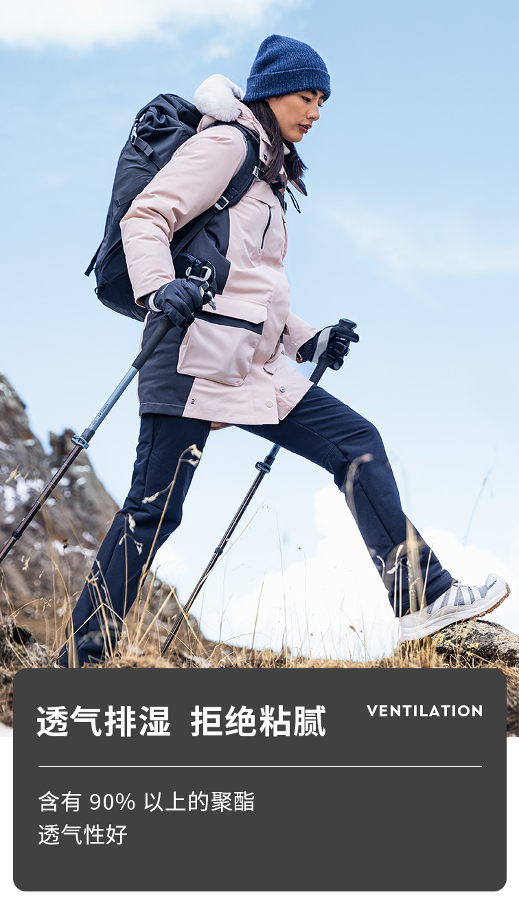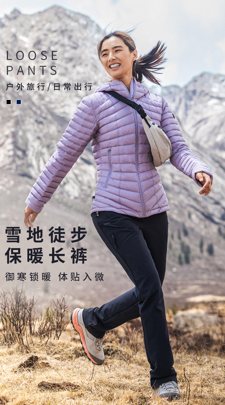 迪卡儂雪地徒步登山休閒運動保暖褲加絨加厚抓絨褲女ODT1