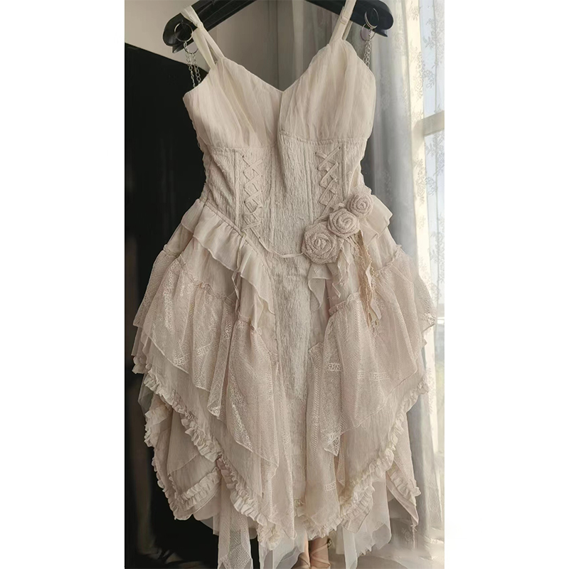 SASA法式氣質純欲性感吊帶洋裝女夏季新款立體花朵設計仙女裙潮