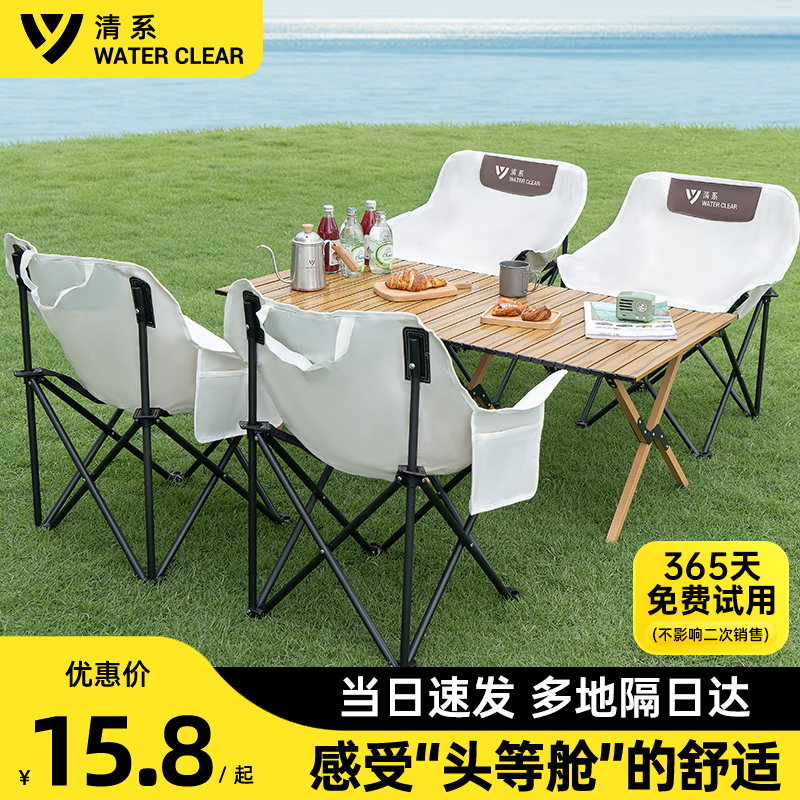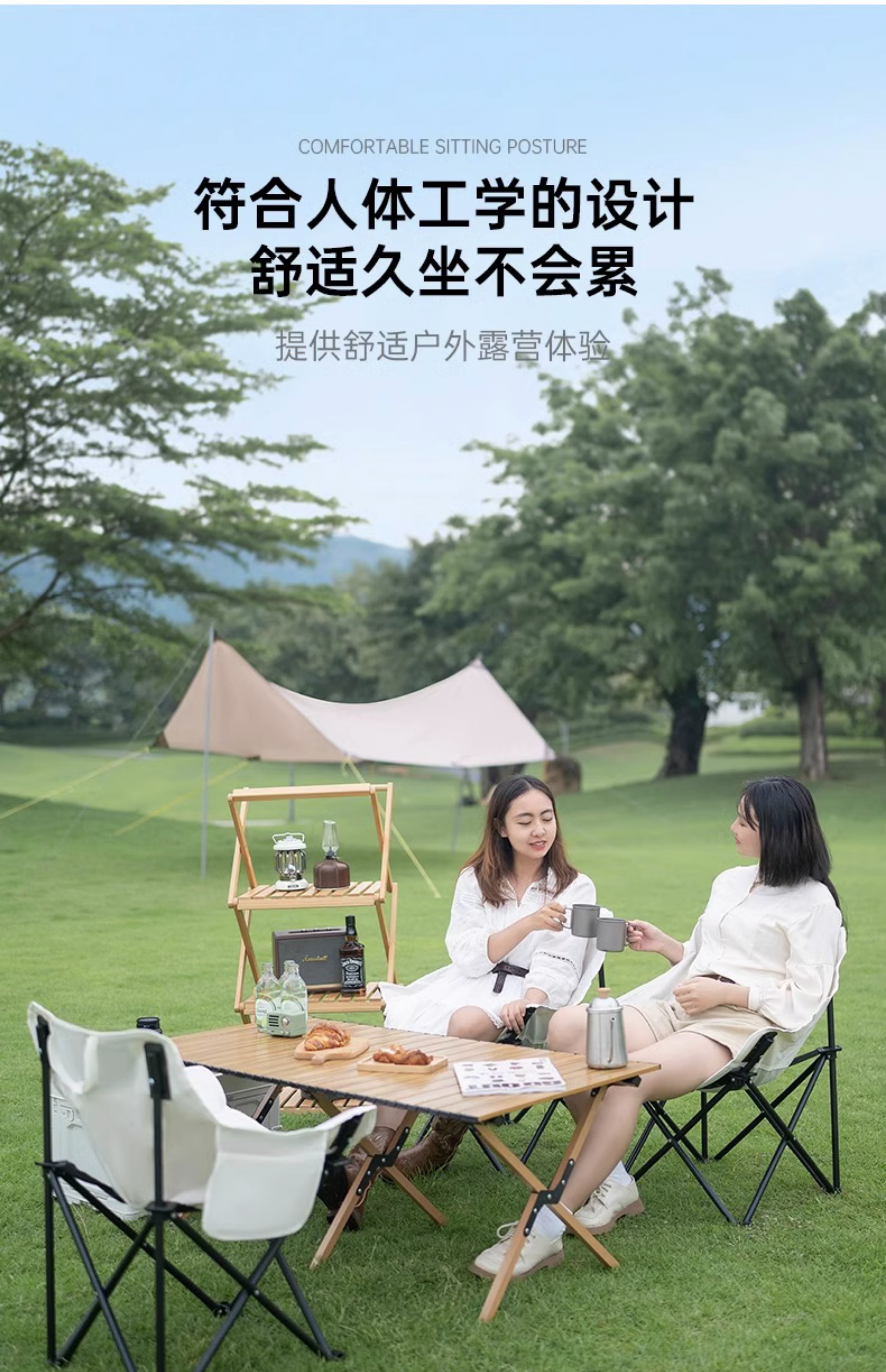 戶外摺疊椅露營椅子可攜式月亮椅超輕躺椅釣魚凳靠背沙灘野餐桌椅