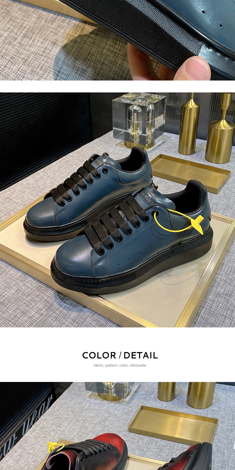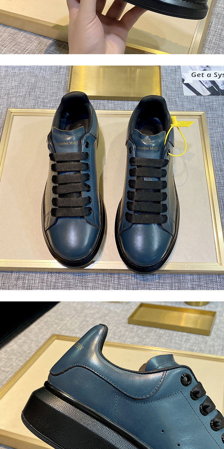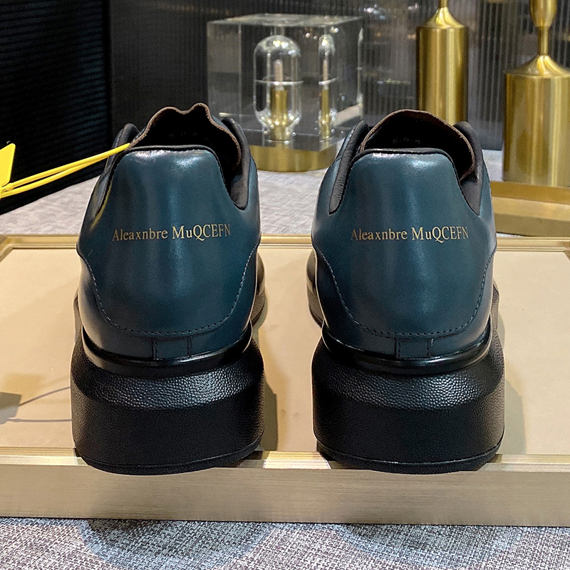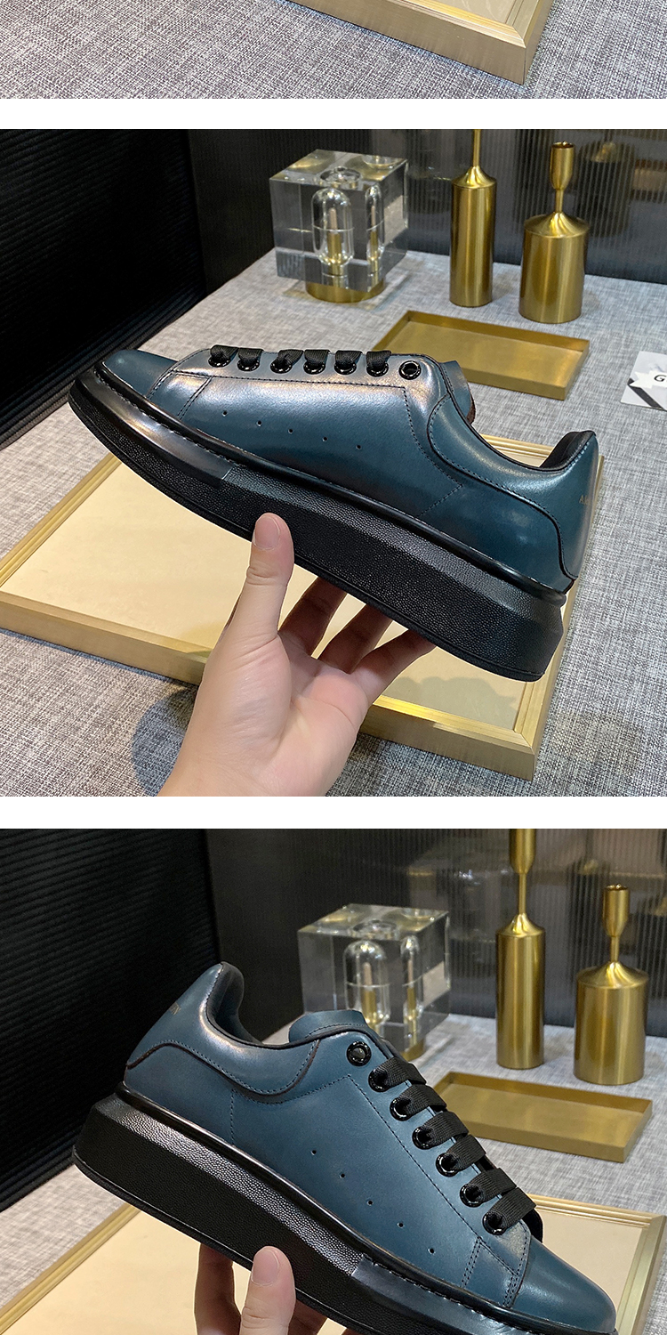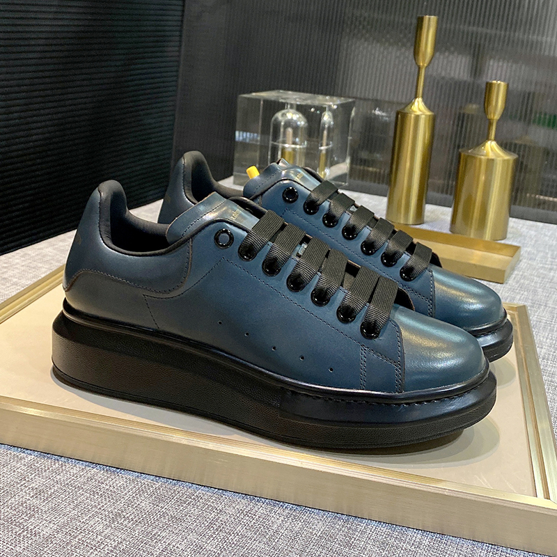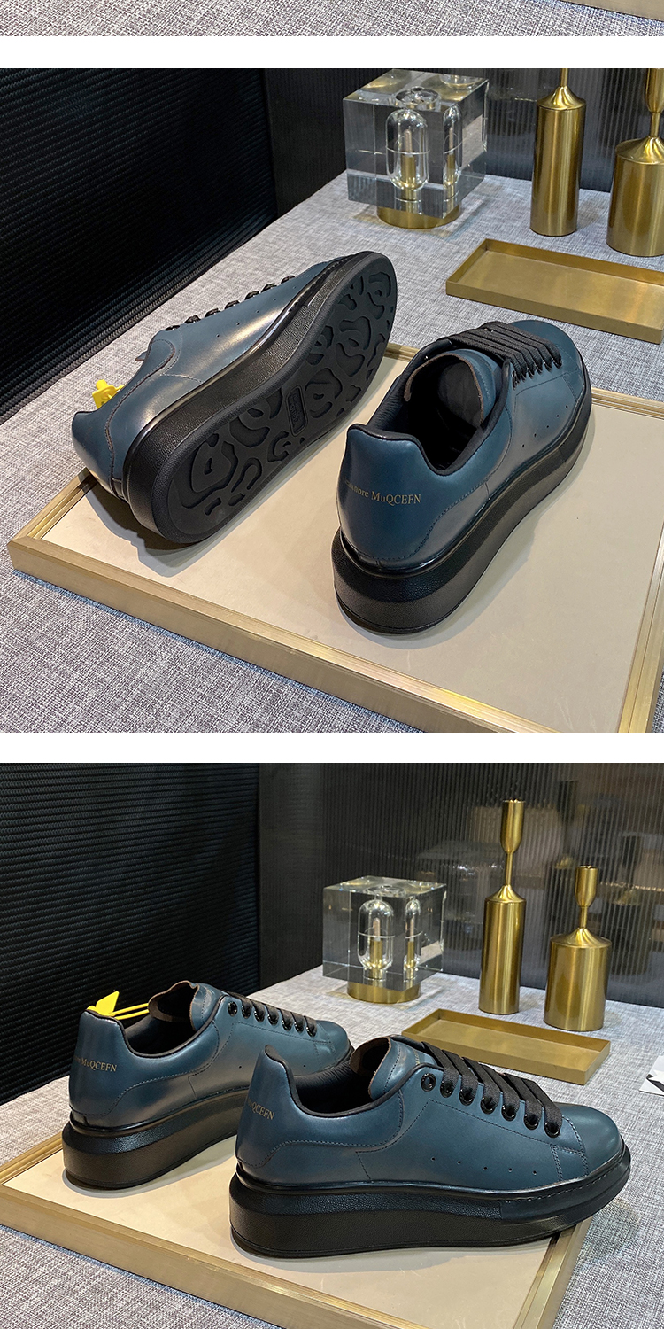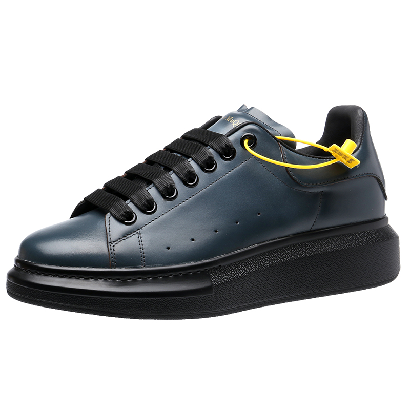 2022秋冬新款復古寶藍色厚底板鞋男沃克麥昆真皮運動休閒鞋皮鞋潮