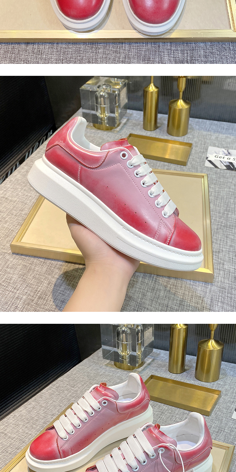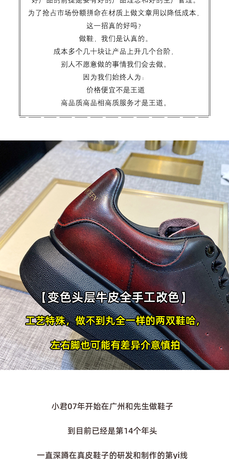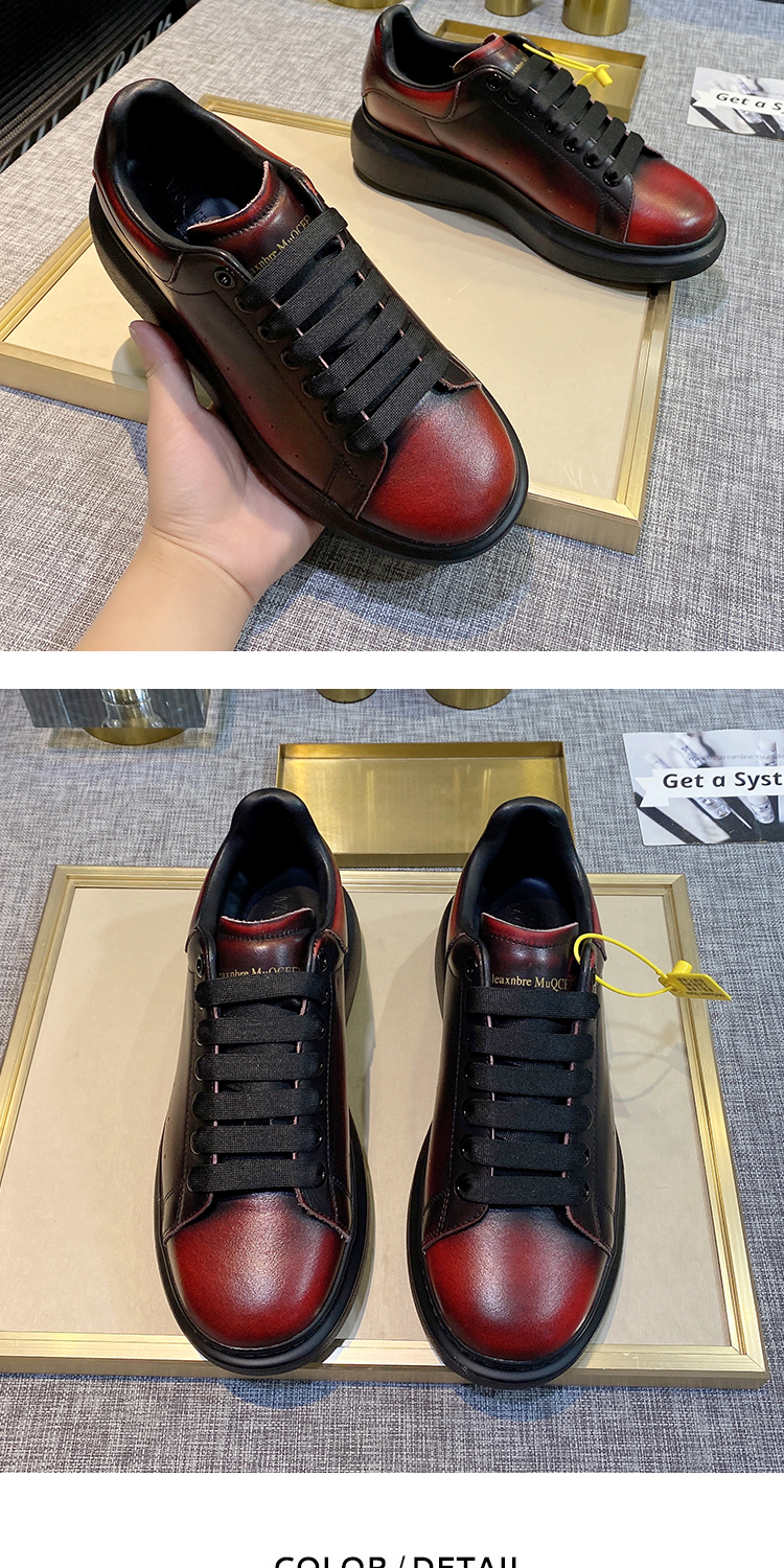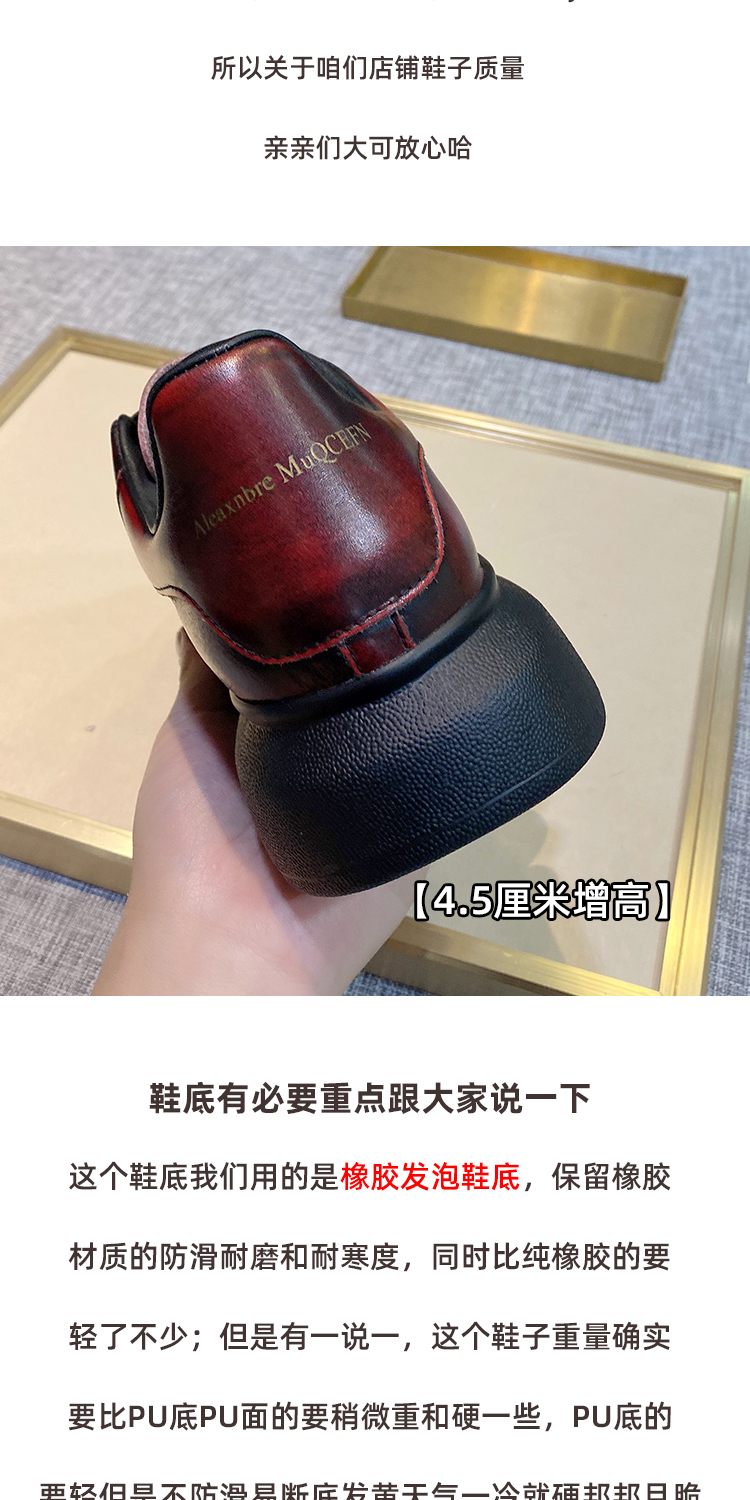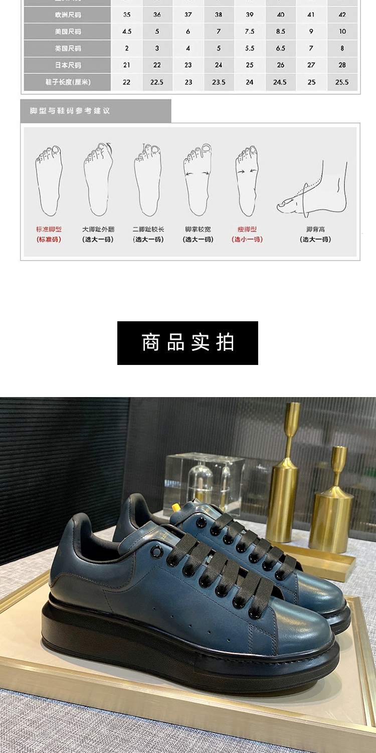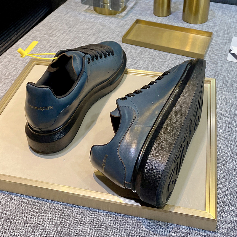 2022秋冬新款復古寶藍色厚底板鞋男沃克麥昆真皮運動休閒鞋皮鞋潮